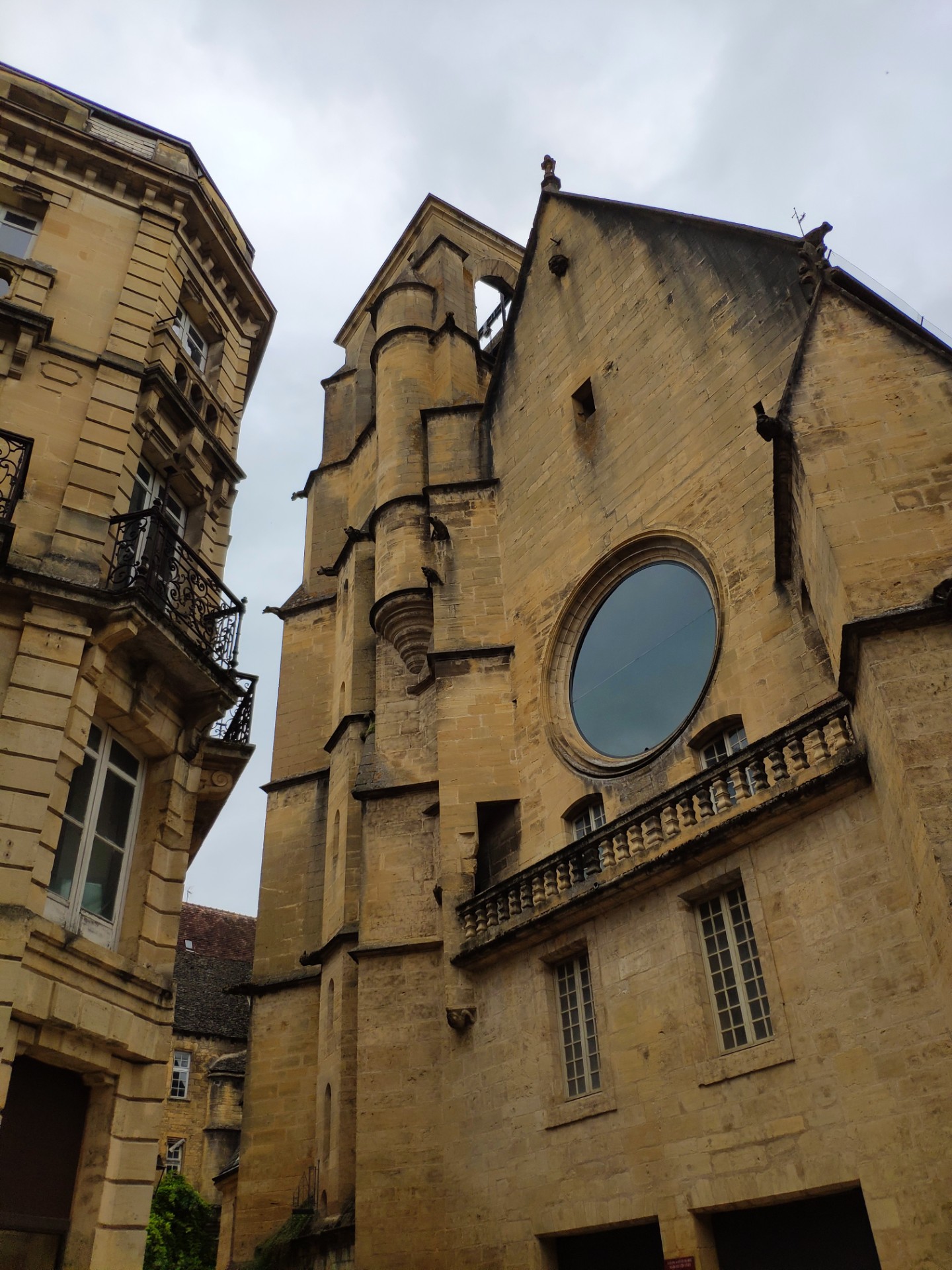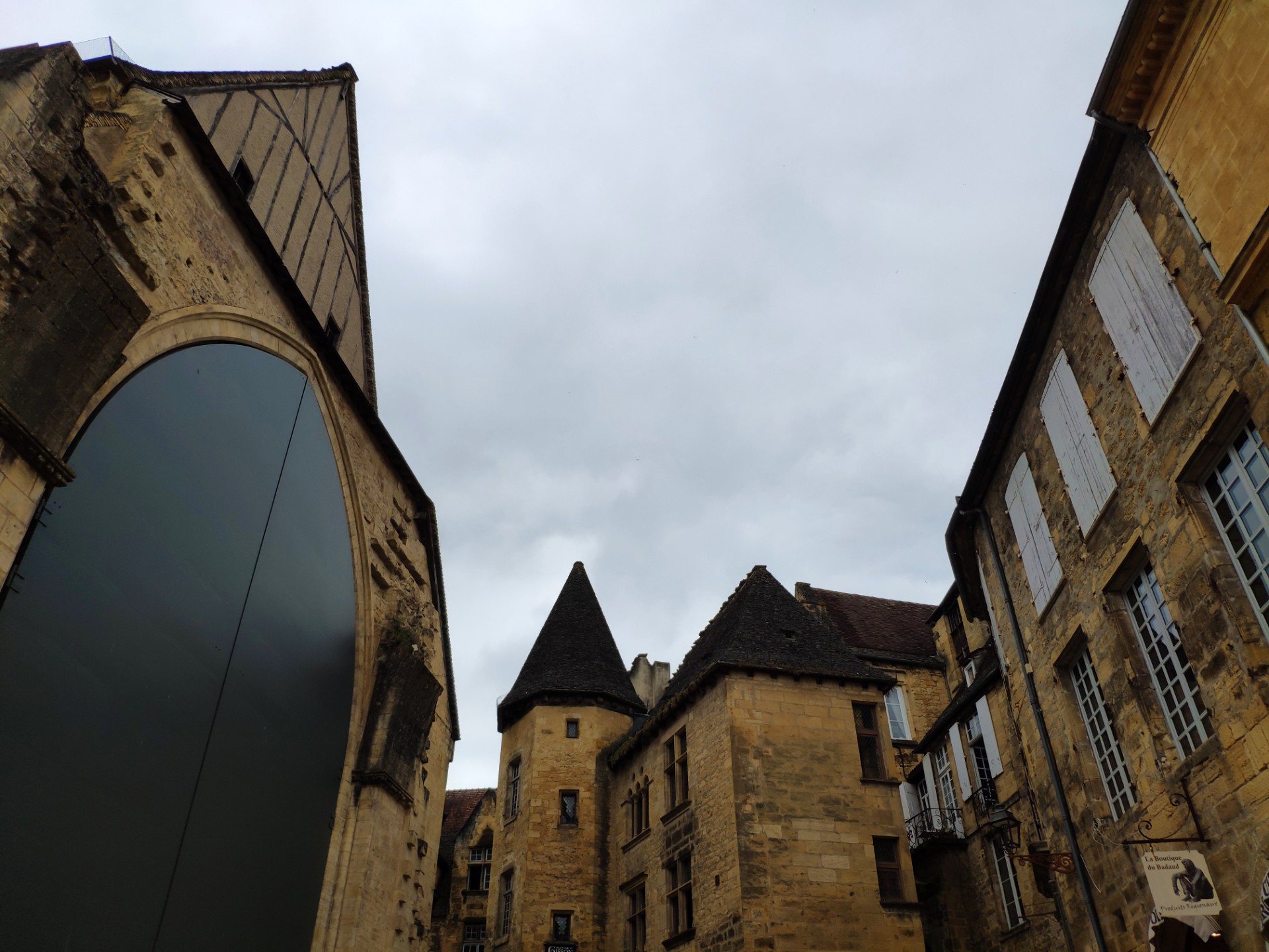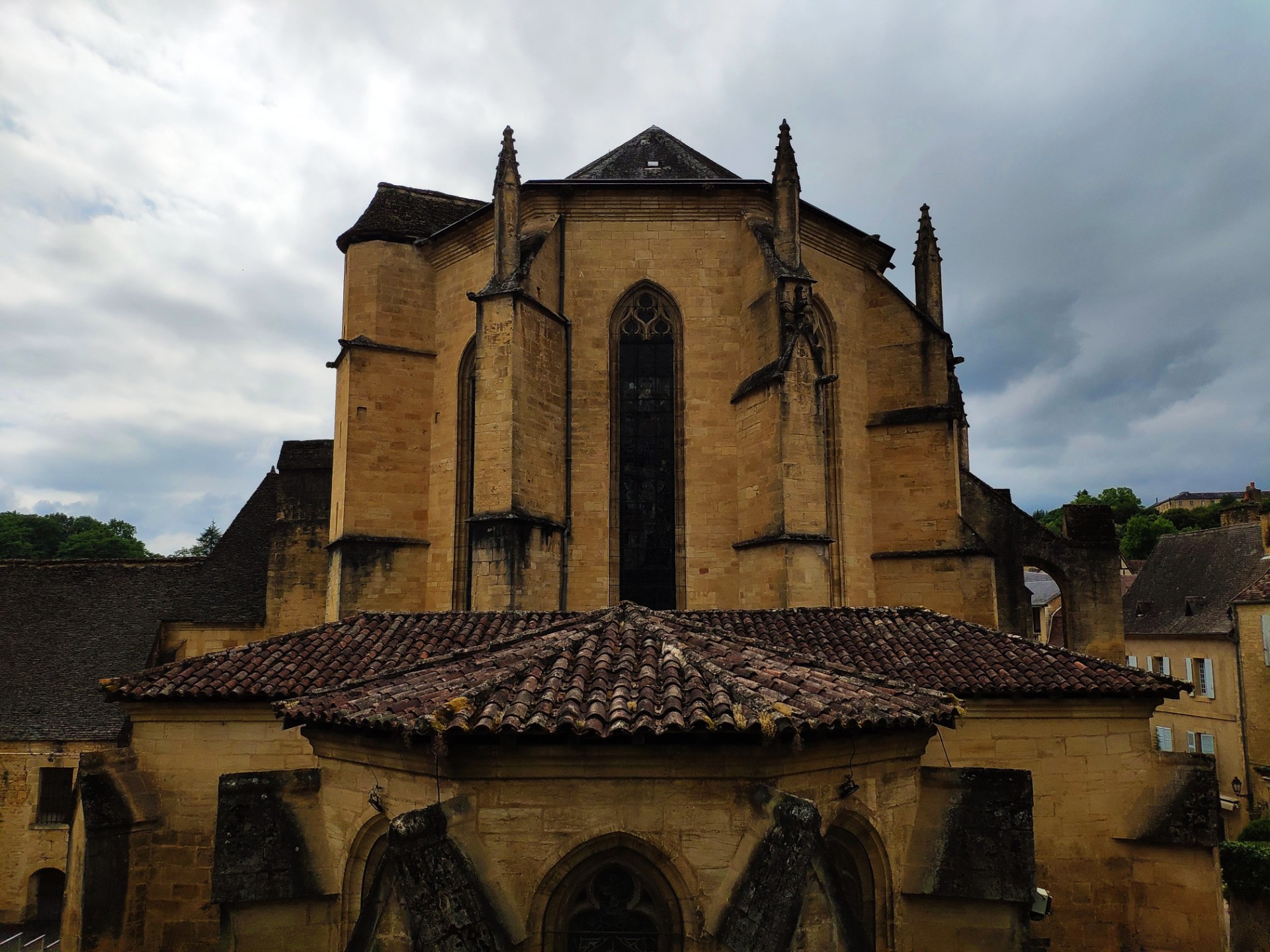 La cathédrale de Sarlat a été restauré avec des éléments modernes, on voit notamment que la rosace a été remplacée par une grande plaque de métal gris foncé, tout comme la grande porte qui donne sur la place. Il est aussi possible de prendre un ascenseur pour admirer les toits de Sarlat depuis la tour, mais lorsque l’on arrive c’était déjà fermé.