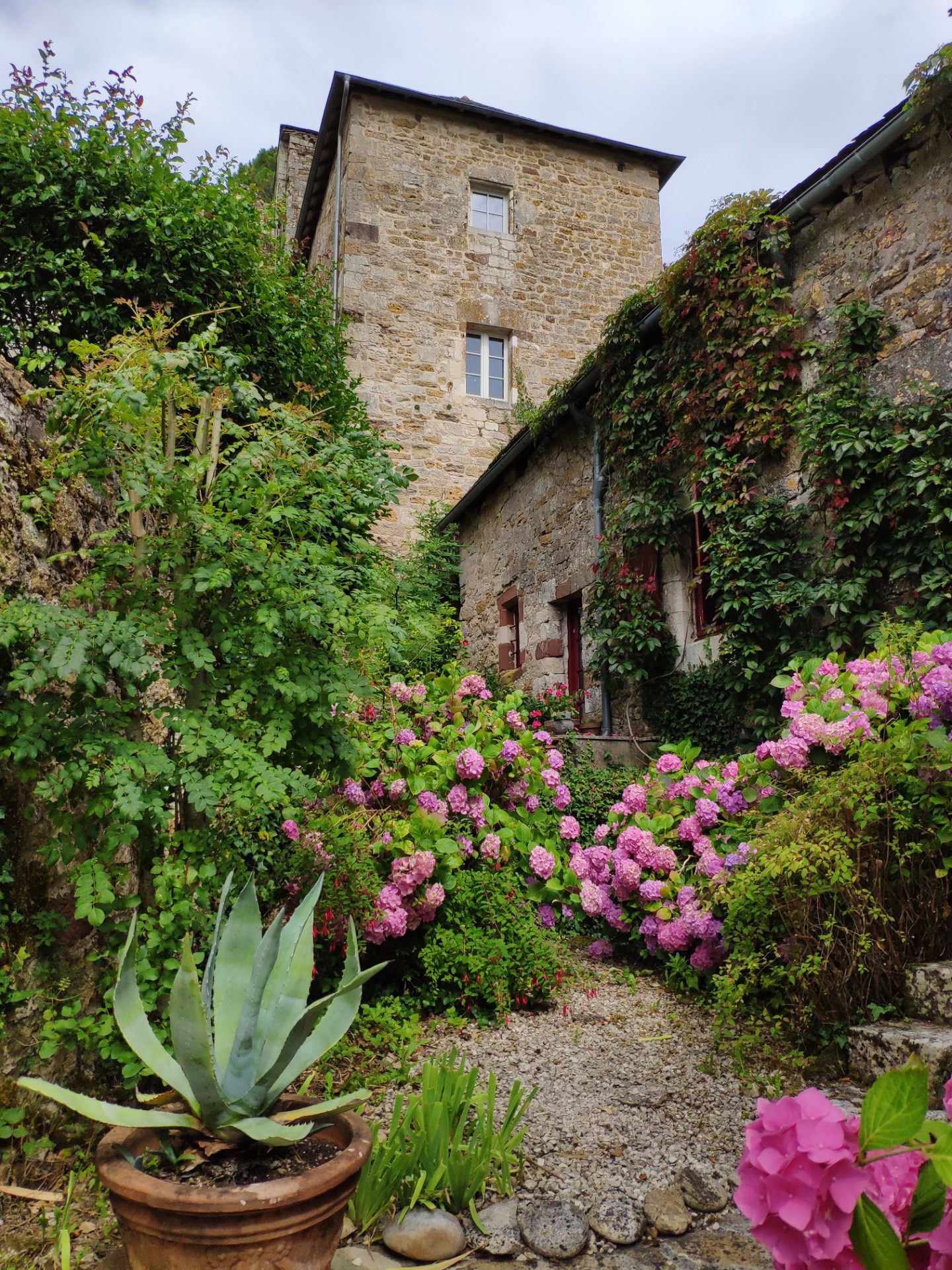 Les pierres blondes se mêlent à la végétation un peu folle qui pousse contre les murs