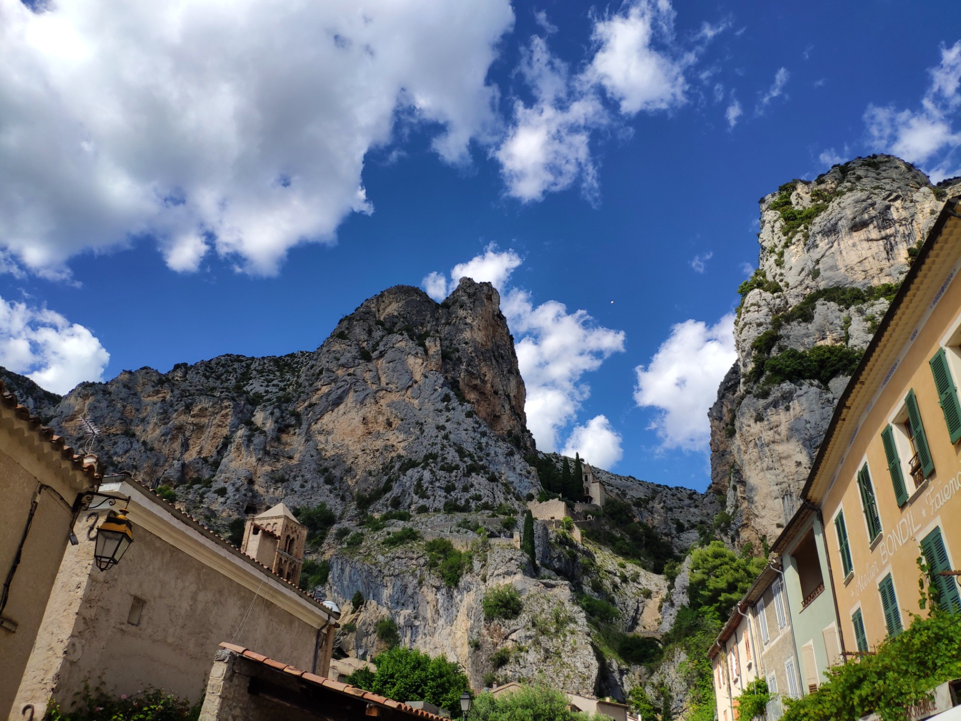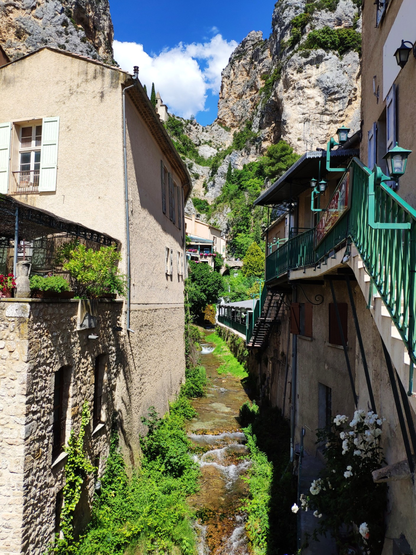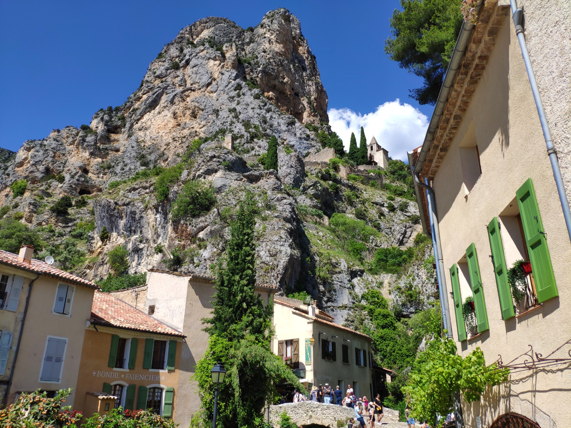Nous reprenons la route en direction de Moustiers Sainte Marie, un village classé parmi les plus beaux villages de France. Ce village posé contre une faille dans la montagne, surmontée d’une étoile suspendue dans le vide, est une des merveilles de la région.