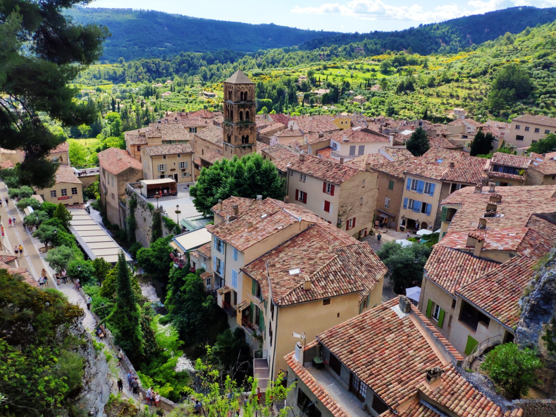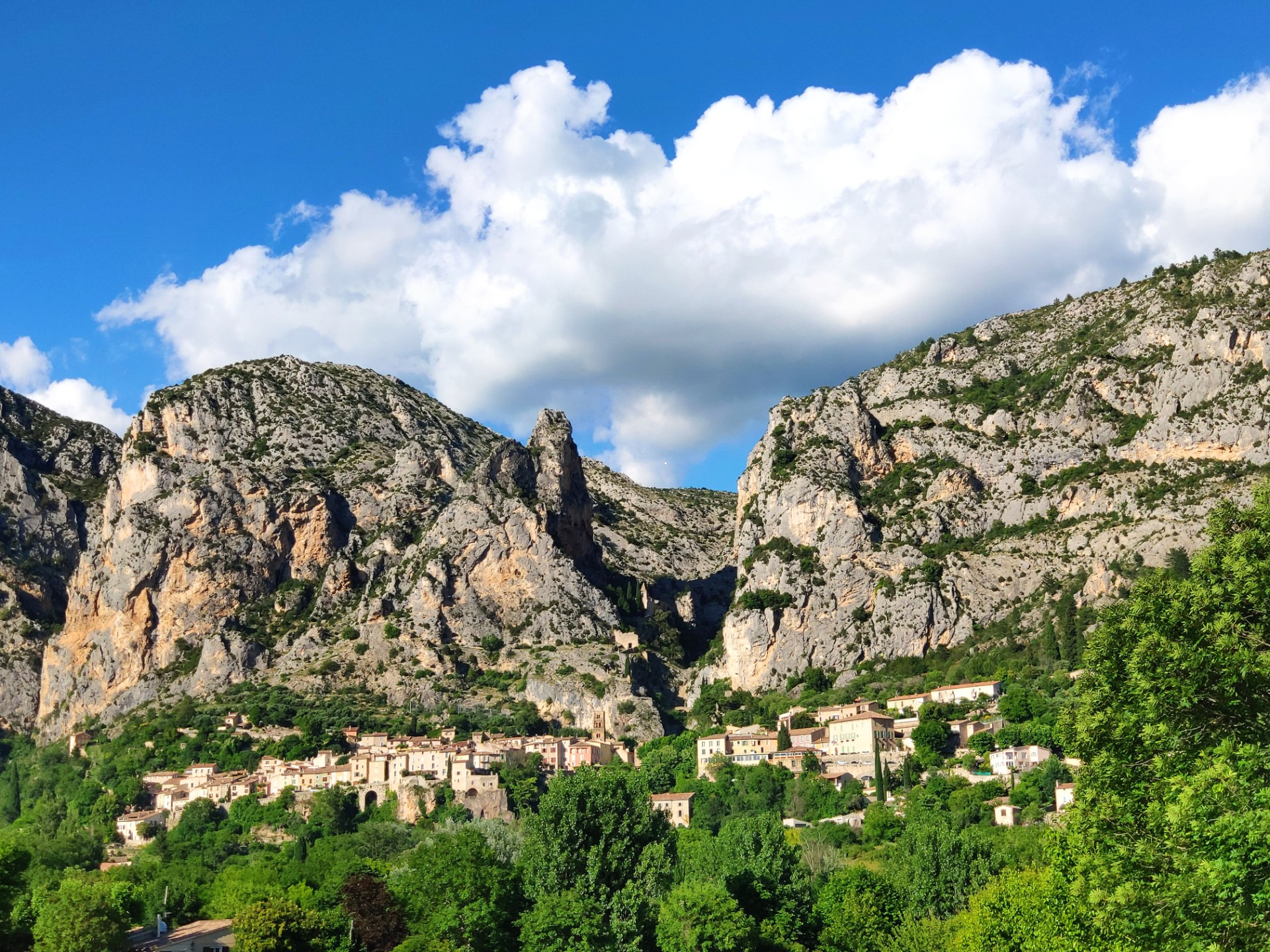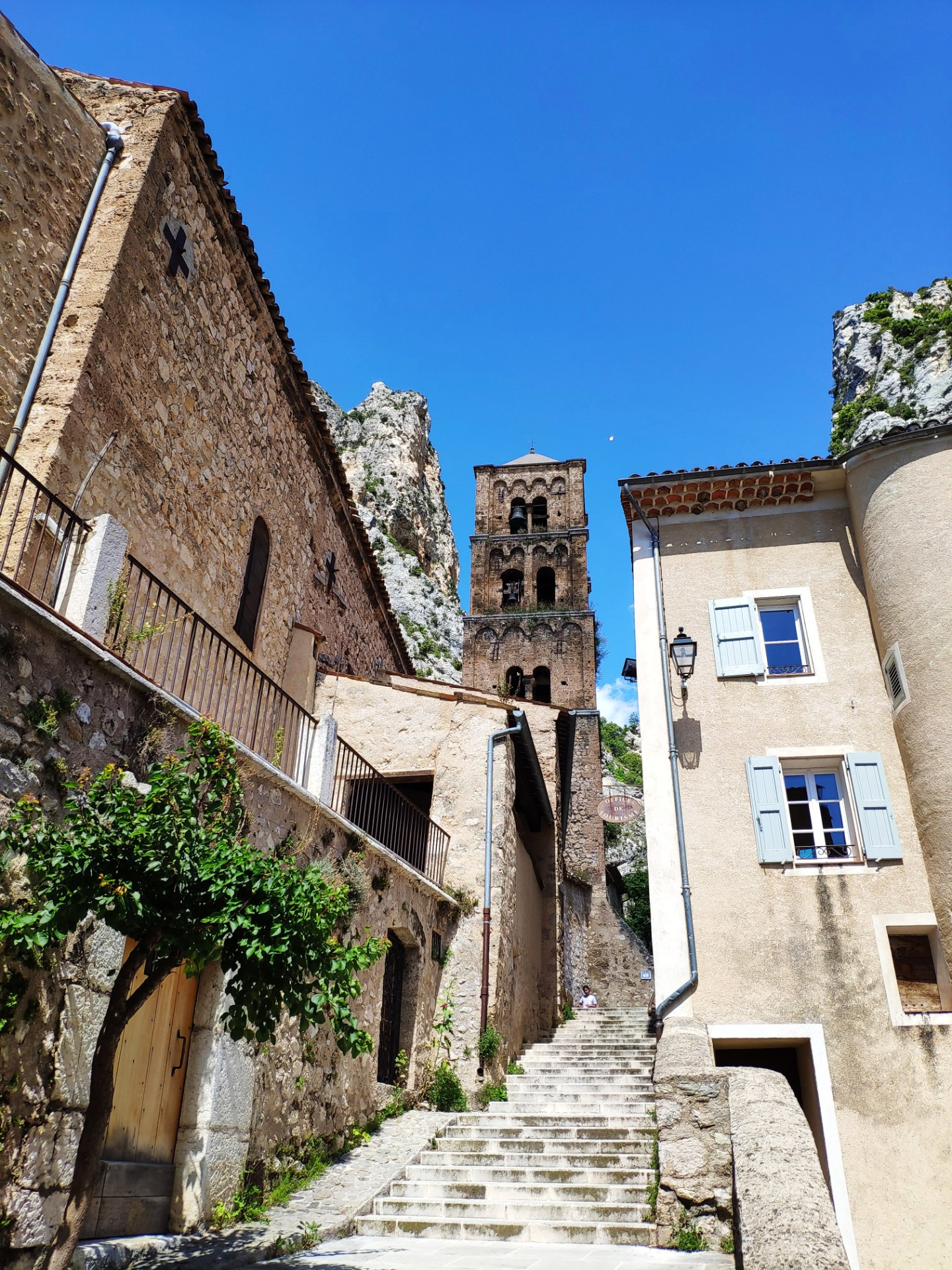 Nous reprenons la route en direction de Moustiers Sainte Marie, un village classé parmi les plus beaux villages de France. Ce village posé contre une faille dans la montagne, surmontée d’une étoile suspendue dans le vide, est une des merveilles de la région.