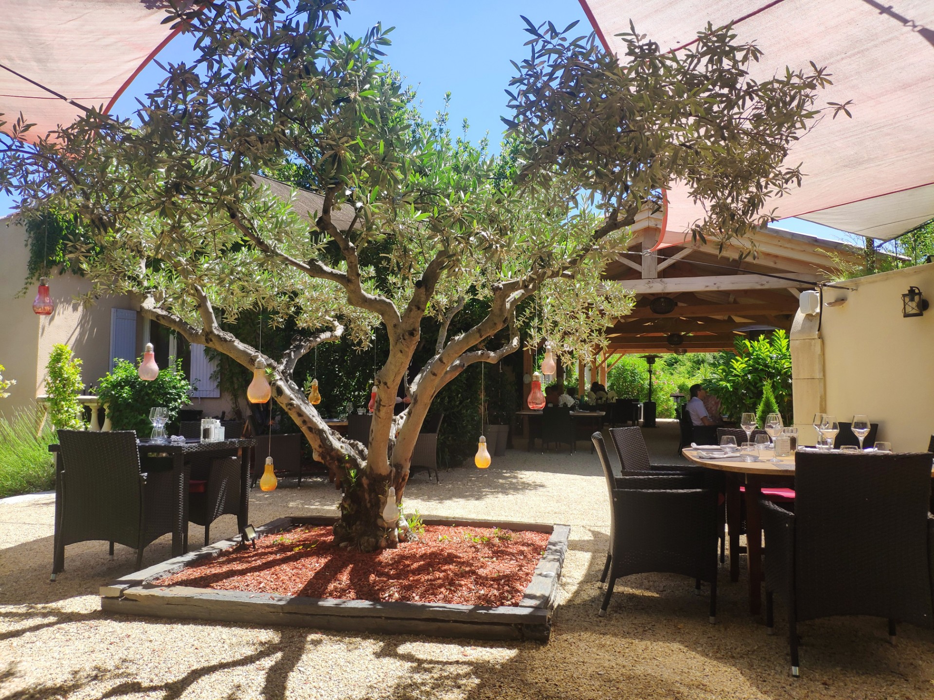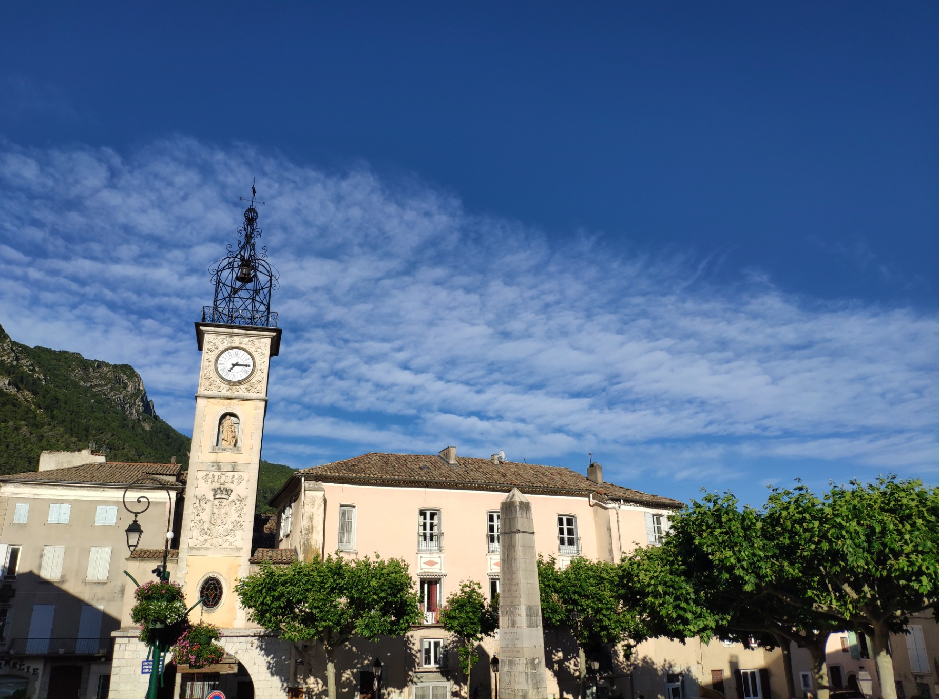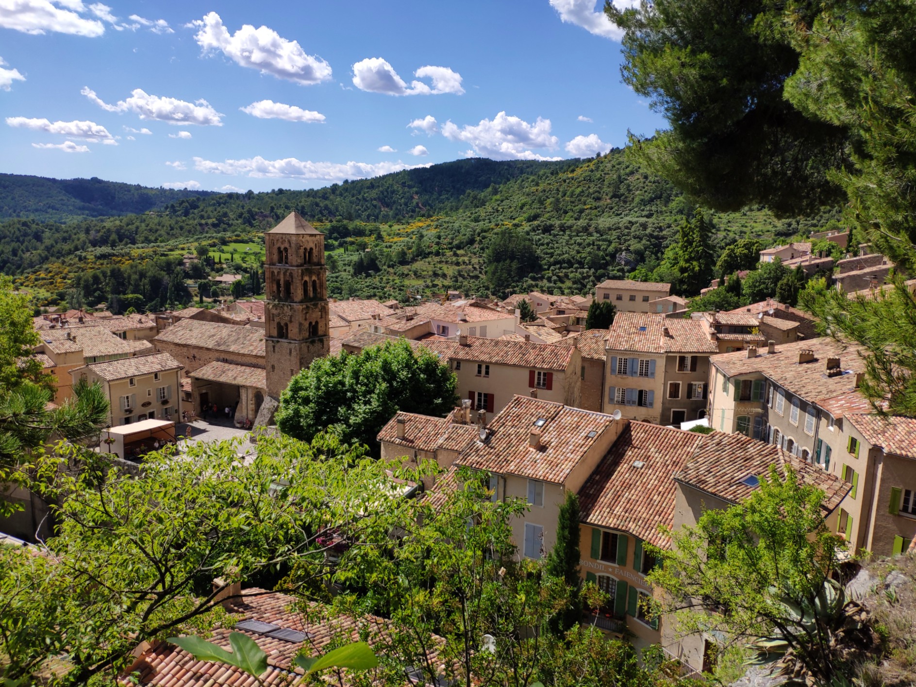 Nous passons le déjeuner dans un très bon restaurant gastronomique de Valensole, la terrasse est très sympathique et l’on aperçoit entre les arbres le vieux village.