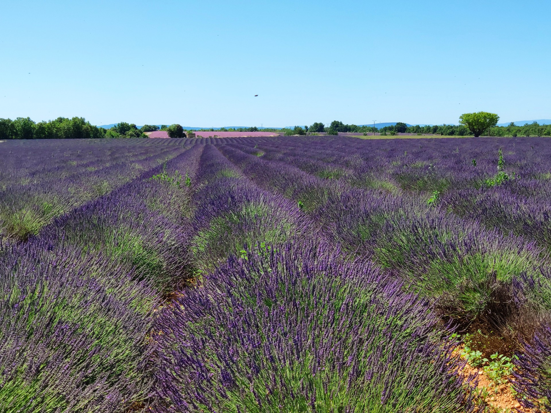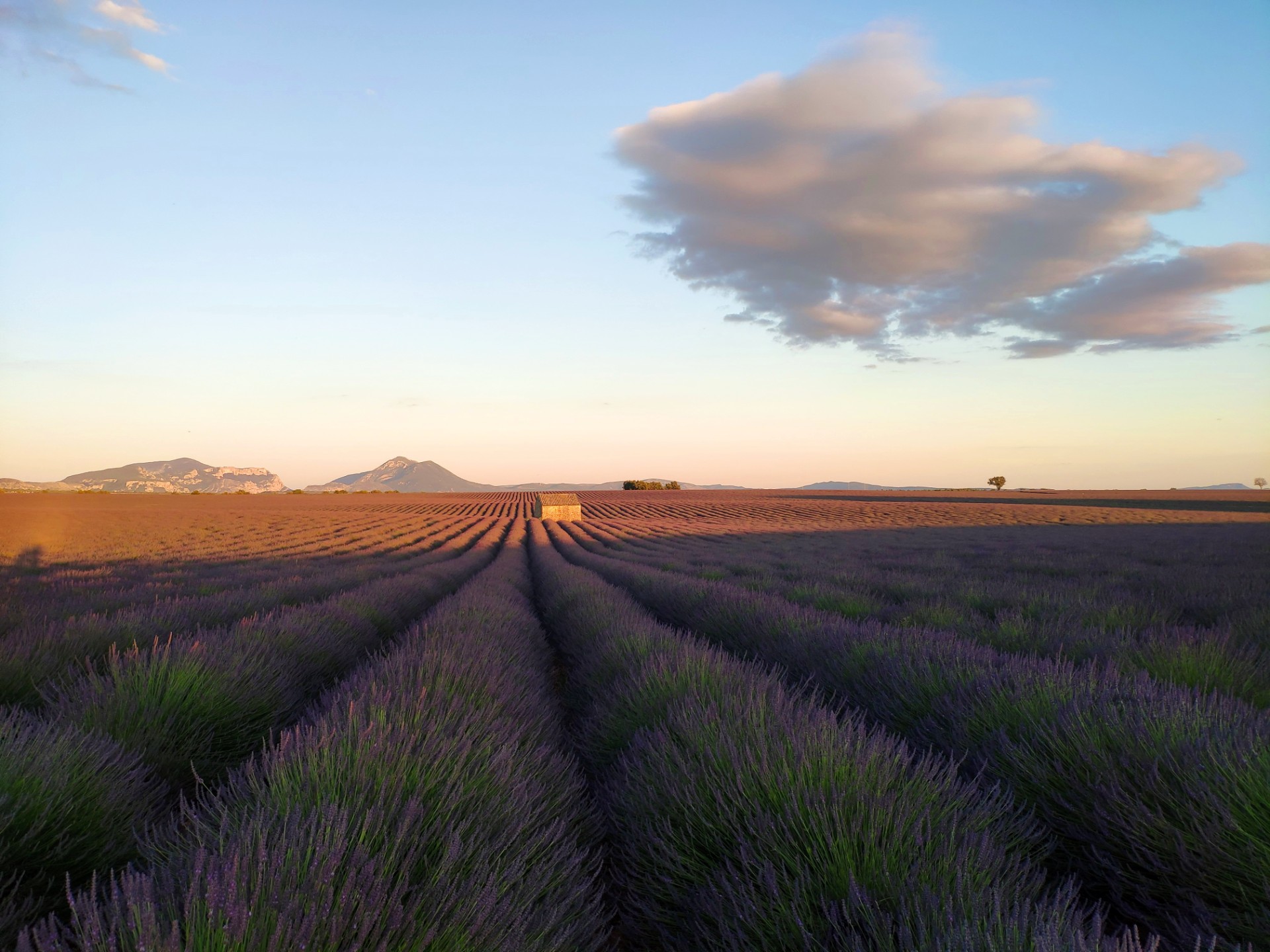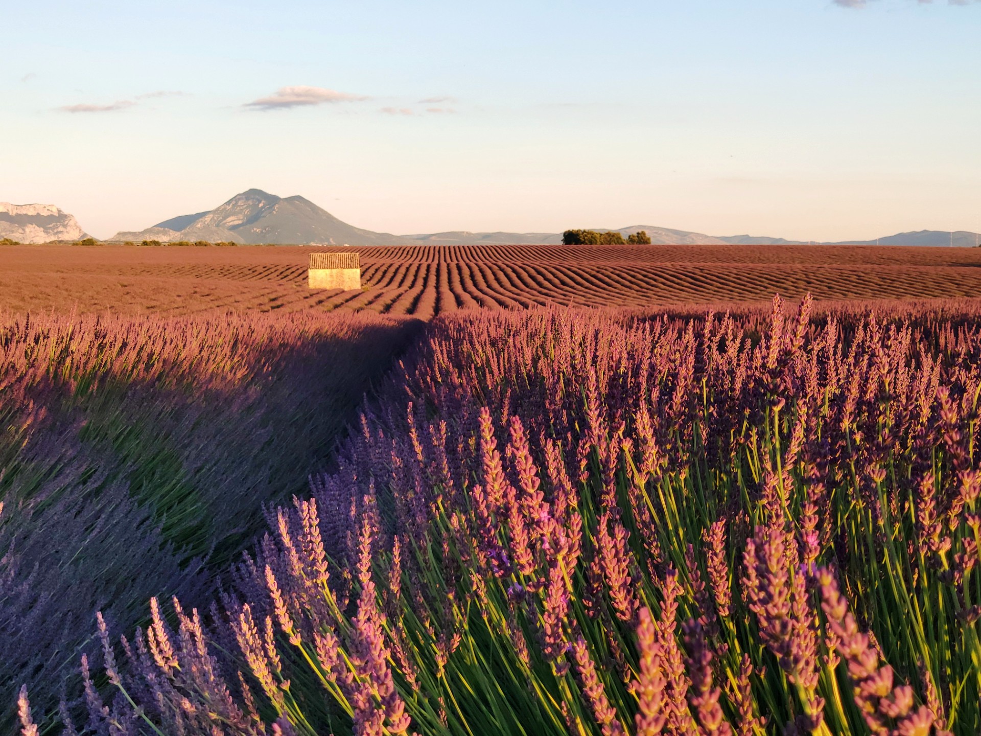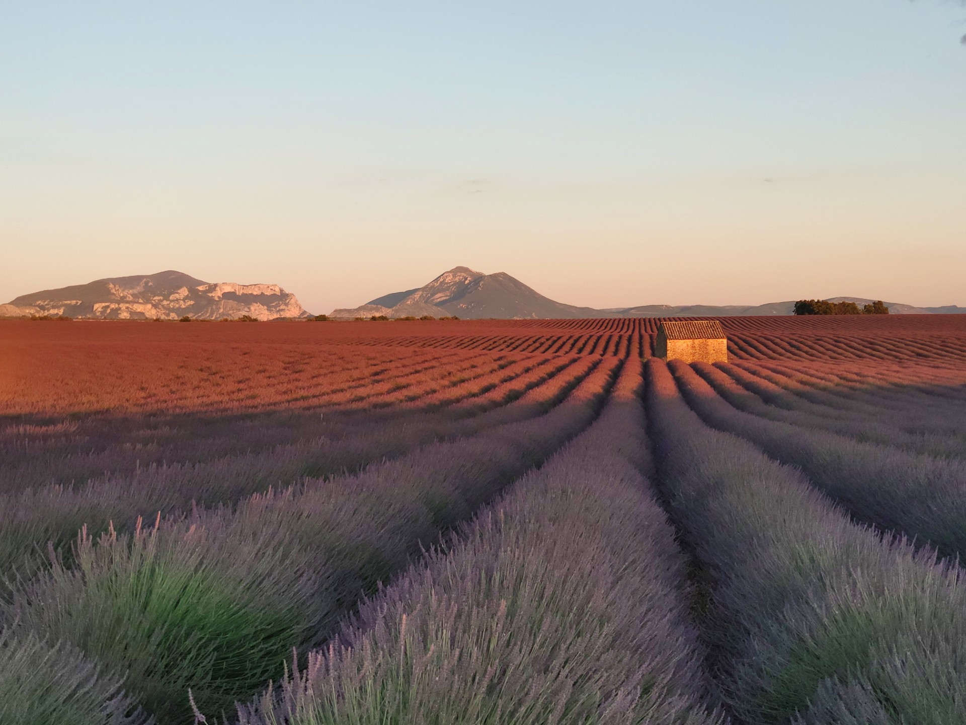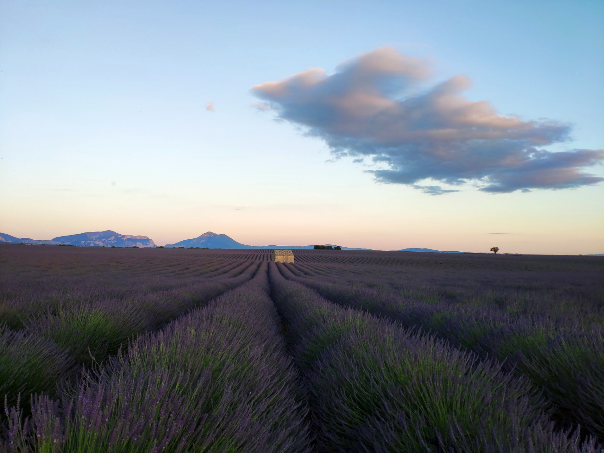 Ce qui est idéal avec les voyages fin Juin, c’est qu’il fait jour très tard, on peut donc d’autant plus profiter de nos journées. Nous arrivons à Valensole en début de soirée, dès la fin de la montée sur le plateau, on est accueilli par des champs de lavande à perte de vue. Mais pas que, on trouve aussi des immenses champs de blé et de sauge à perte de vue.