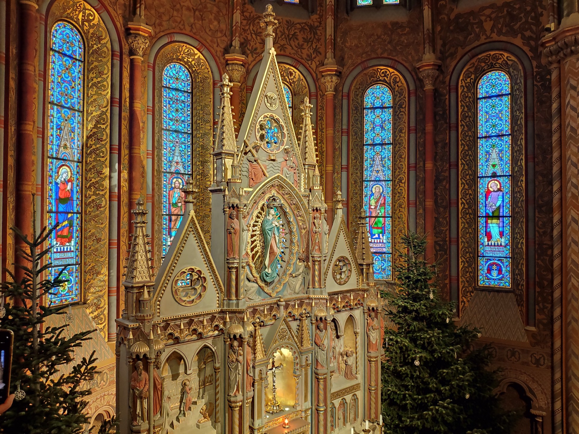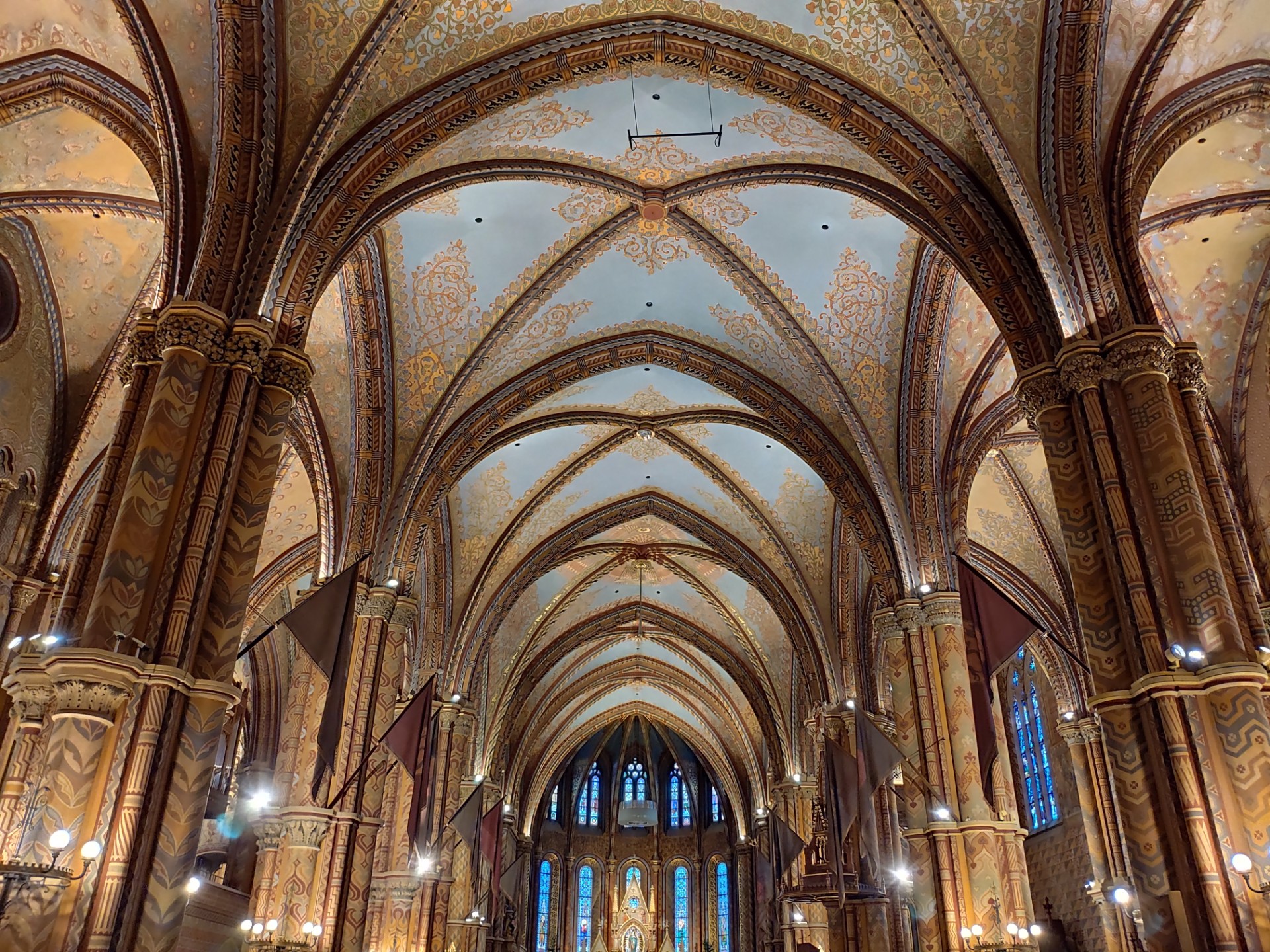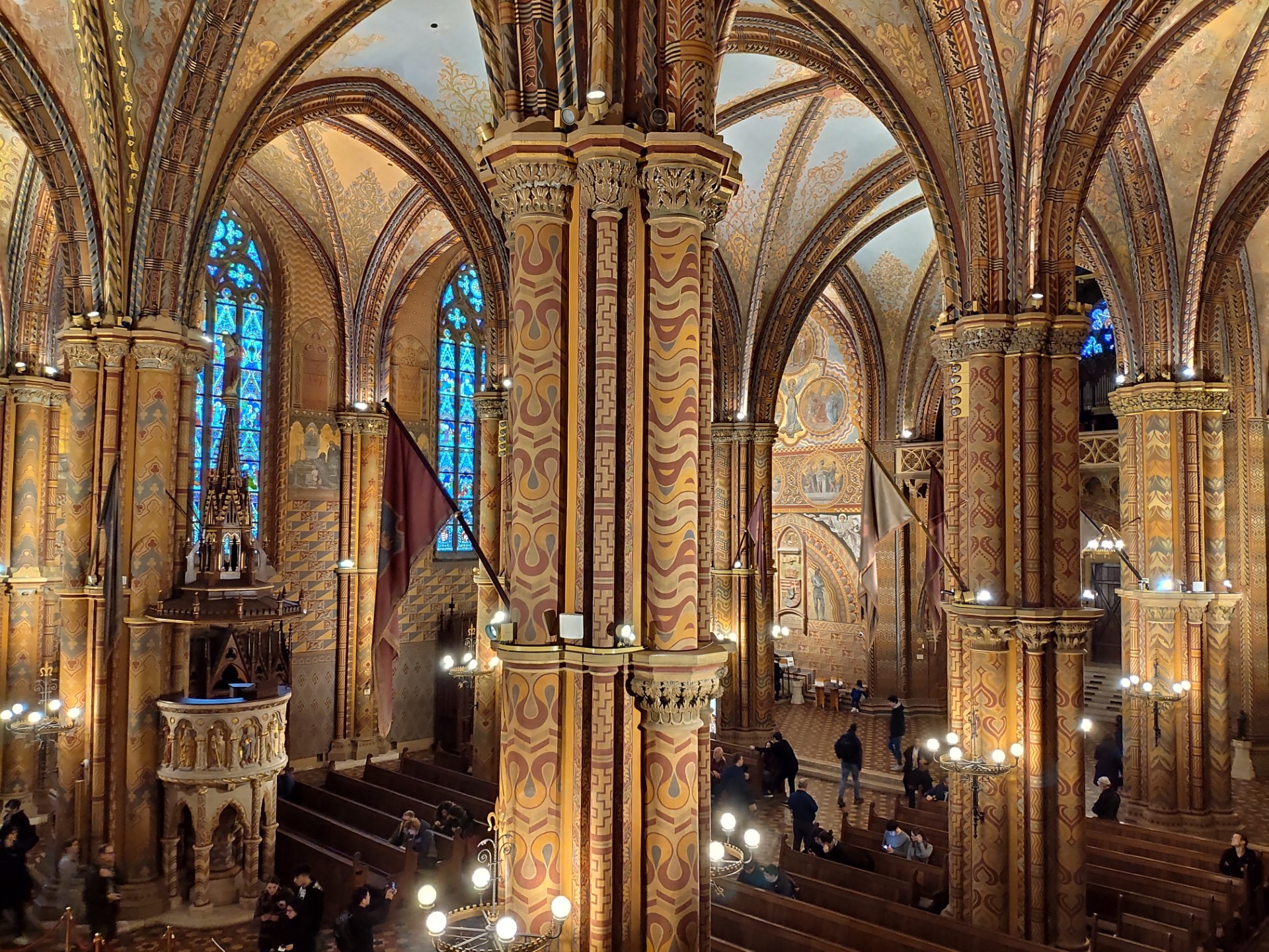 Pour cette deuxième journée à Budapest, on commence par visiter l’église de Saint Matthias. De l’extérieur l’église ne semble pas très grande, mais une fois à l’intérieur on est stupéfait par l’espace.