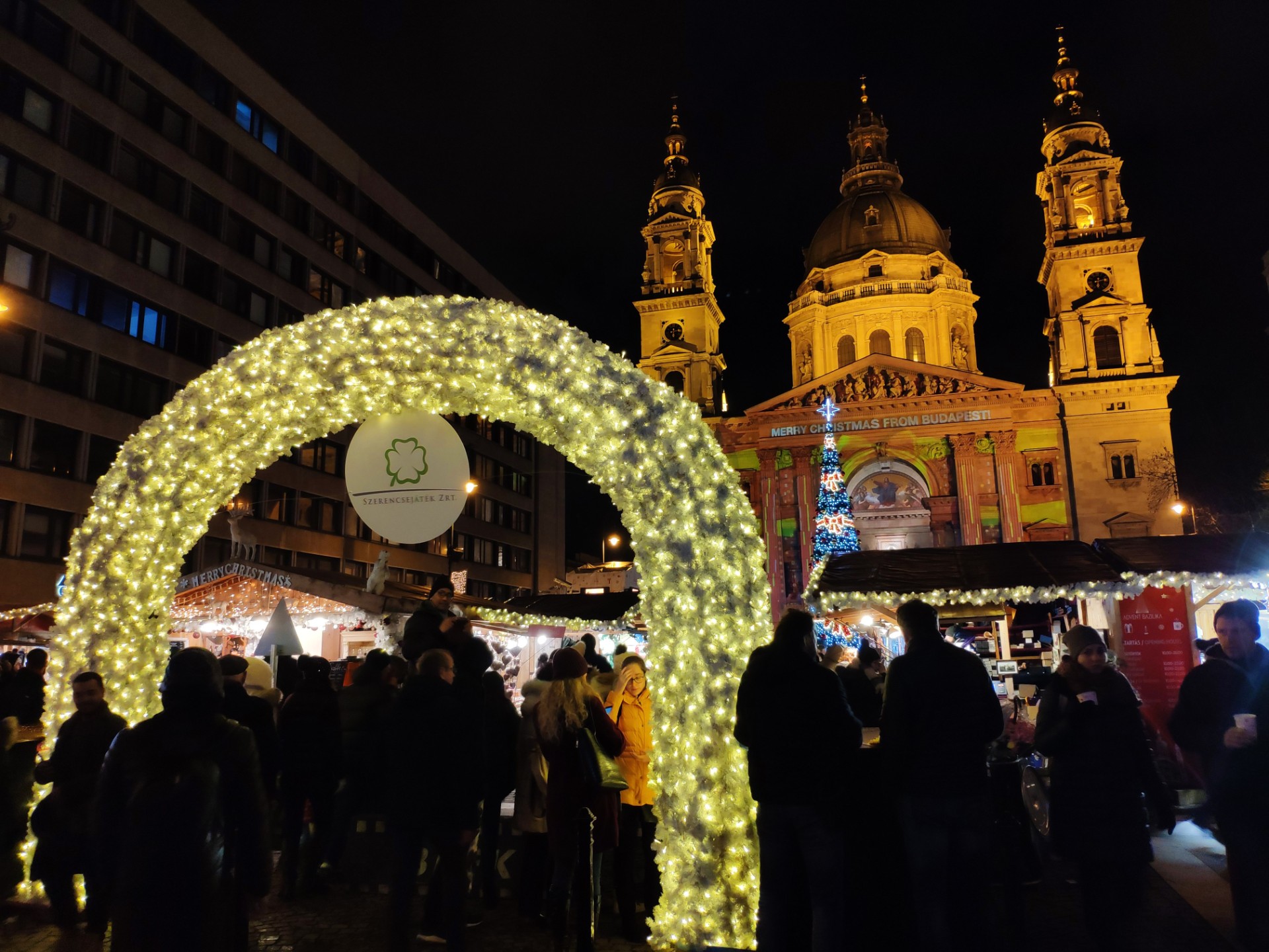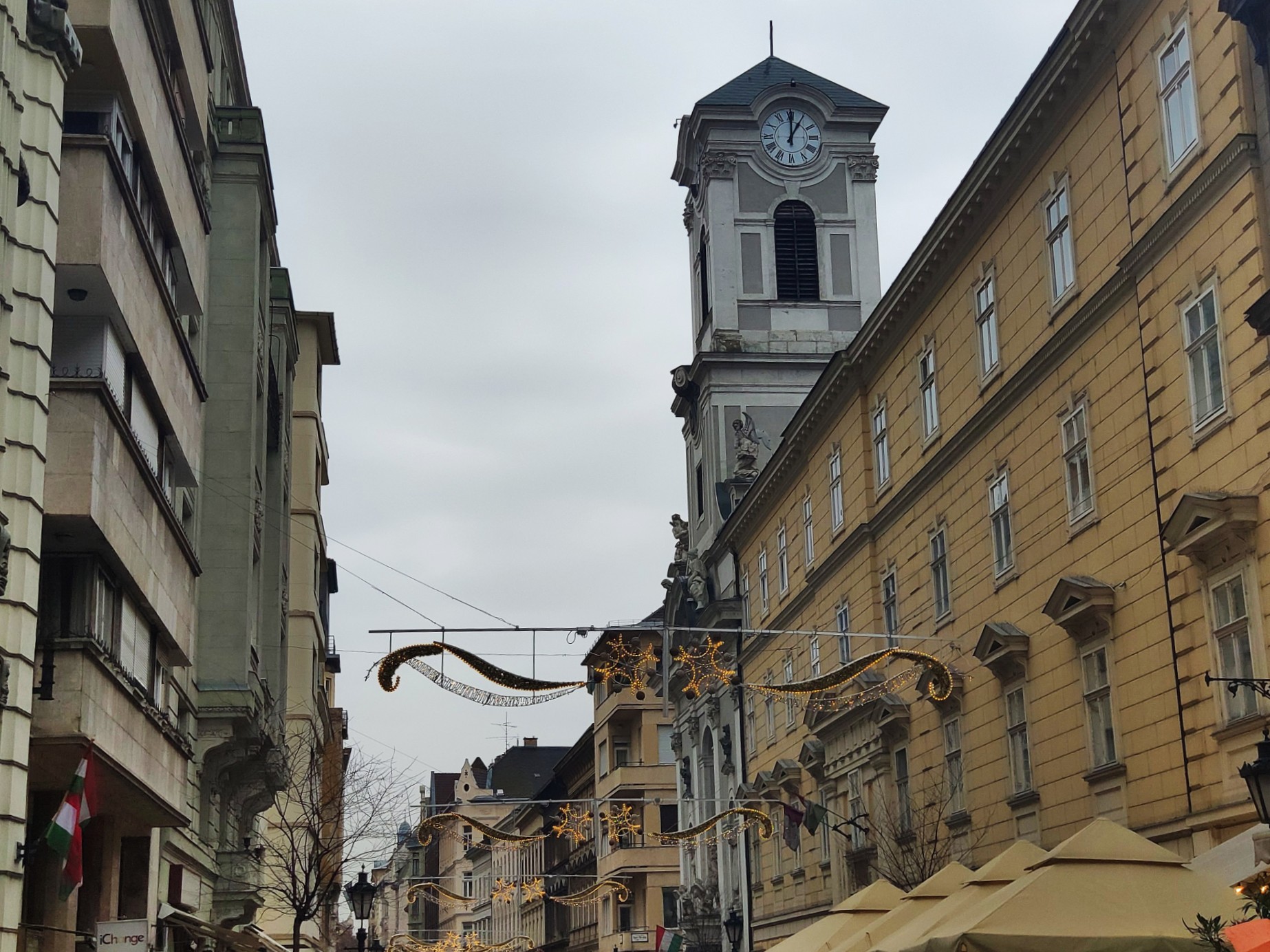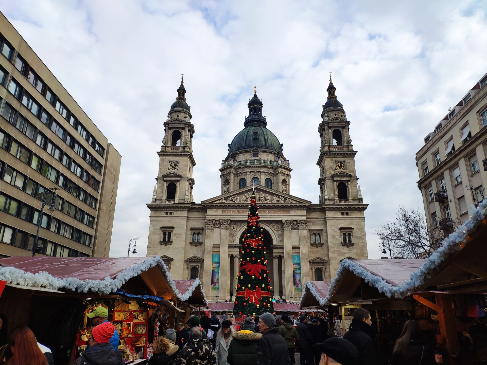 Nous continuons notre découverte des quartiers de Pest par la plus grande église catholique de la ville, un édifice grandiose au pied duquel a été installé un marché de Noël très vivant.