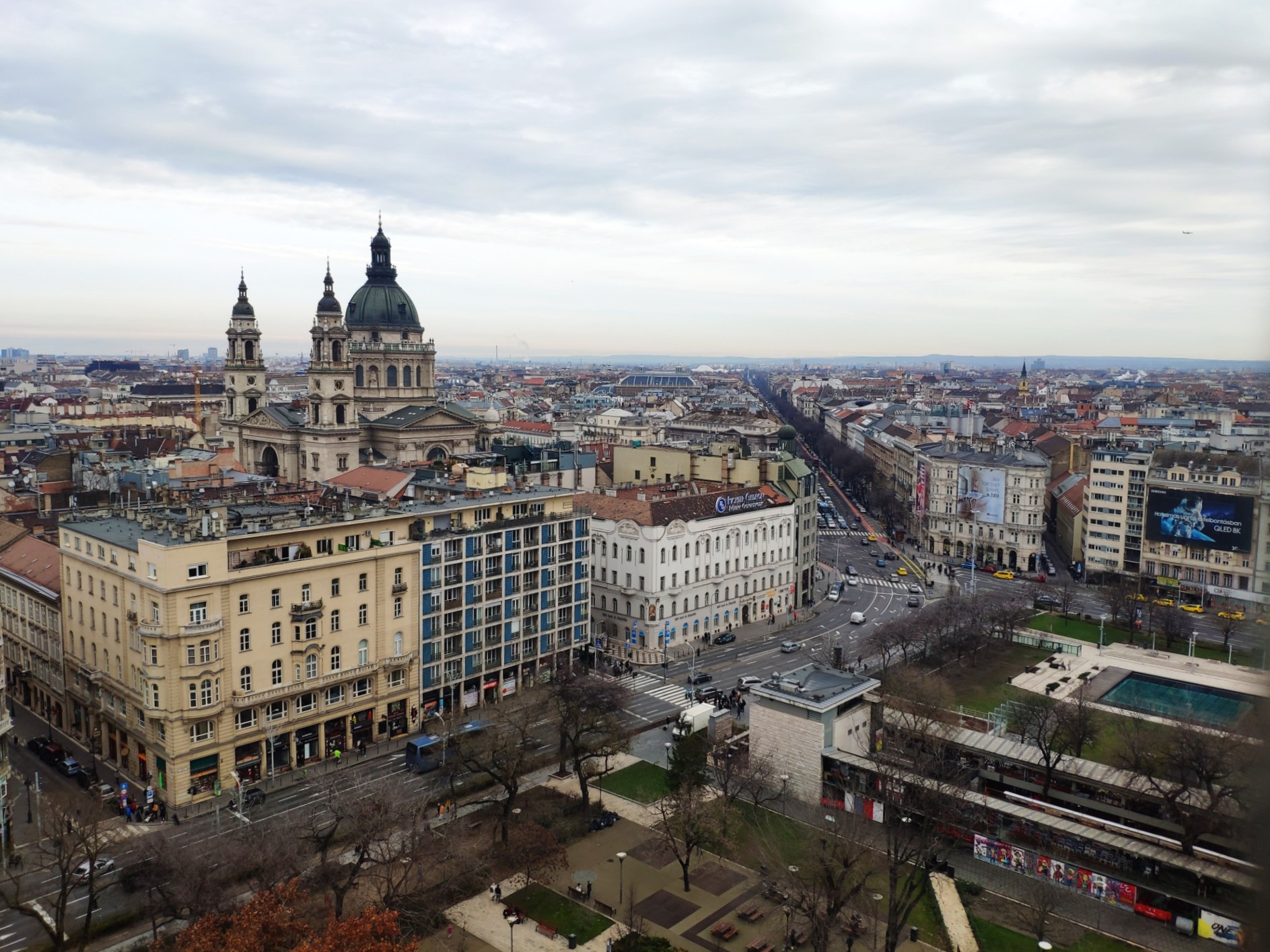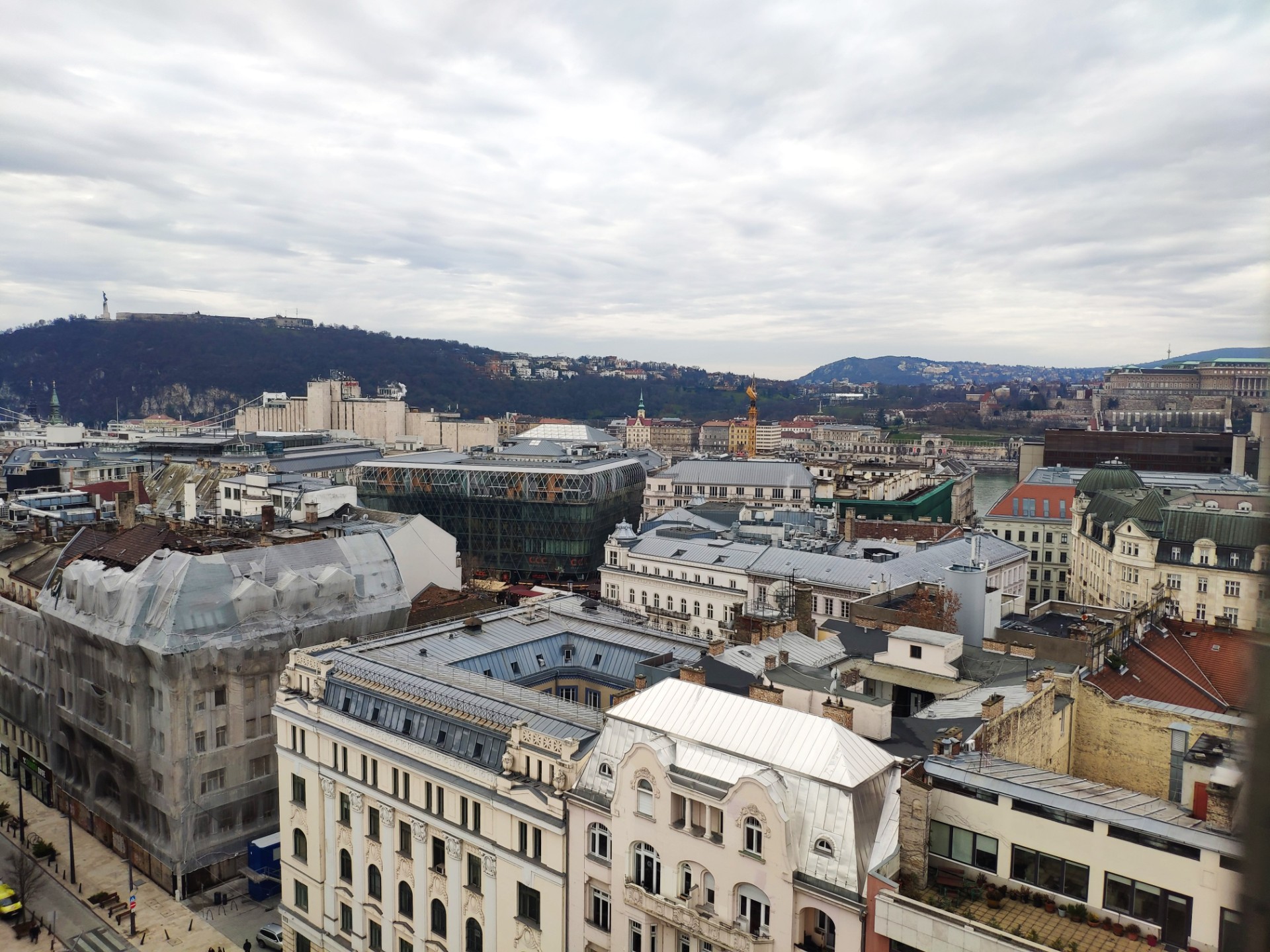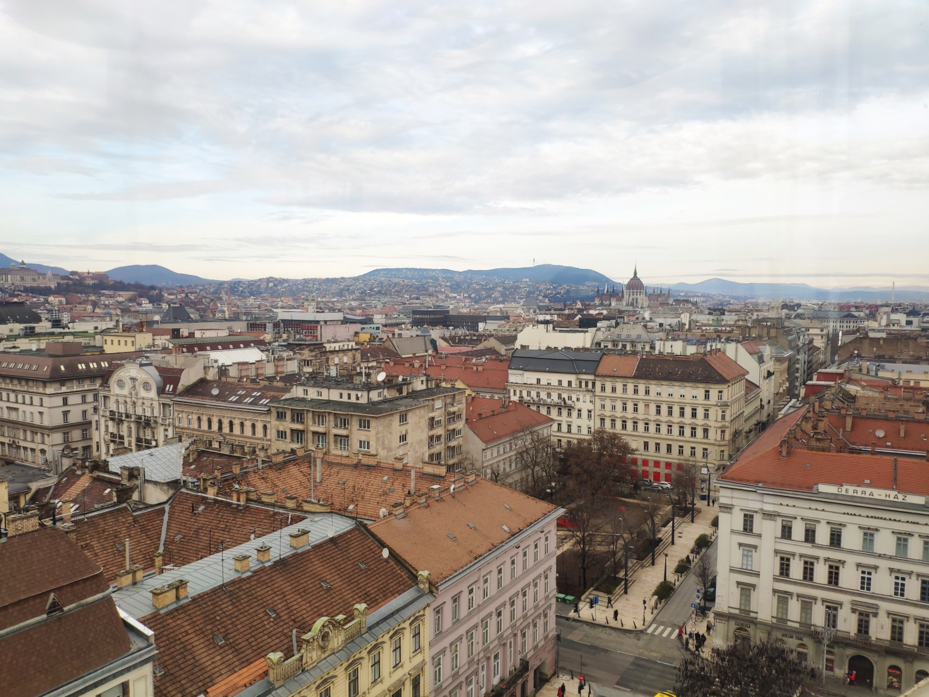 Après ce long moment de contemplation, nous retournons à l’hôtel pour prendre un bon petit déjeuner, puis nous prenons le bus pour le centre-ville. Une grande roue a été installée sur une place et on en profite pour grimper dans une cabine pour avoir une vue plongeante sur Pest.