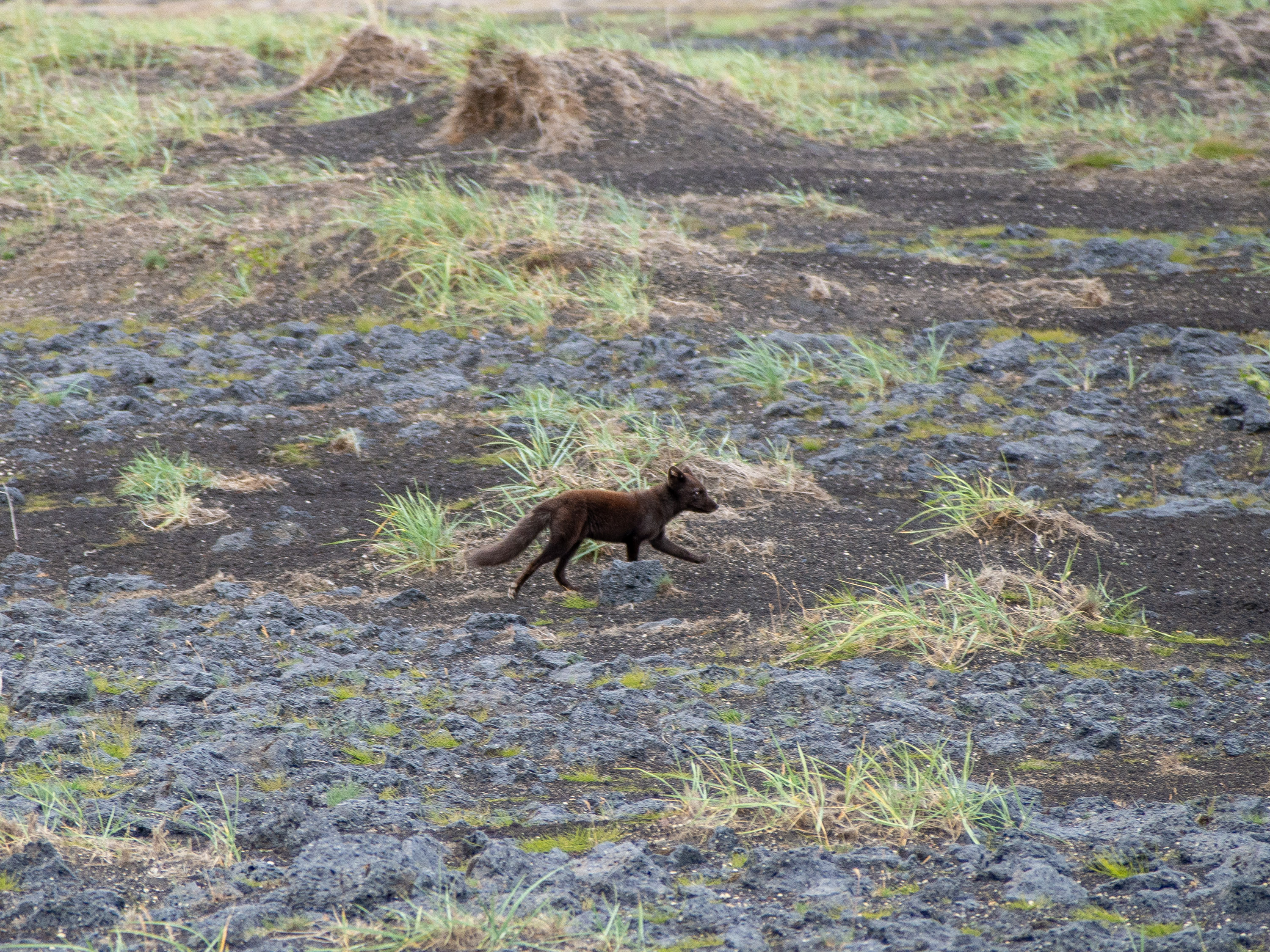 Nous partons de Hella de bon matin, et faisons un premier arrêt au supermarché pour faire le pleins de nourriture pour la journée. Nous prenons ensuite la route vers les highlands en suivant les indications du GPS. Je ne suis pas sur que ce soit vraiment la bonne route car on fait une bonne partie du chemin avant la F road sur une route en travaux. Bizarre mais finalement c’est aussi une chance incroyable car cette route est au milieu de nulle part et on a la chance de voir un Arctic fox traverser juste devant nous et courir à côté de la voiture, cette journée commence vraiment bien. On a réussi à voir un autre animal sauvage islandais après les rennes quelques jours auparavant.