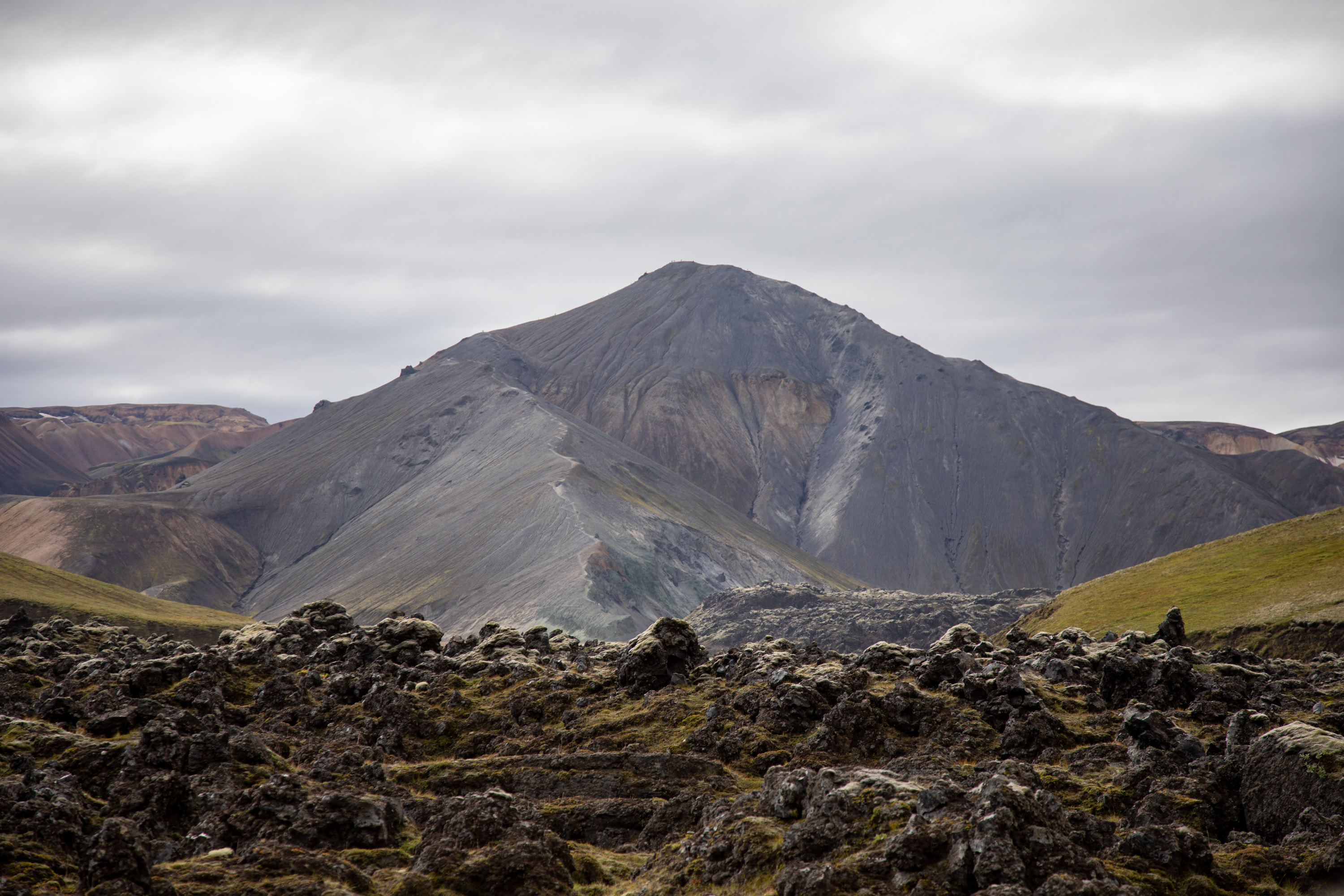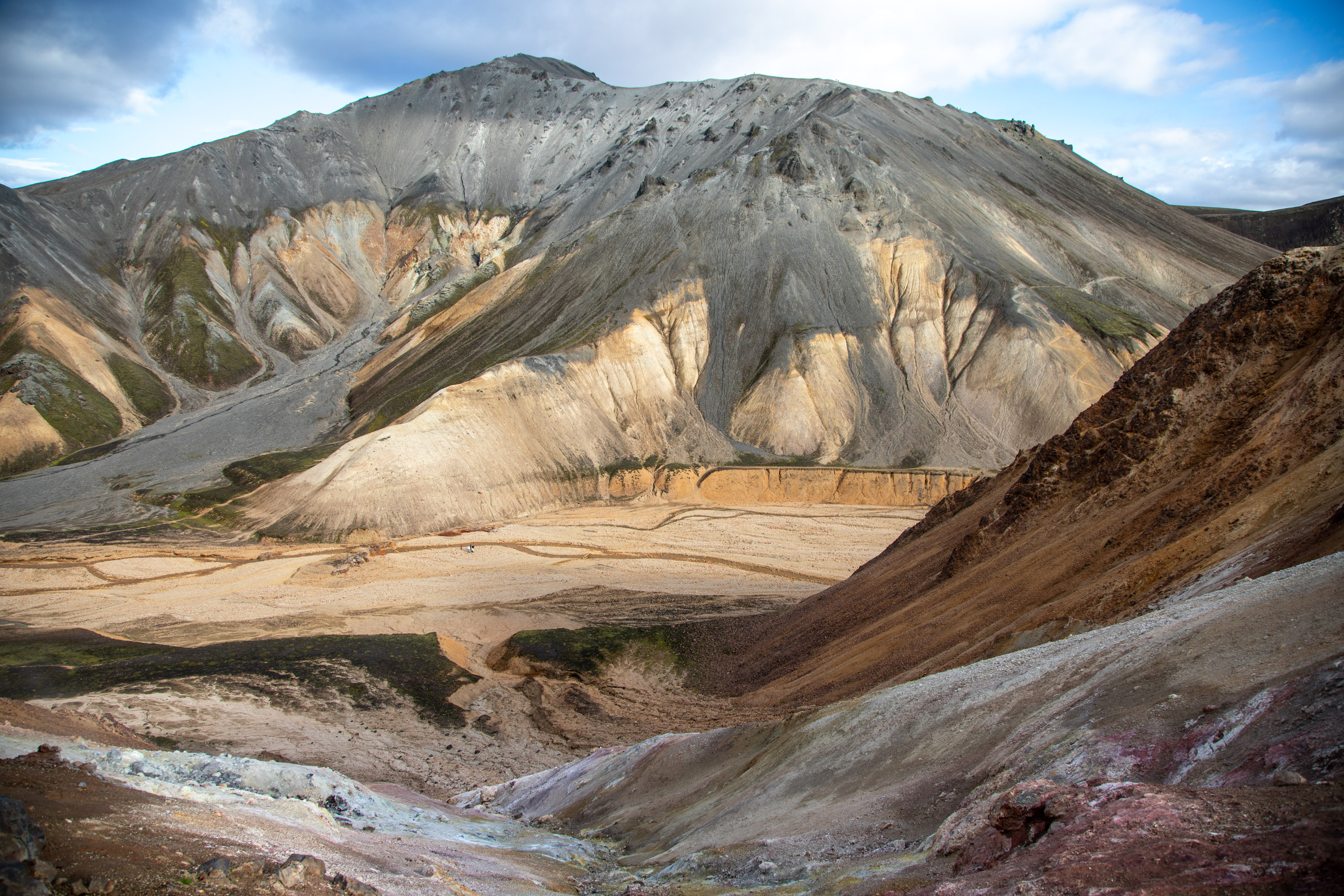 La boucle descend au fond de cette vallée et les plus aventuriers peuvent prolonger l’effort en montant au sommet de Bláhnjúkur, la montagne grise. Elle est plus haute que Brennisteinsalda et la vue depuis le sommet doit être vraiment incroyable. Mais on se dit que l’on en a déjà pris tellement pleins les yeux que cela suffira et ma copine ne se sent pas capable de monter et redescendre.