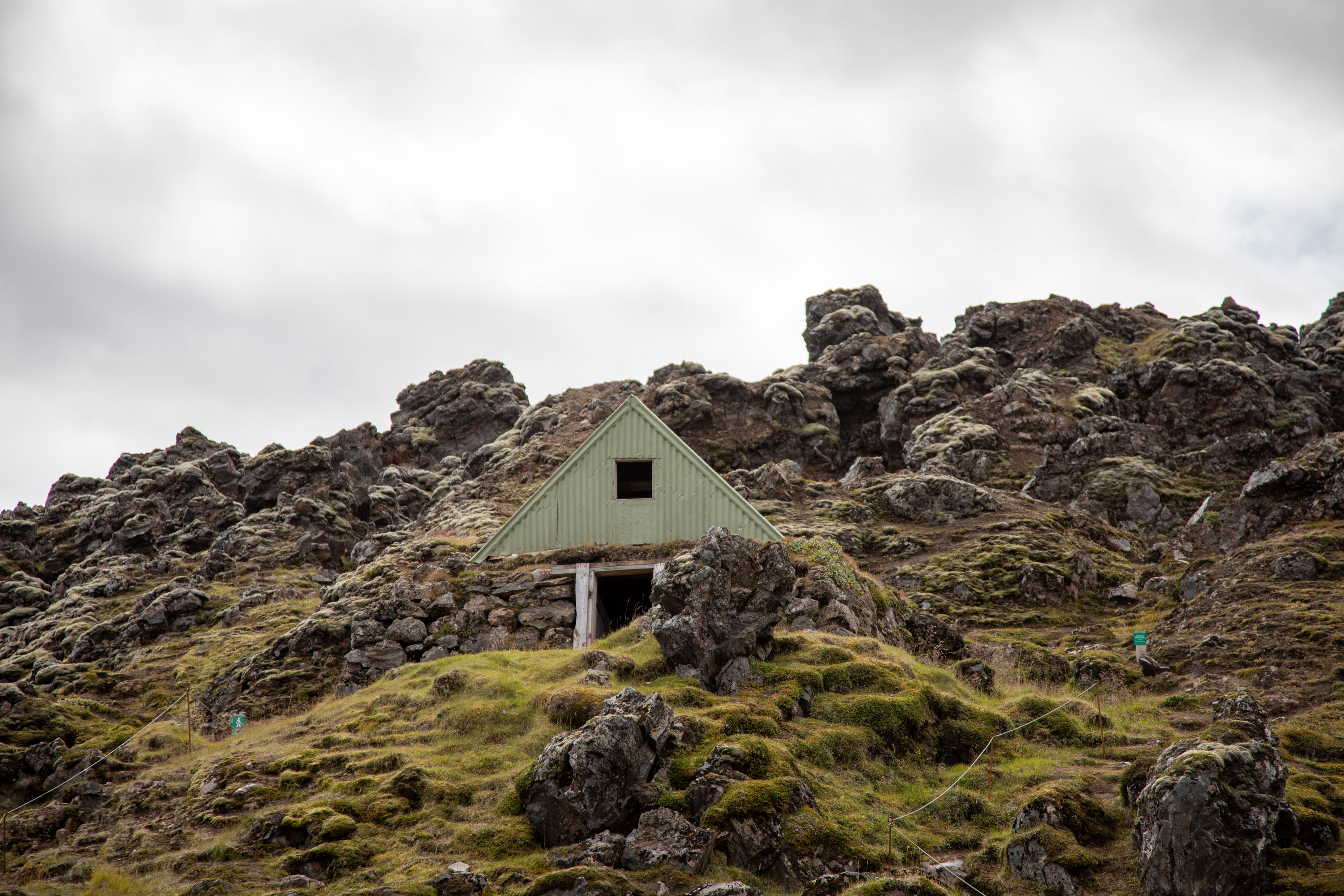 Il y a trois boucles à faire dans la région du Landmannalaugar, elle démarrent autour de cette maison typique de l'Islande, semi enterrée pour mieux supporter le vent violent.