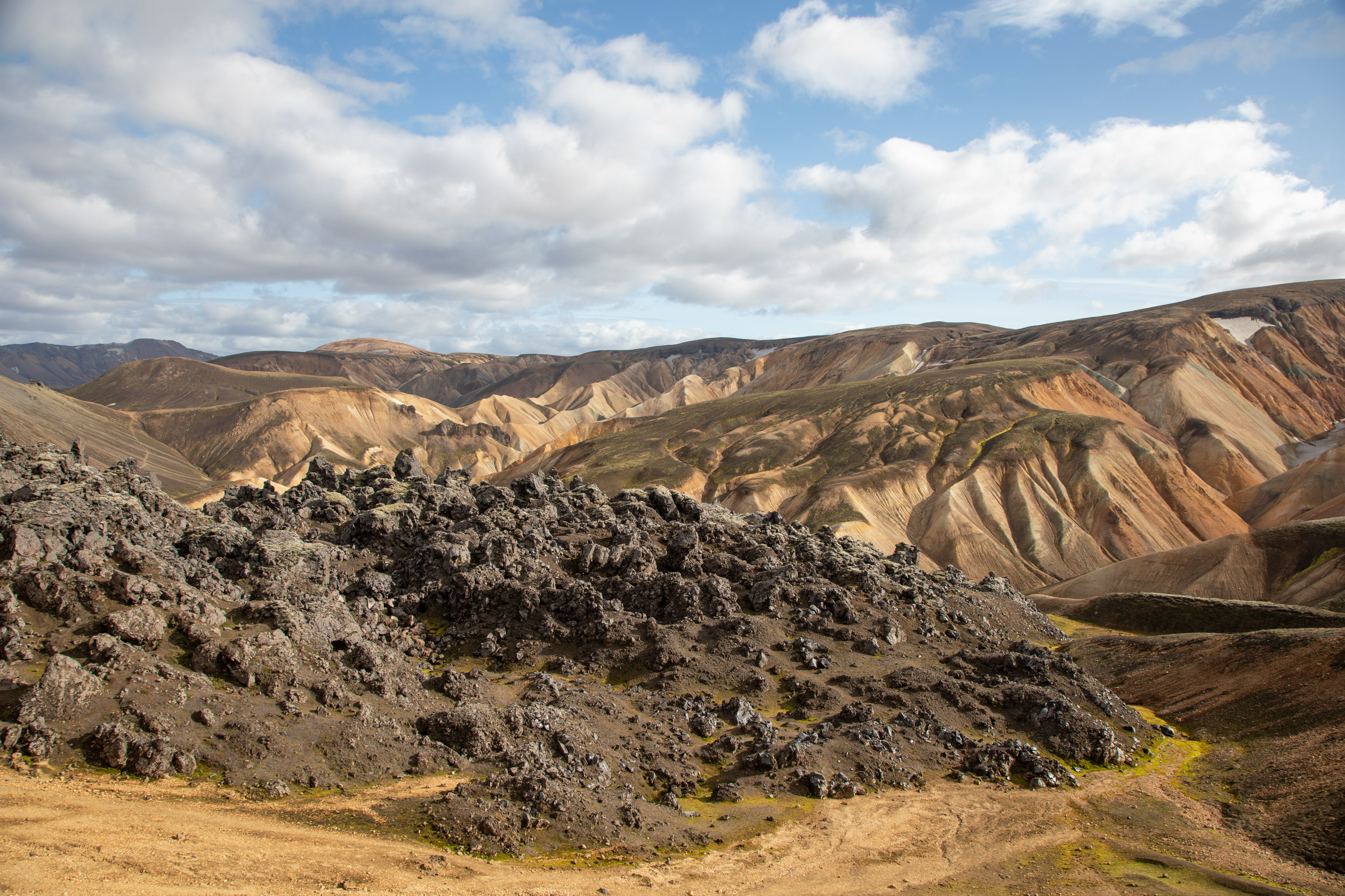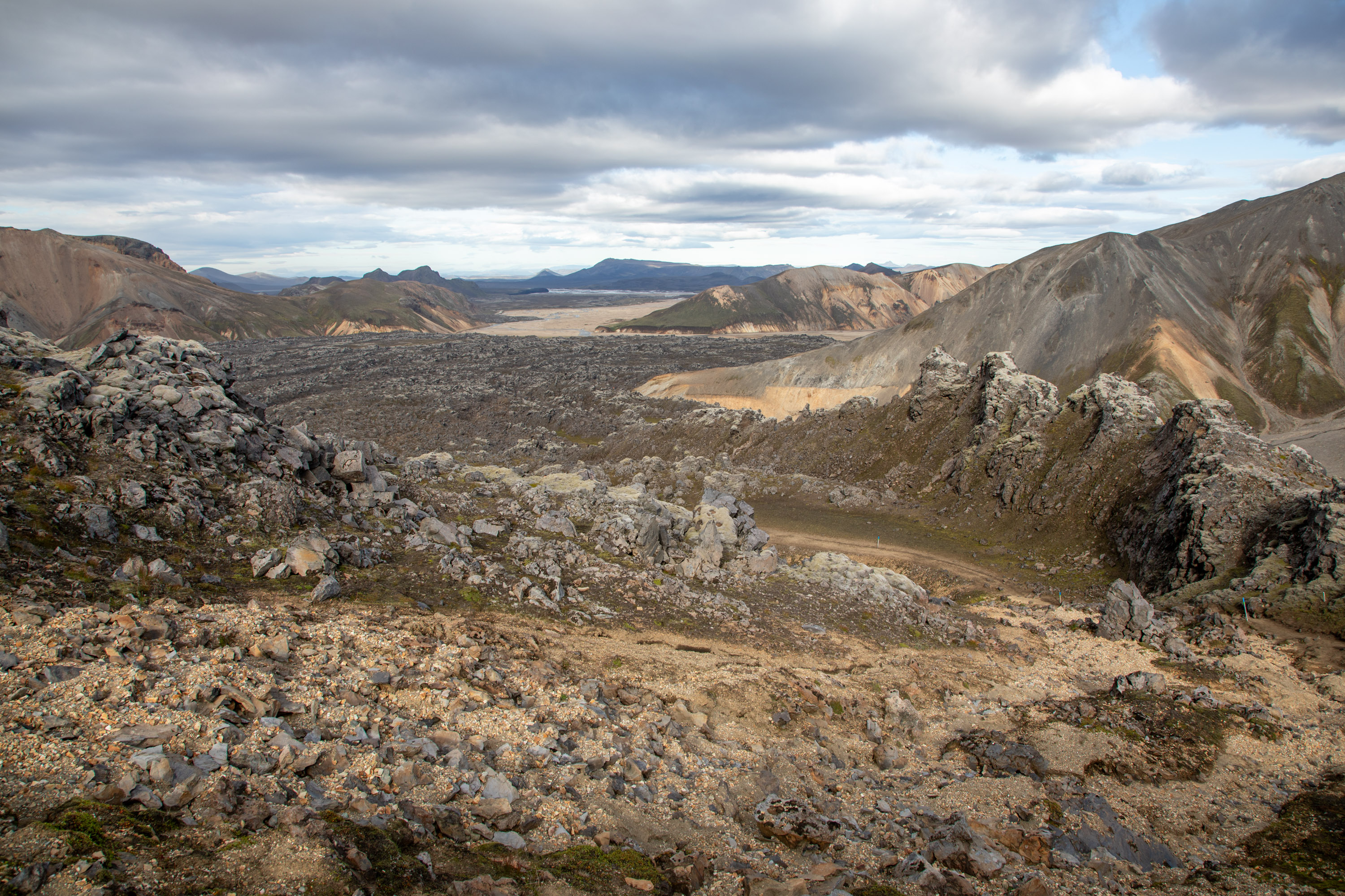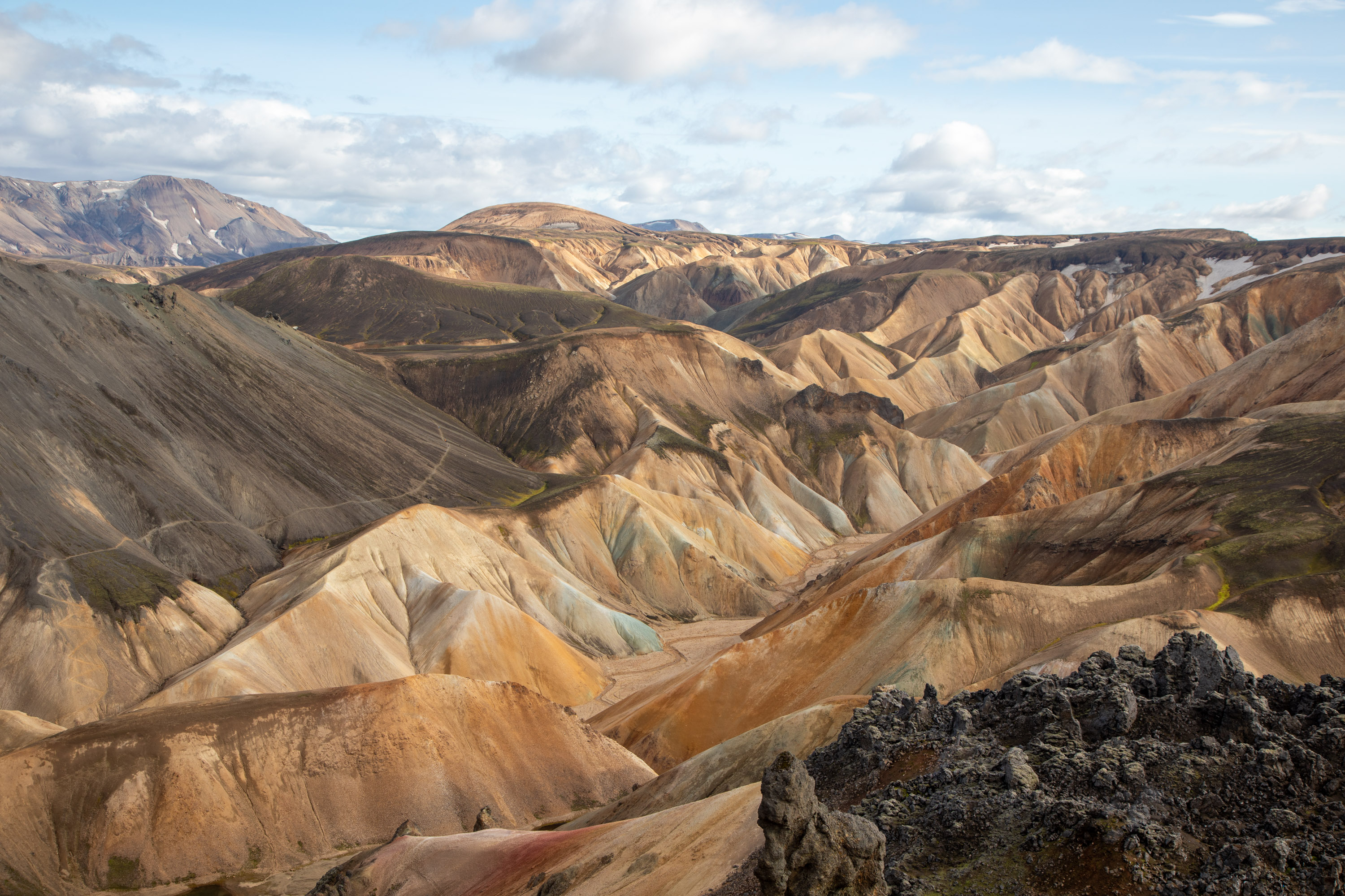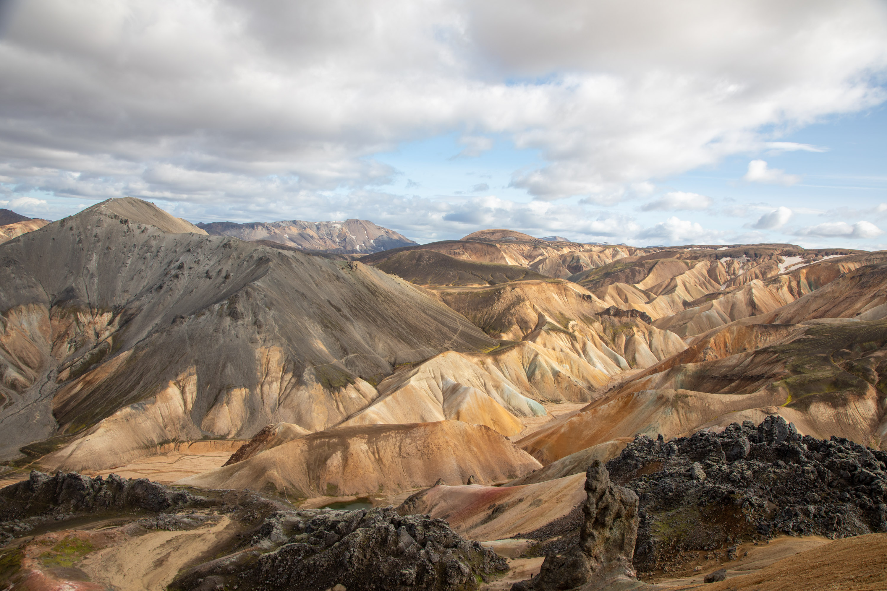 Le paysage est tout simplement époustouflant, on comprend pourquoi le Landmannalaugar est la région la plus touristique des highlands d’Islande, c’est un patchwork de couleurs.