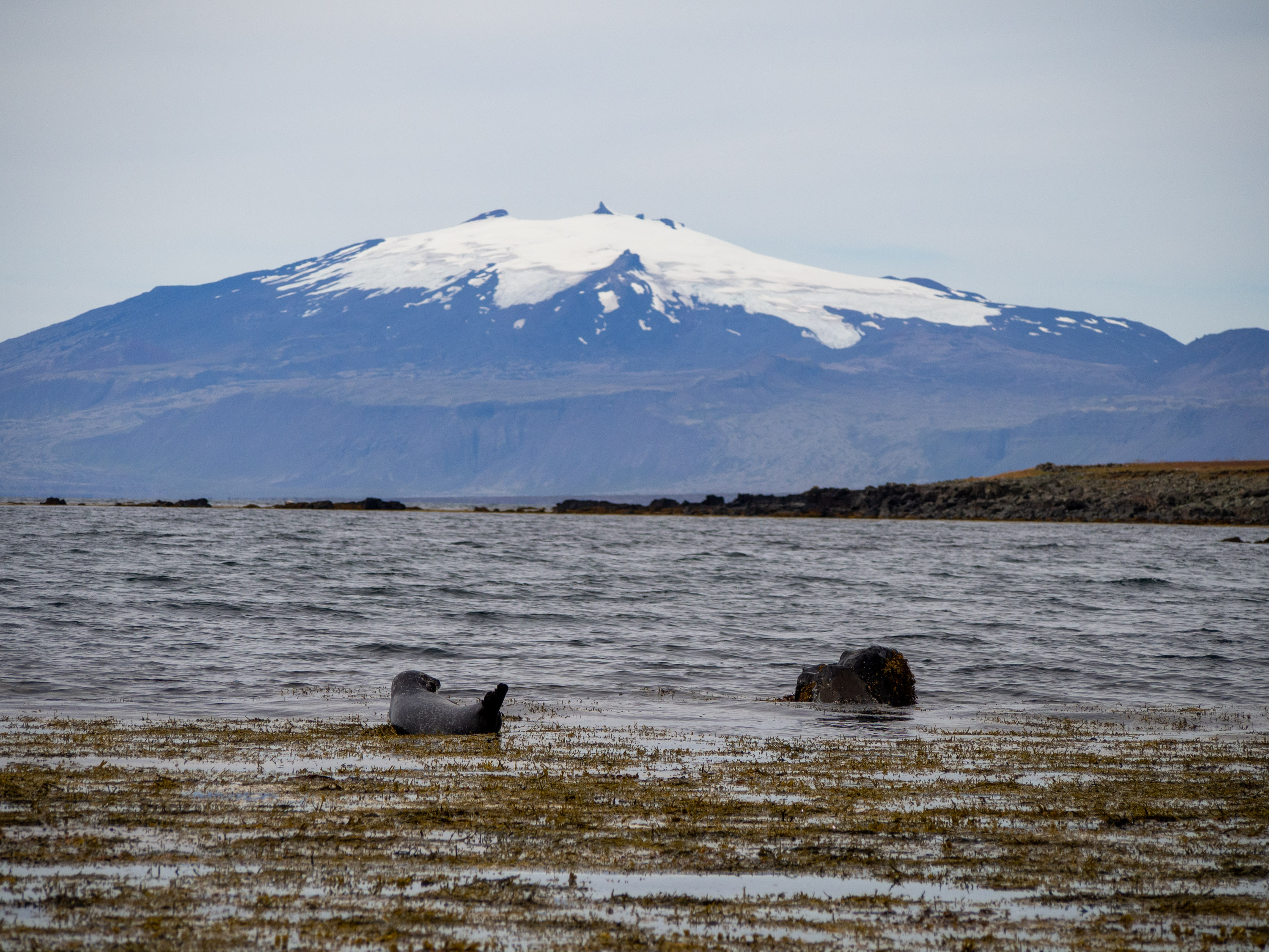 La péninsule de Snæfellsnes au Nord de la capitale Reykjavik est un condensé des merveilles de l’Islande, c’est comme cela que la région se promeut. Effectivement, on retrouve la plupart des paysages et expériences vécues par ailleurs lors de notre périple, que ce soit les F road, les volcans, les cascades, les fjords, les belles églises mais aussi on arrive enfin à trouver une colonie de phoques qui se laisse montrer sur la plage de Ytri Tunga, qui est déjà une raison suffisante pour faire la route jusqu’ici.