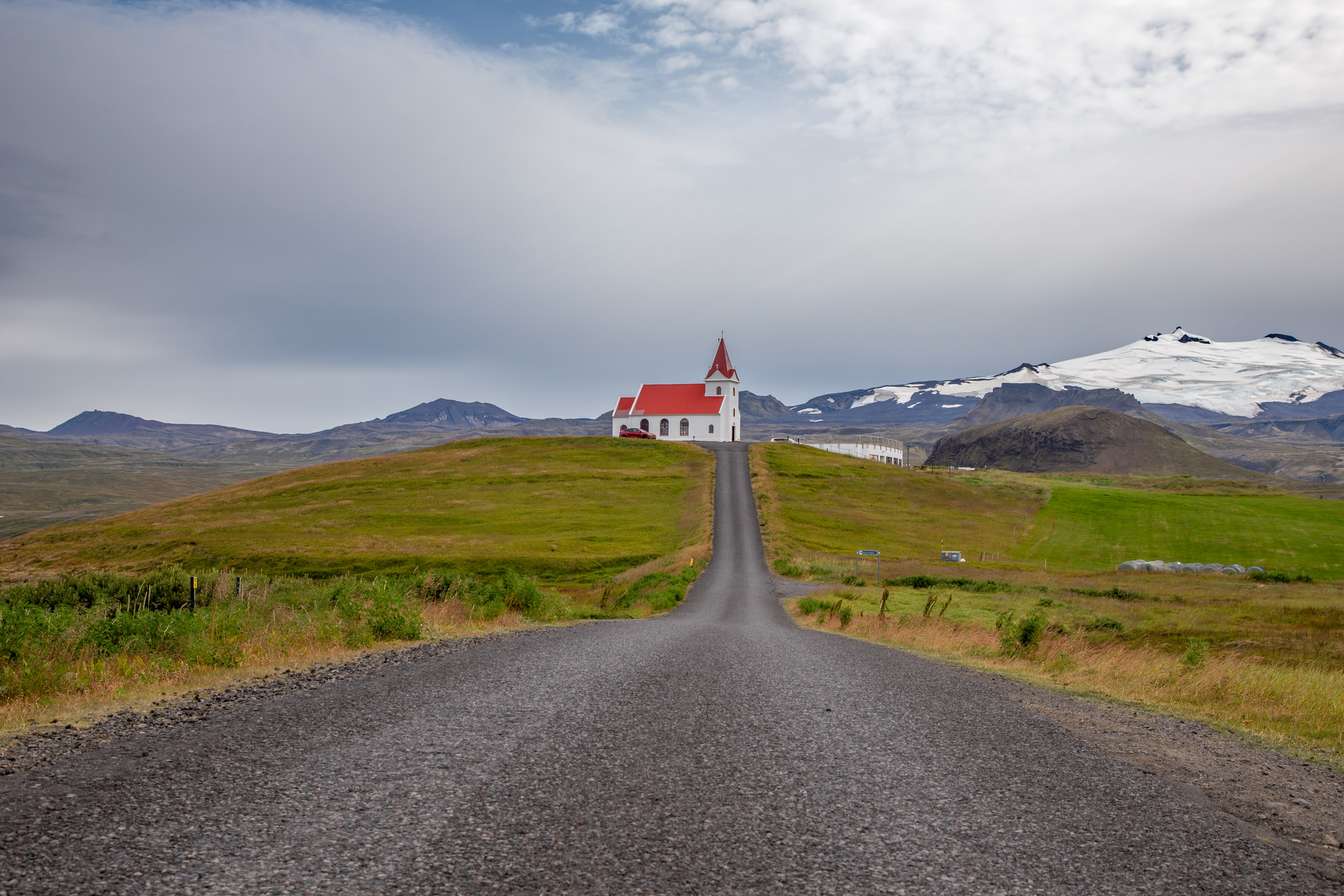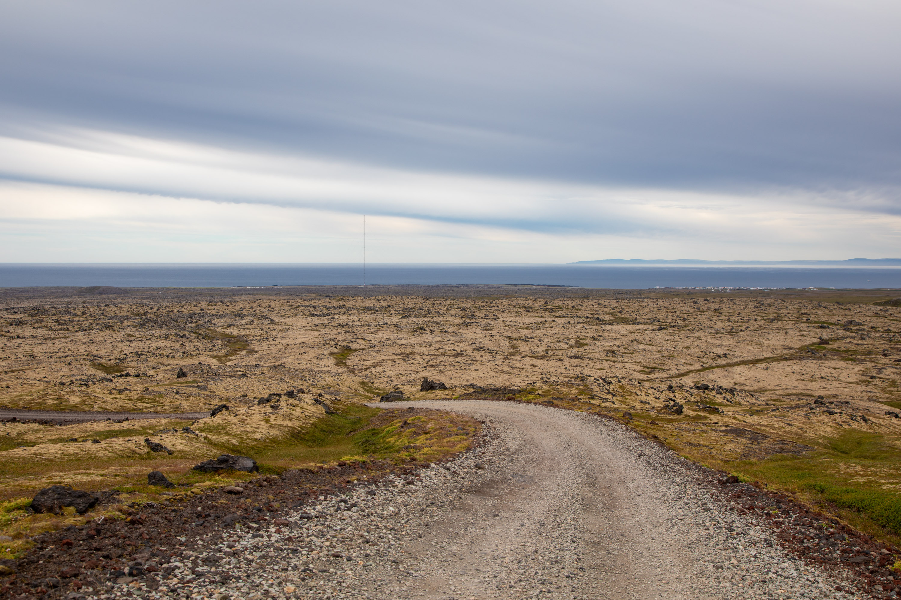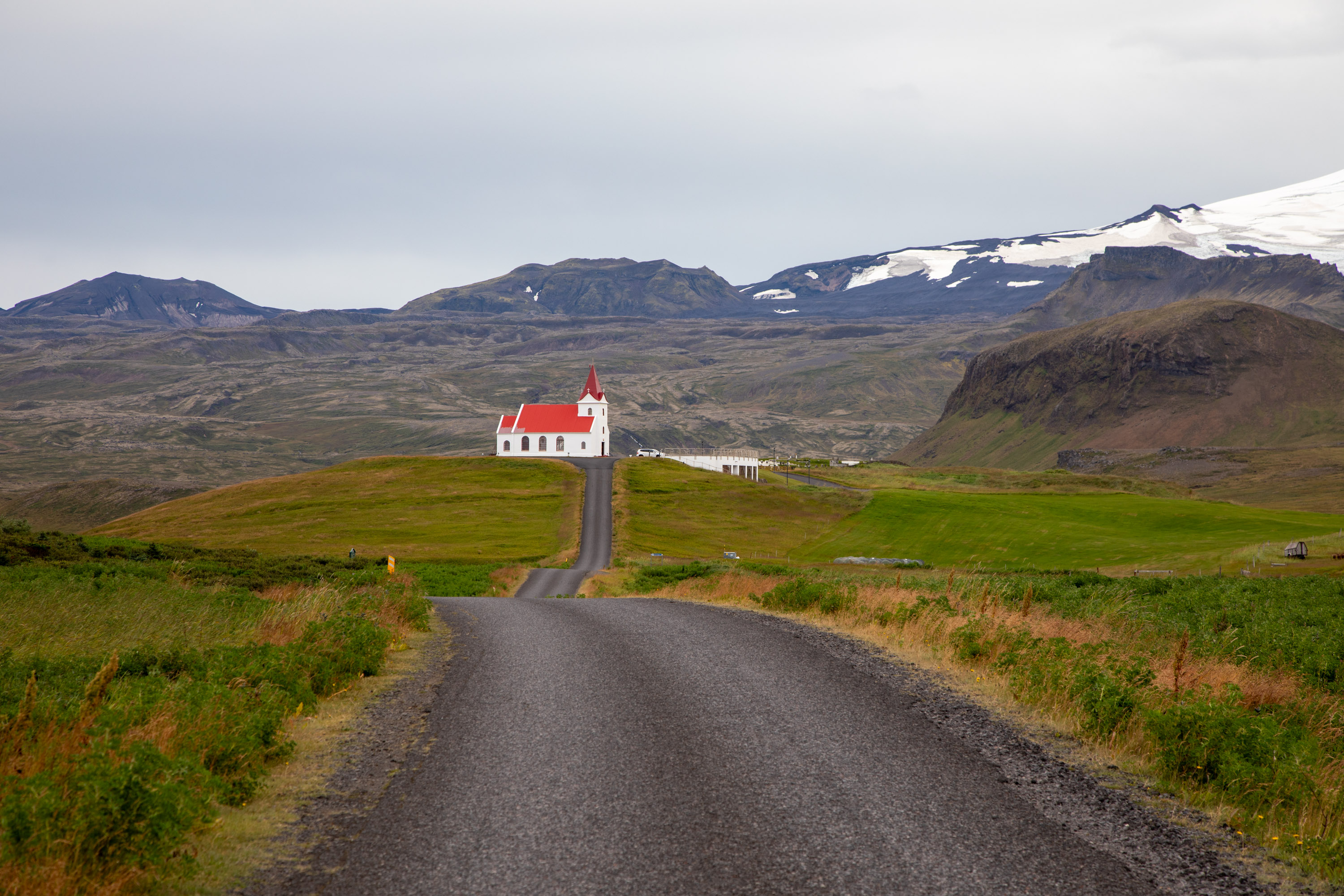 On redouble de prudence pour la partie finale de la descente et je suis soulagé de retrouver le bitume cette fois. Nous voulions aller au village de Hellissandur pour voir sa célèbre chapelle qui est un cadre parfait pour des photos.