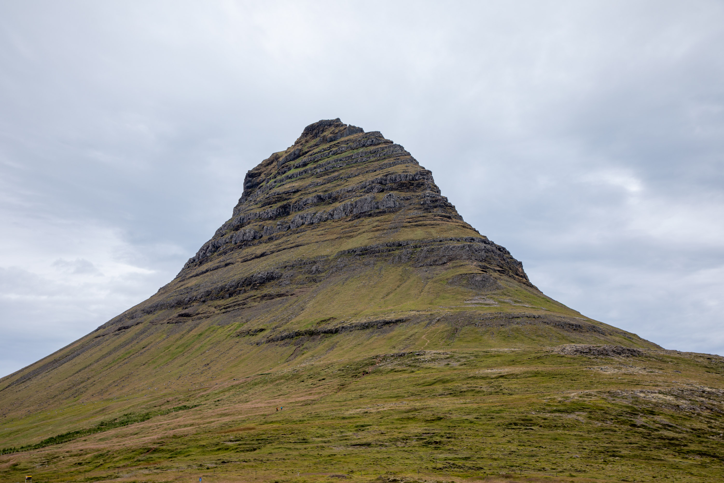 On sera autant déçu que sa célébrité est grande et que le coin est populaire. On s’attendait à une grandiose chute d’eau, mais c’est en fait une petite cascade. Le parking est rempli de bus touristiques et le bord de la rivière est fermé par un cordon. On est donc tous collés les uns sur les autres sur un tout petit espace. Quelle étrange phénomène dans ce pays réputé pour sa faible densité de population. C’est à Kirkjufellsfoss que l’on ressentira les effets négatifs de cette foule dont nous acceptons de faire partie. Ici, ça fait vraiment un peu trop quand même. Peut être faut il venir à un autre horaire pour être plus calme, c’est la fin d’après midi et probablement que c’est le moment où les tour opérateurs planifient la visite de la cascade. Il faut quand même attester que le paysage est très beau, cette pyramide est très esthétique et c’est un très beau symbole de l’Islande.