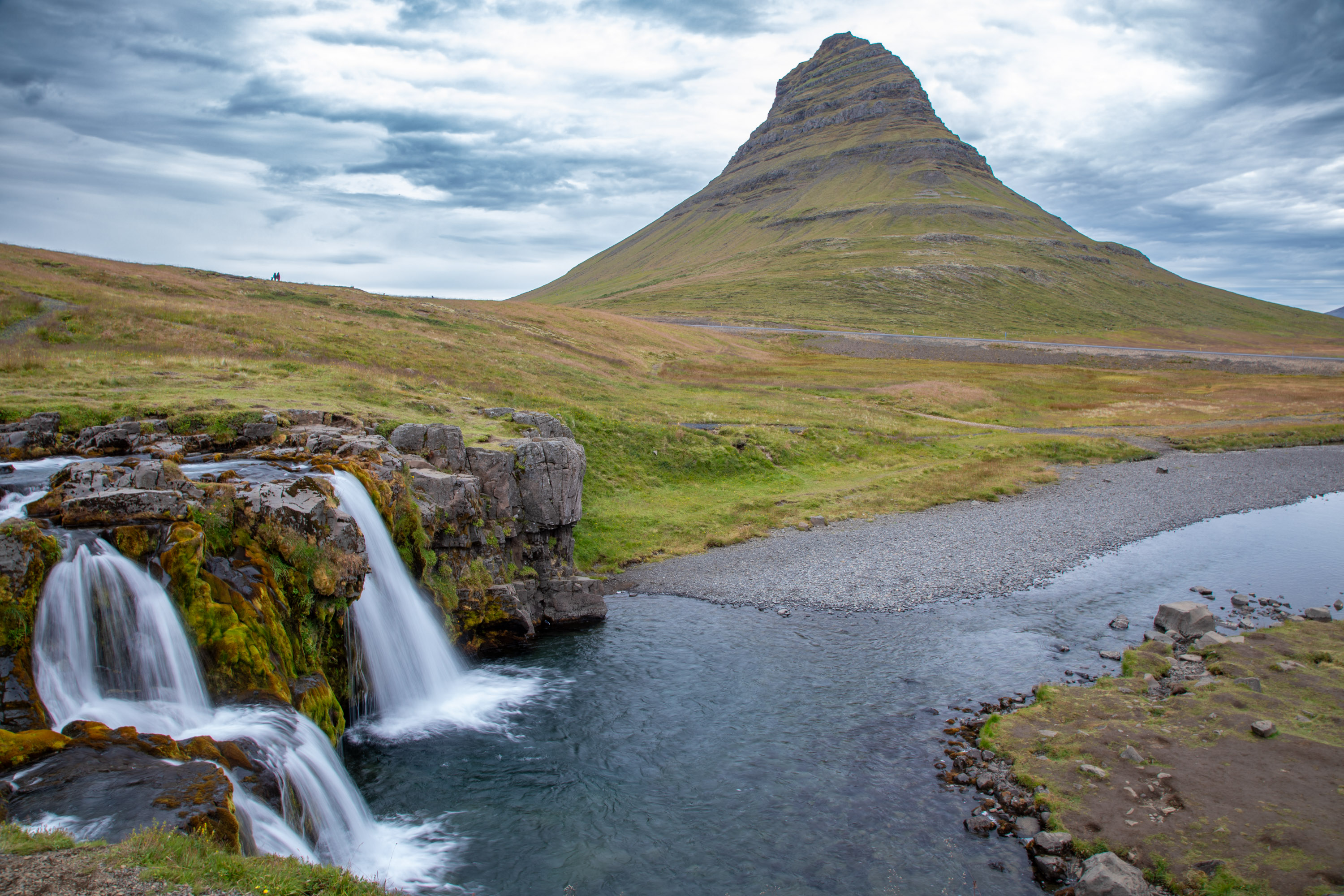 Notre dernière étape de la journée est la cascade de Kirkjufellsfoss. C’est probablement la cascade la plus connue d’Islande, non par pour ses caractéristiques propres mais plutôt pour la montagne en arrière plan qui ressemble à une pyramide.