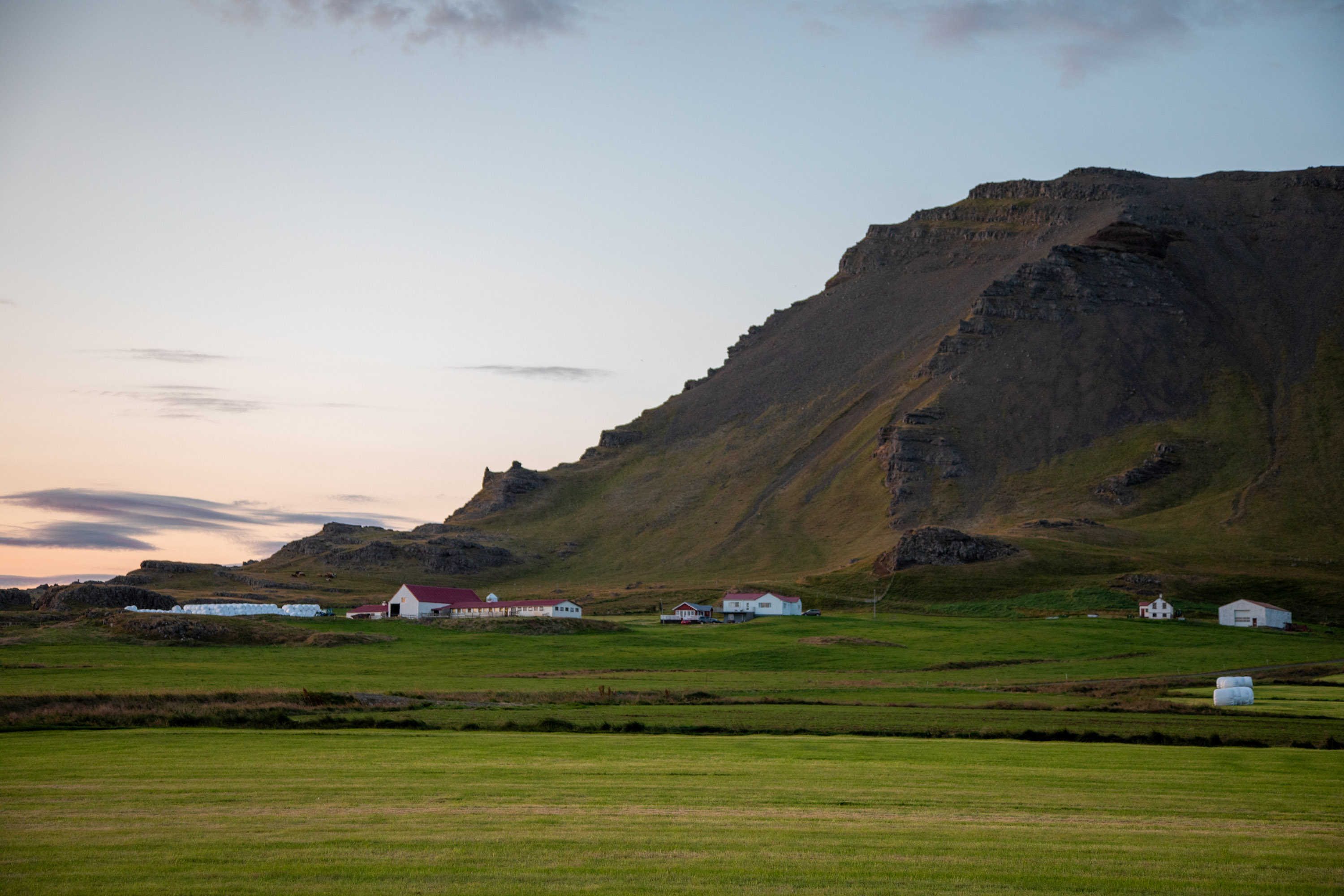On a réservé comme à notre habitude dans ce voyage en toute dernière minute. Le prix est imbattable, 90e pour une chambre dans une Mason d’hôte que l’on partage avec une famille espagnole. C’est surement un désistement de dernière minute car le propriétaire nous confirme que c’est impossible qu’il reste de la place chez lui en été comme cela. Son jardin est très joli et la chambre donne sur les montagnes. Ce sera un de nos hébergements préférés de notre voyage en Islande.