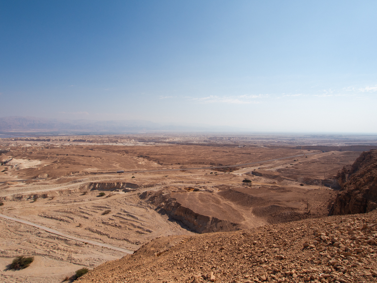 On préfère donc faire une halte à un point de vue qui domine la vallée de la Mer Morte, et donne à voir les Badlands, des formations géologiques étonnantes.
