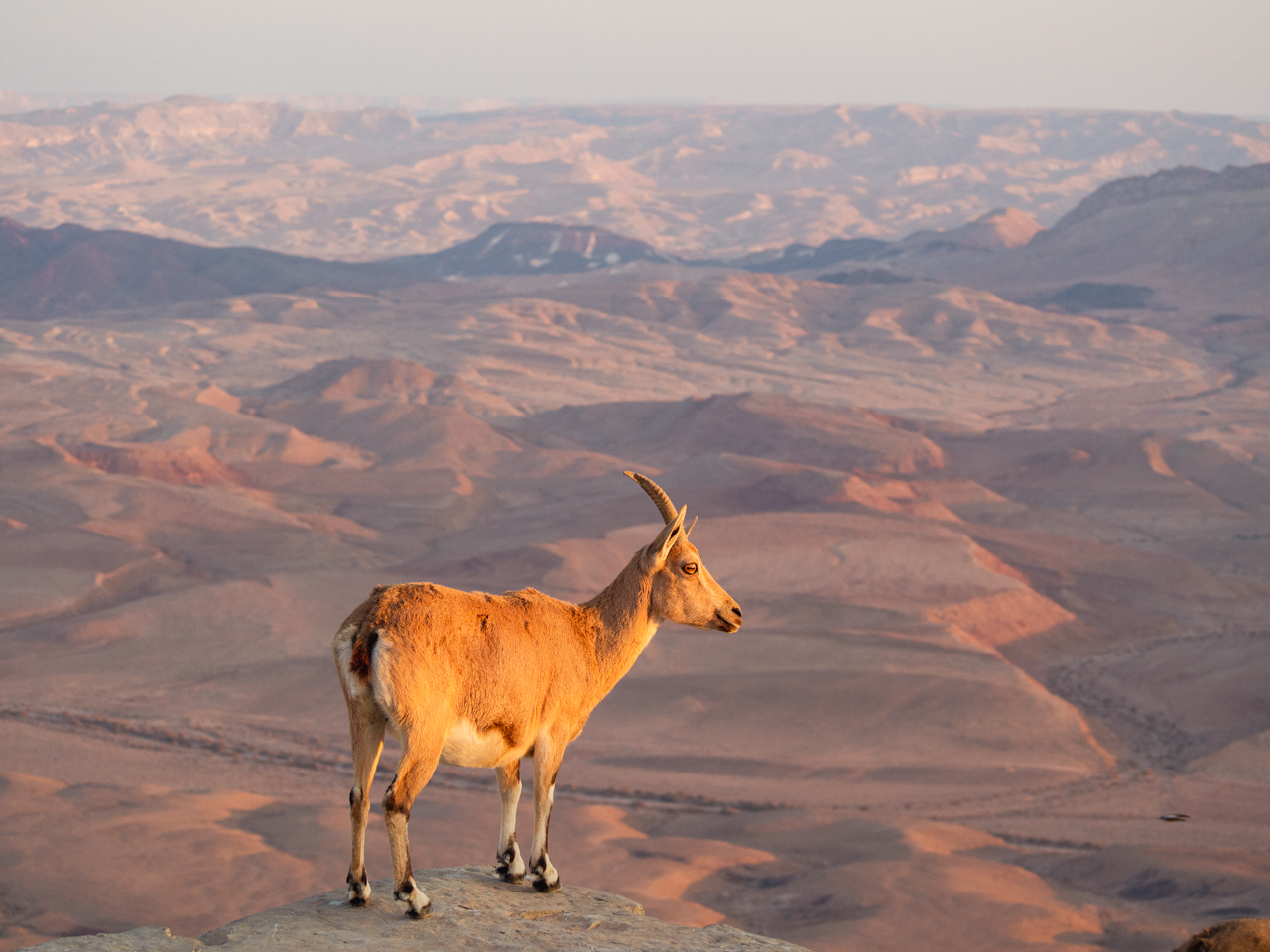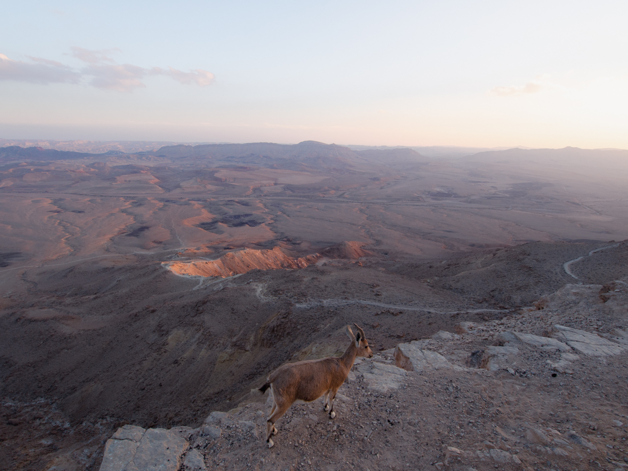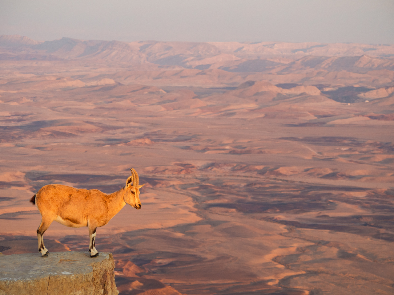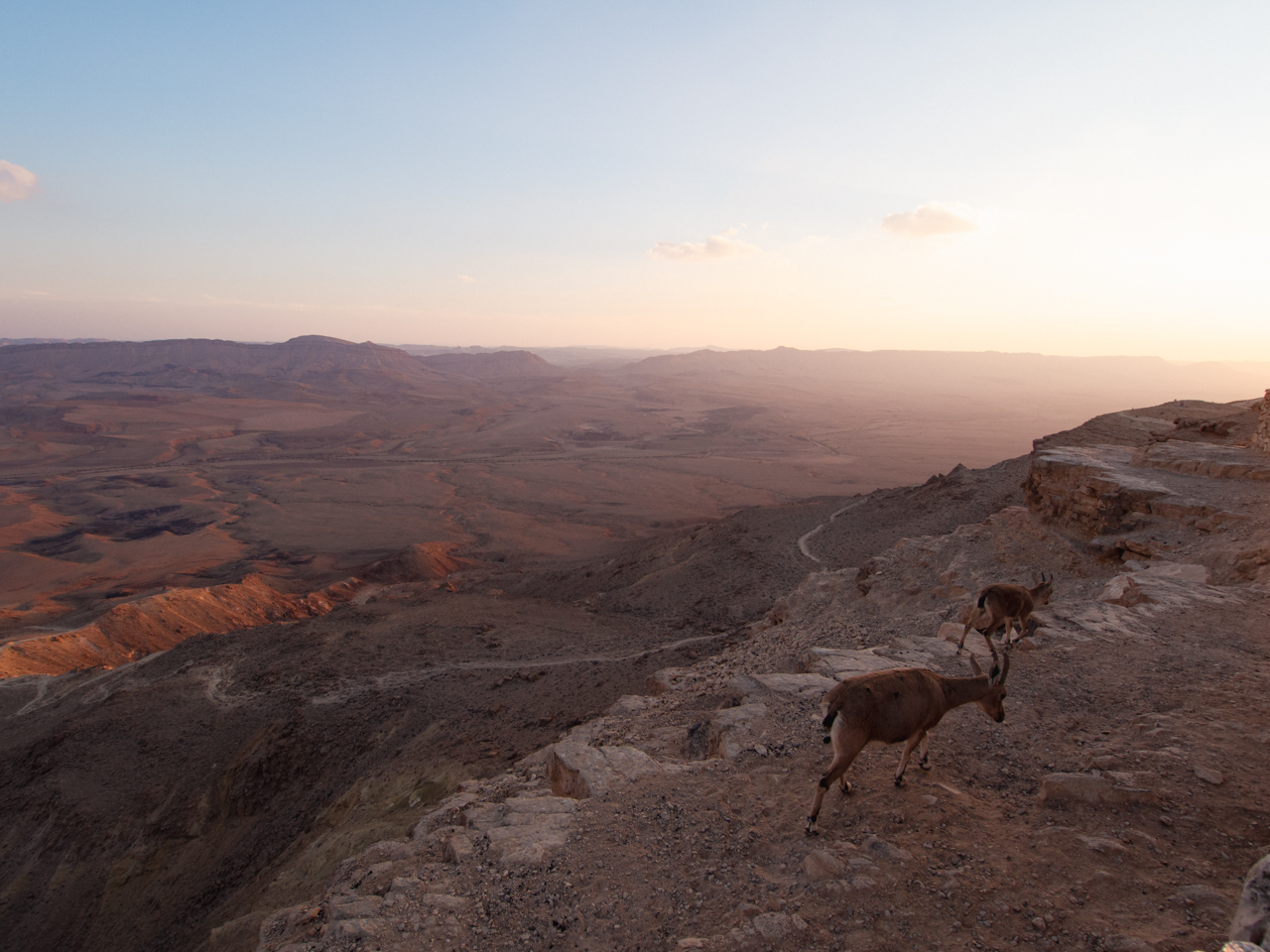 En partant de la Mer Morte, on se dirige vers la partie la plus méridionale du pays, pas loin de la frontière égyptienne pour découvrir le cratère de Mitpze Ramon. Le Mitpze Ramon est un phénomène d’érosion gigantesque, une curiosité géologique aux couleurs ocres, où vit pourtant une faune riche que l’on aura la chance de voir de nos propres yeux. Nous traversons alors le Sud Israélien désertique avant d'arriver à notre dernière étape de notre séjour, une conclusion en forme d'apothéose, avec ce paysage minéral étonnant qui nous fait penser à la surface de Mars plutôt qu'à notre Planète Bleue.