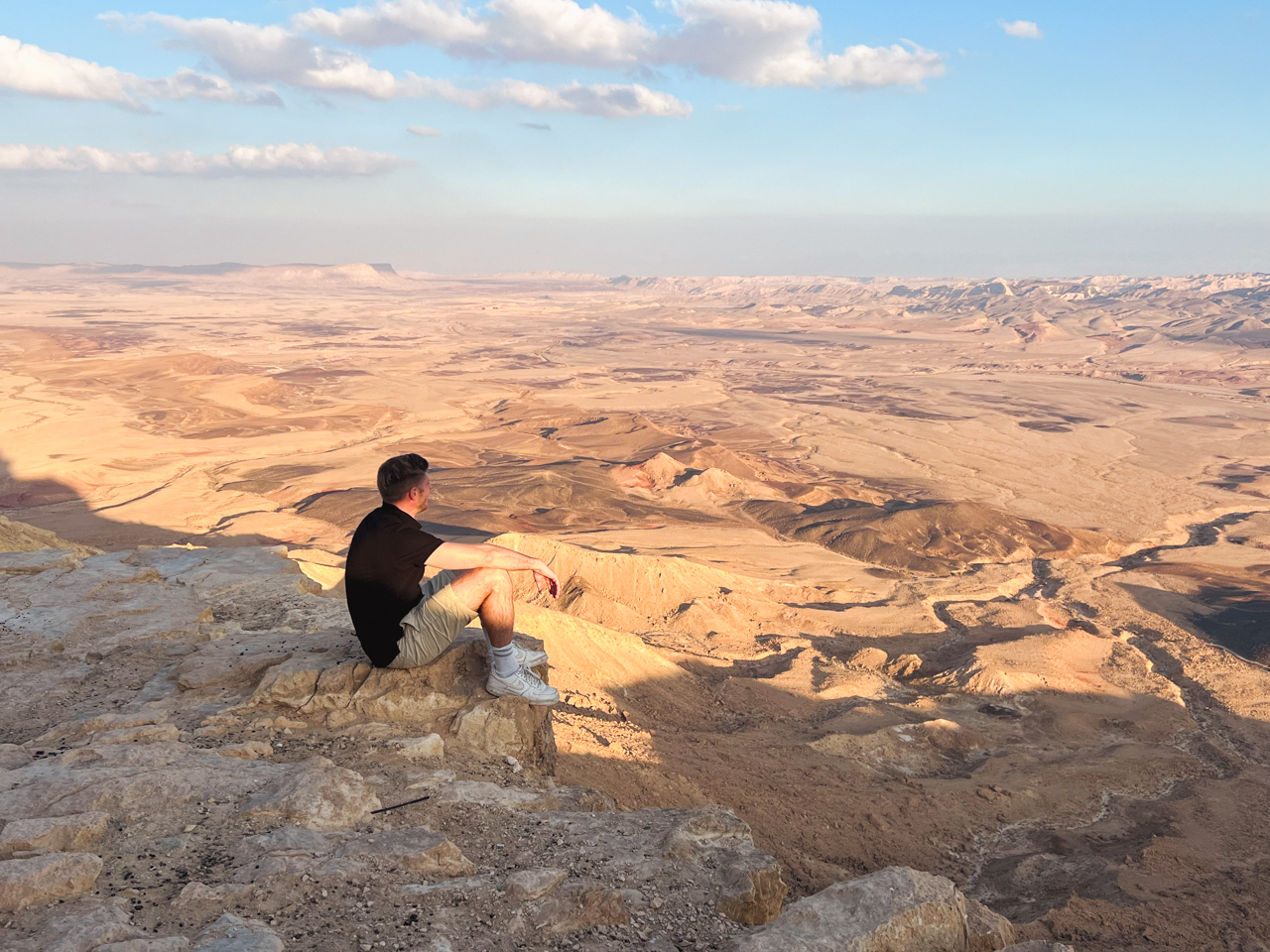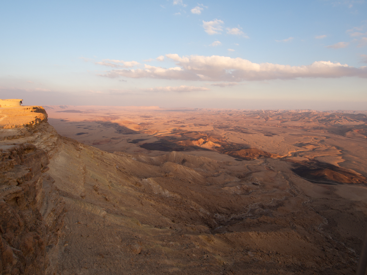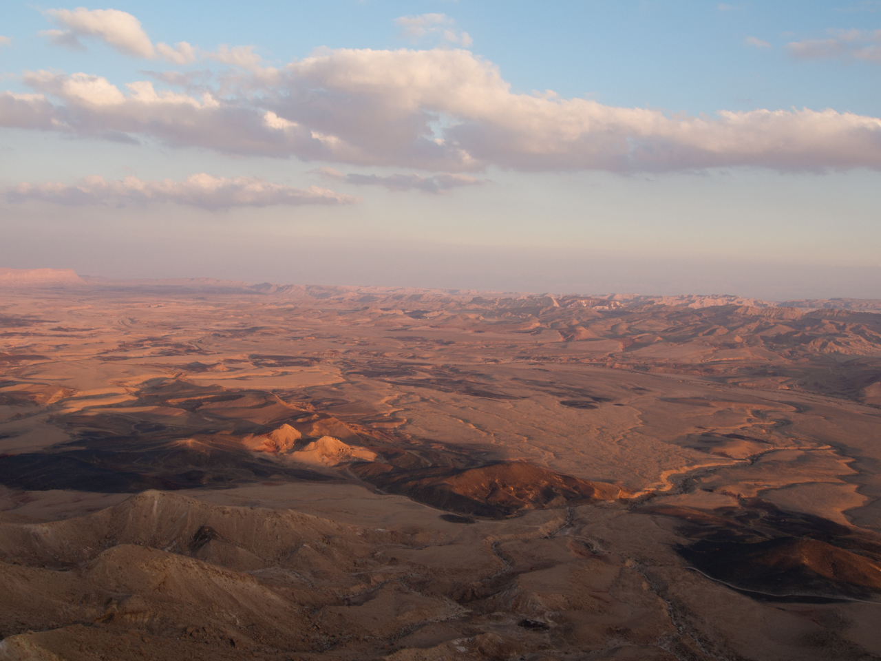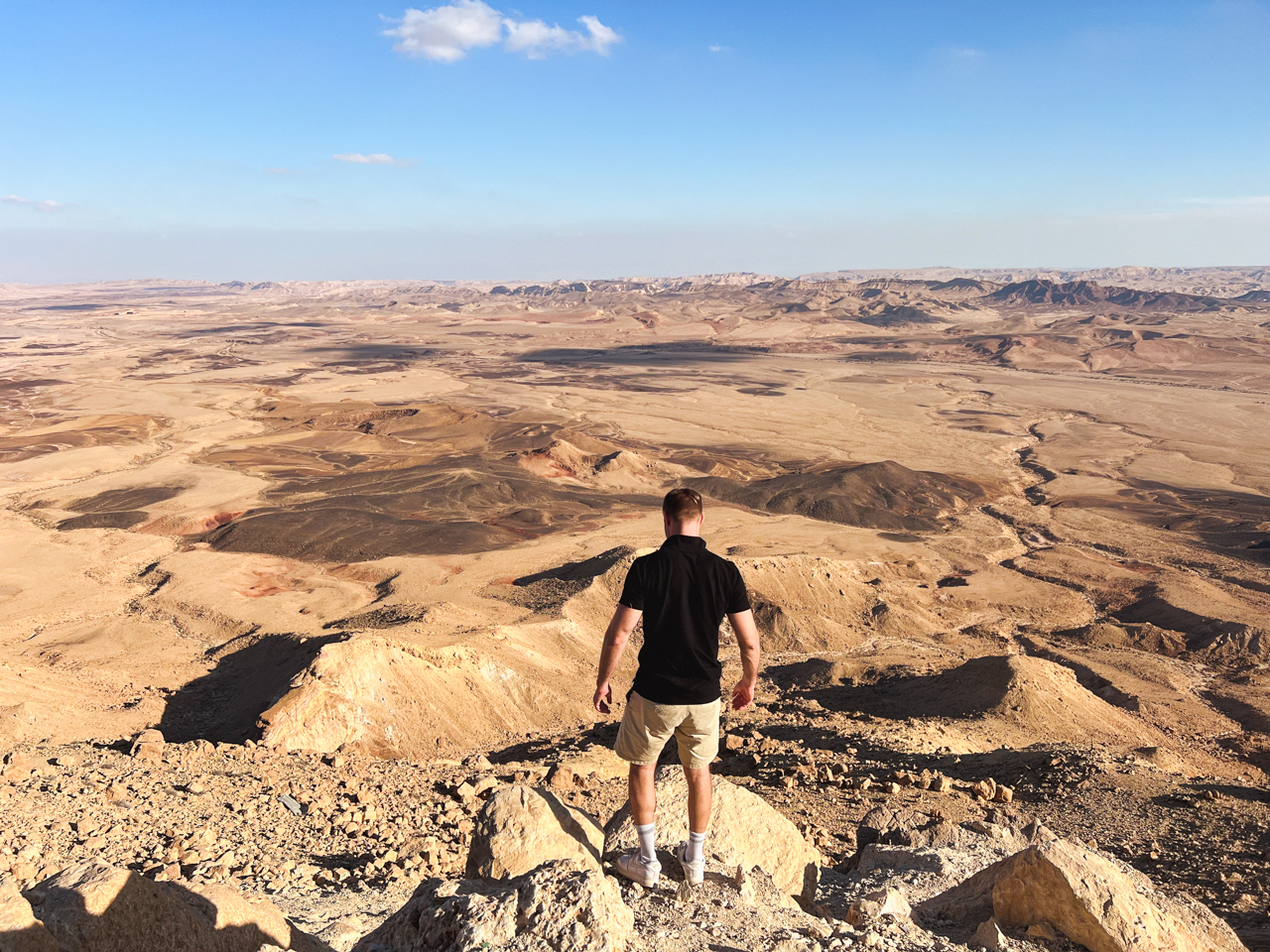En partant de la Mer Morte, on se dirige vers la partie la plus méridionale du pays, pas loin de la frontière égyptienne pour découvrir le cratère de Mitpze Ramon. Le Mitpze Ramon est un phénomène d’érosion gigantesque, une curiosité géologique aux couleurs ocres, où vit pourtant une faune riche que l’on aura la chance de voir de nos propres yeux. Nous traversons alors le Sud Israélien désertique avant d'arriver à notre dernière étape de notre séjour, une conclusion en forme d'apothéose, avec ce paysage minéral étonnant qui nous fait penser à la surface de Mars plutôt qu'à notre Planète Bleue.