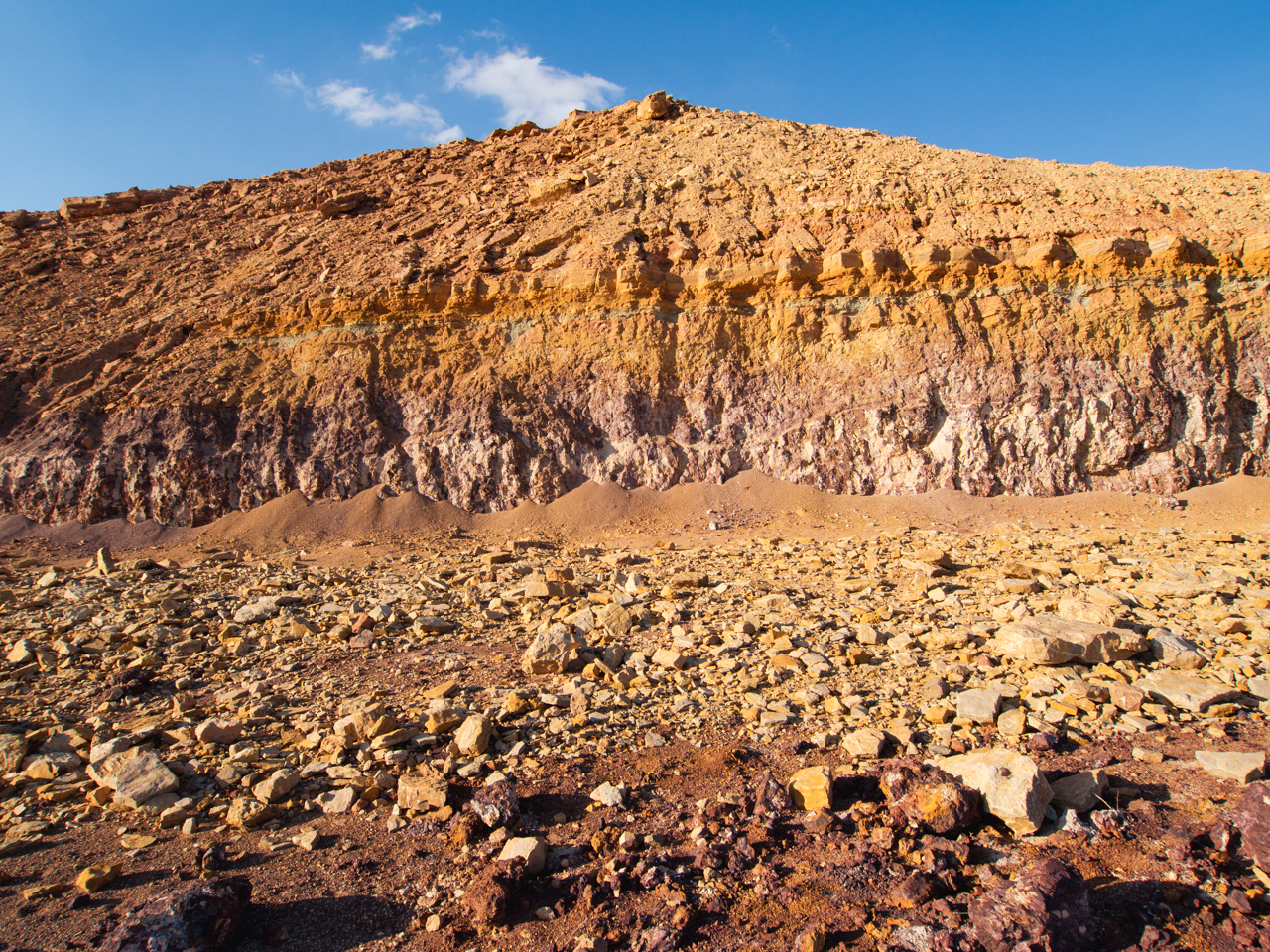 Un peu plus loin on voit une montagne avec différentes couches de couleurs.