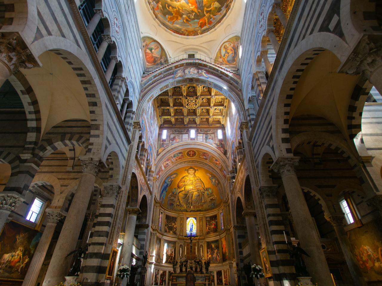 Des peintures sur les dômes donnent une impression que le ciel s’ouvre au-dessus de nos têtes.