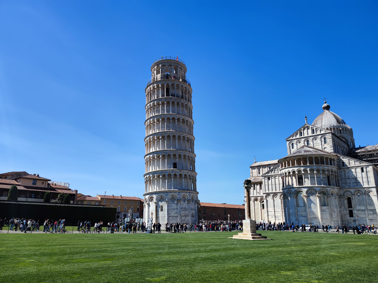 Une courte étape par Pise nous paraissait intéressante dans la prolongation de notre journée aux Cinque Terre. La ville se visite en une demi journée car les monuments sont concentrés au même endroit. La moelleuse pelouse de la Piazza dei Miracoli est parfaite pour une sieste digestive après un bon gros déjeuner italien