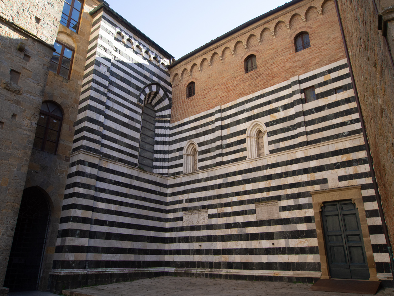 Le Camposanto nous impressionnera beaucoup avec sa grande cour intérieure. Ce bâtiment servait de cimetière pour les édiles de la ville. Le plus étonnant c’est qu’ils ont utilisé des cercueils de l’époque romaine qu’ils ont réutilisé. On trouve de magnifiques fresques qui ont été restaurés après les dégâts de la guerre.