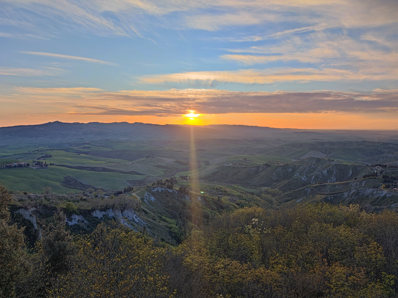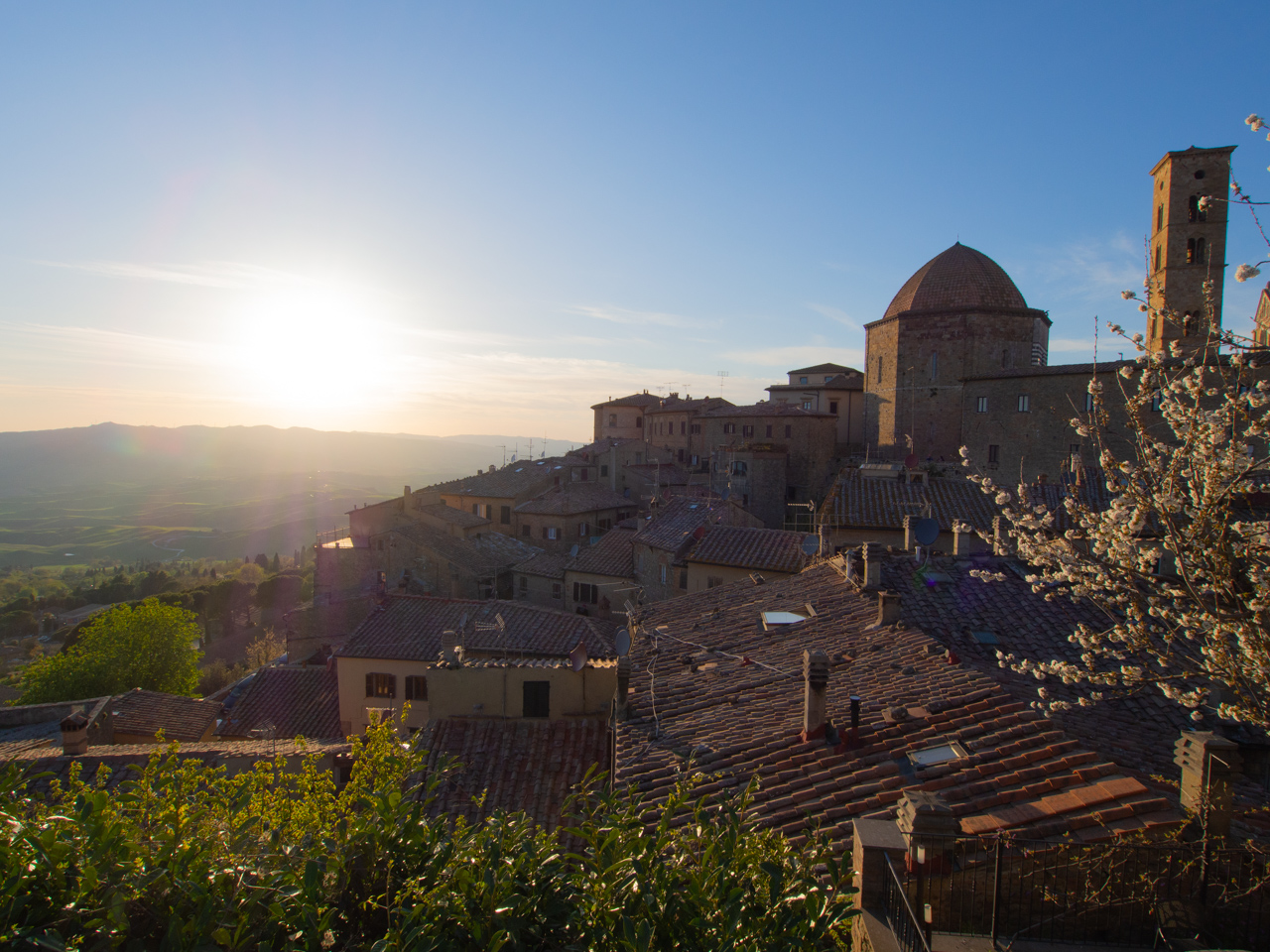 Nous continuons notre visite dans cette région de Toscane en reprenant la voiture et poussant vers le village de Volterra. Nous avons trouvé un bel hôtel dans une petite ville proche de Volterra, et comme le soleil se couche très tard en ce mois d’Avril, on a encore le temps d’y aller et de chercher un beau point de vue pour voir le coucher de soleil.