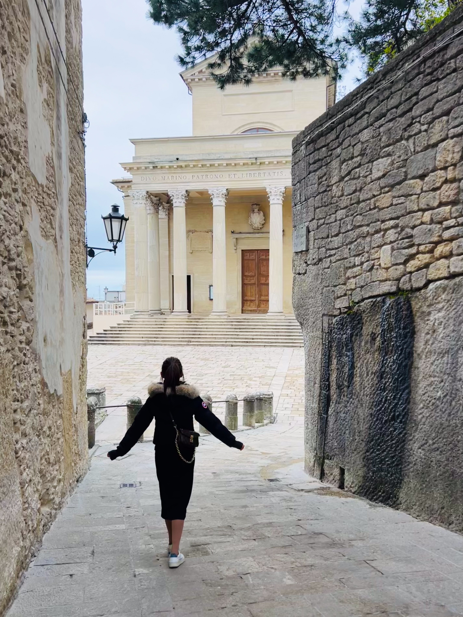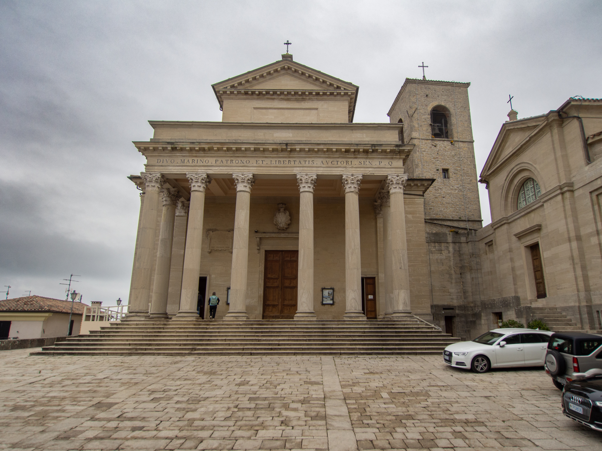 Il y a plusieurs édifices à visiter dans la ville, qui n’est pas bien grande. On arrive à la Basilique du Saint, une église néo-classique où sont exposées les reliques du Saint fondateur de la cité Etat, Saint Marin.
