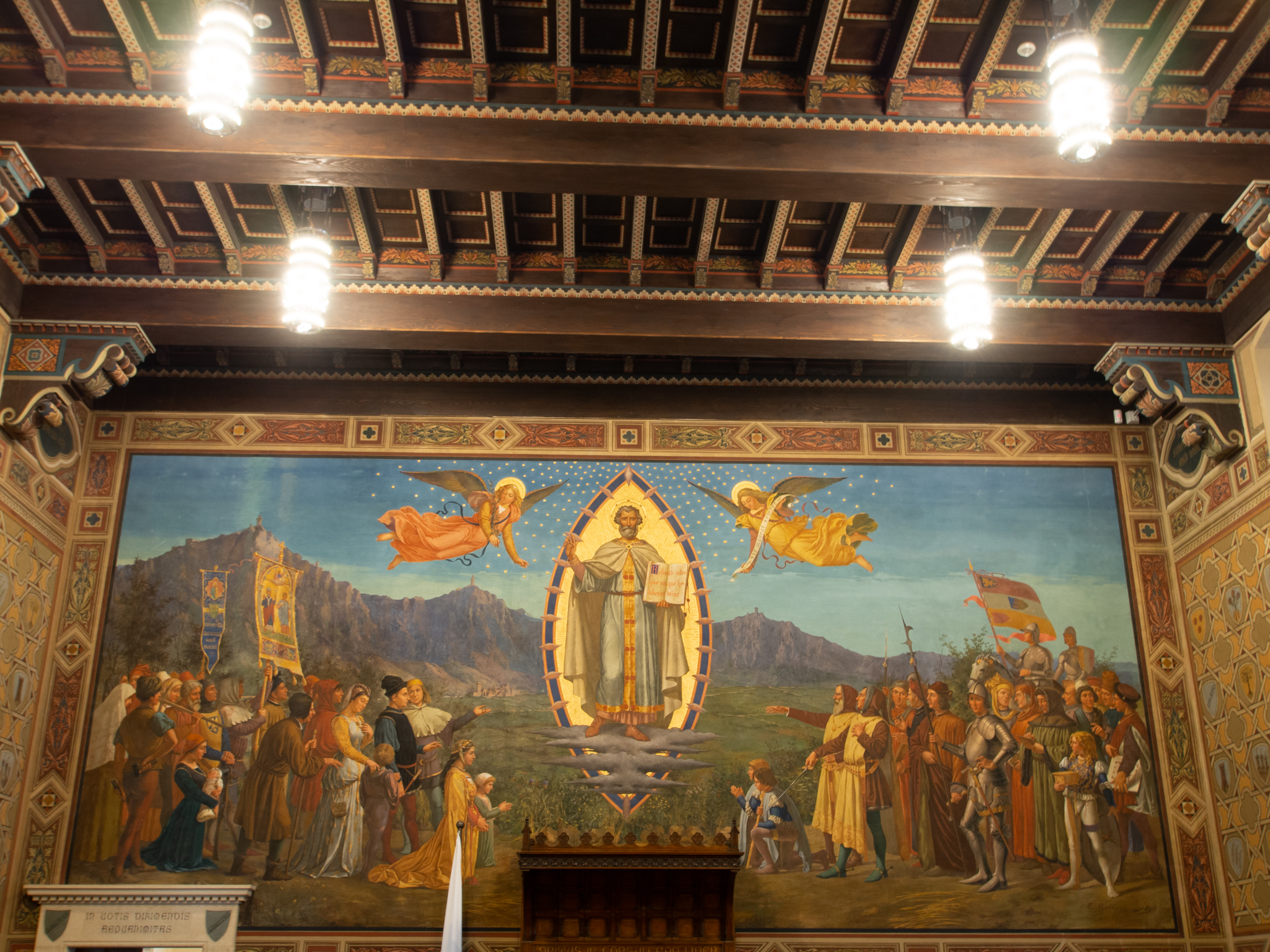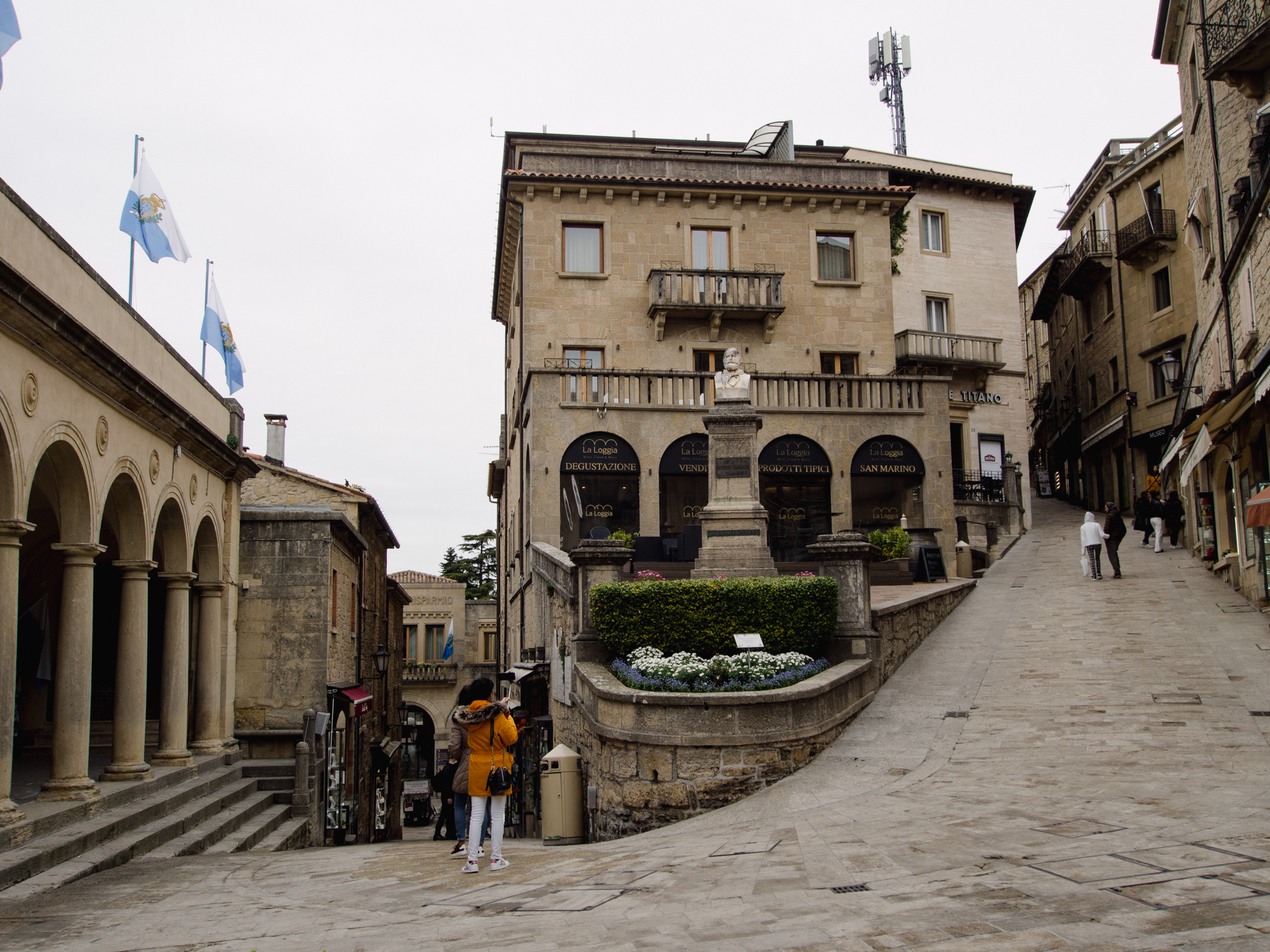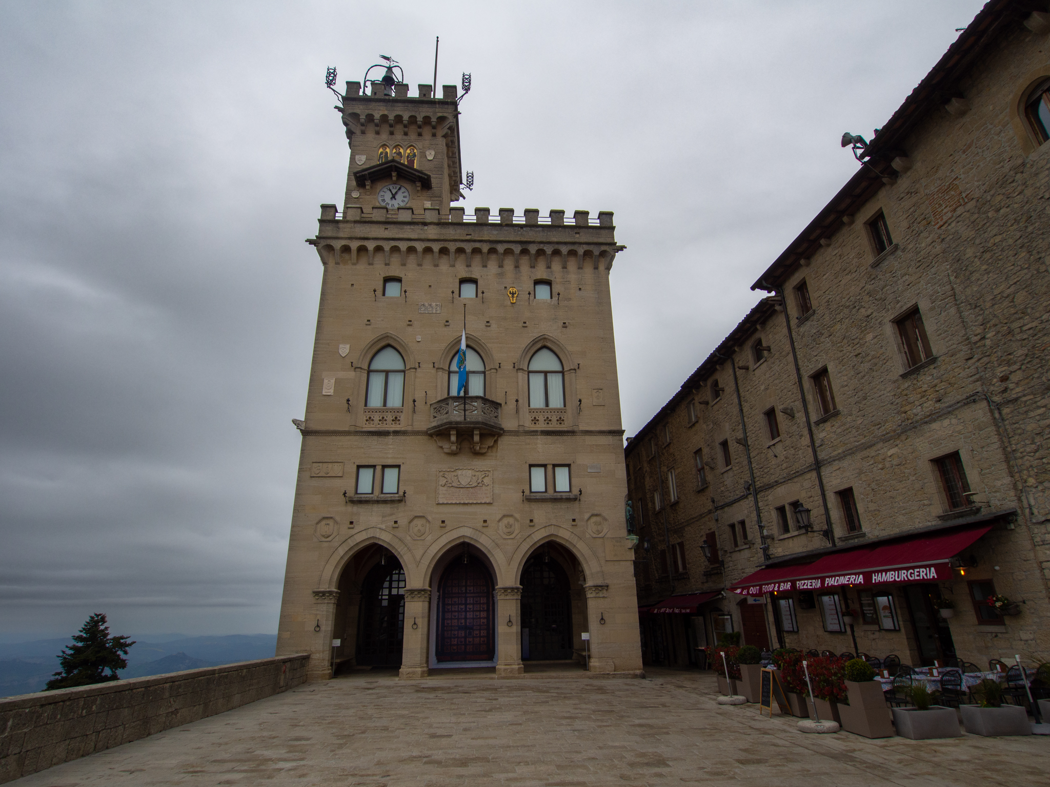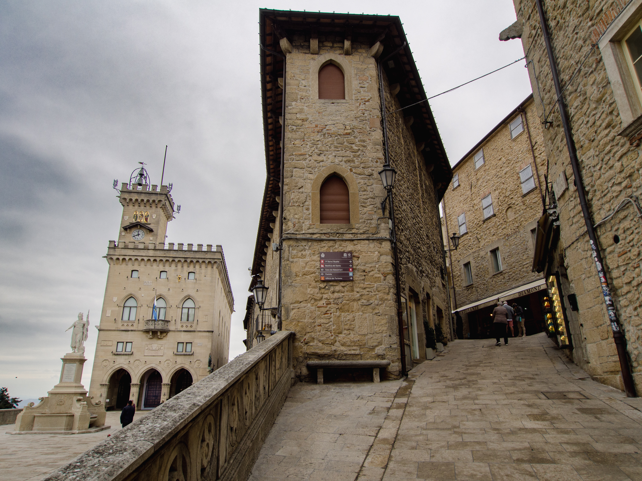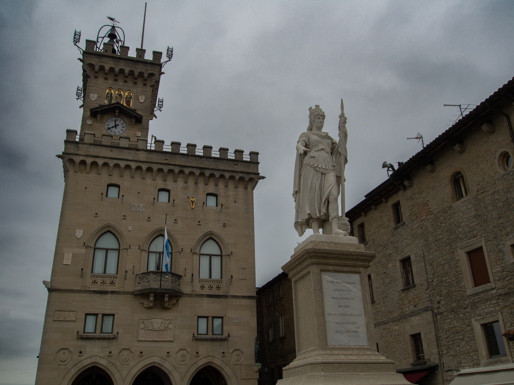 Le charmant bâtiment derrière la statue sur cette place est le Palazzo Pubblico della Repubblica di San Marino, c’est ici que siège le gouvernement et que se retrouve le parlement.