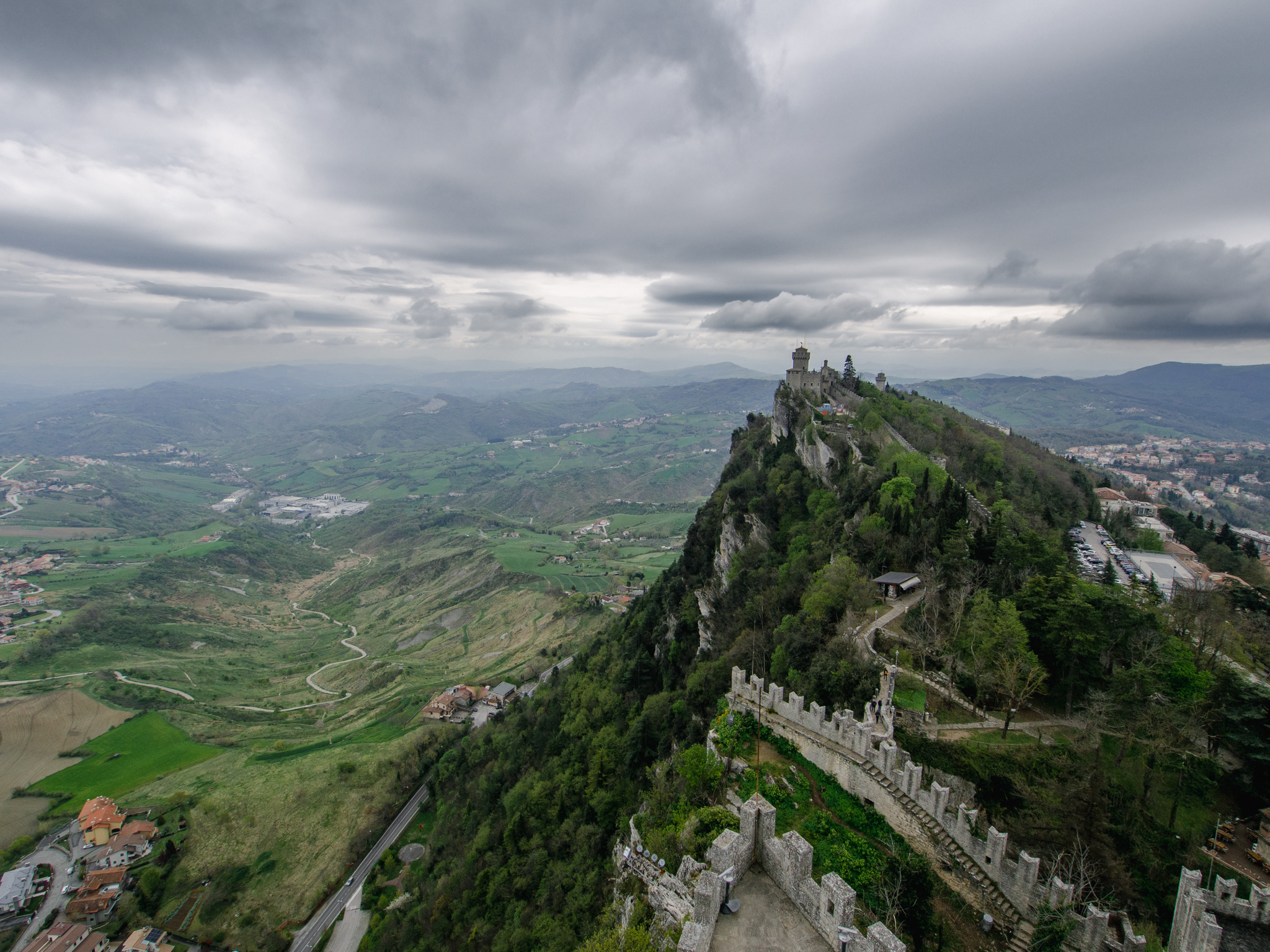 Lors de ce nouveau roadtrip en Italie, nous faisons une étape dans le pays de Saint Marin, un des plus petits pays d’Europe complétement enclavé par son voisin. Perché sur les dernières reliefs des Appenins avant la côte Adriatique, c’est la plus ancienne républiques du monde. Fondé par San Marino en 301, le pays a réussi à rester indépendant, et on peut visiter les vestiges impressionnantes de sec châteaux accrochés aux falaises qui ont permis ce tour de force.