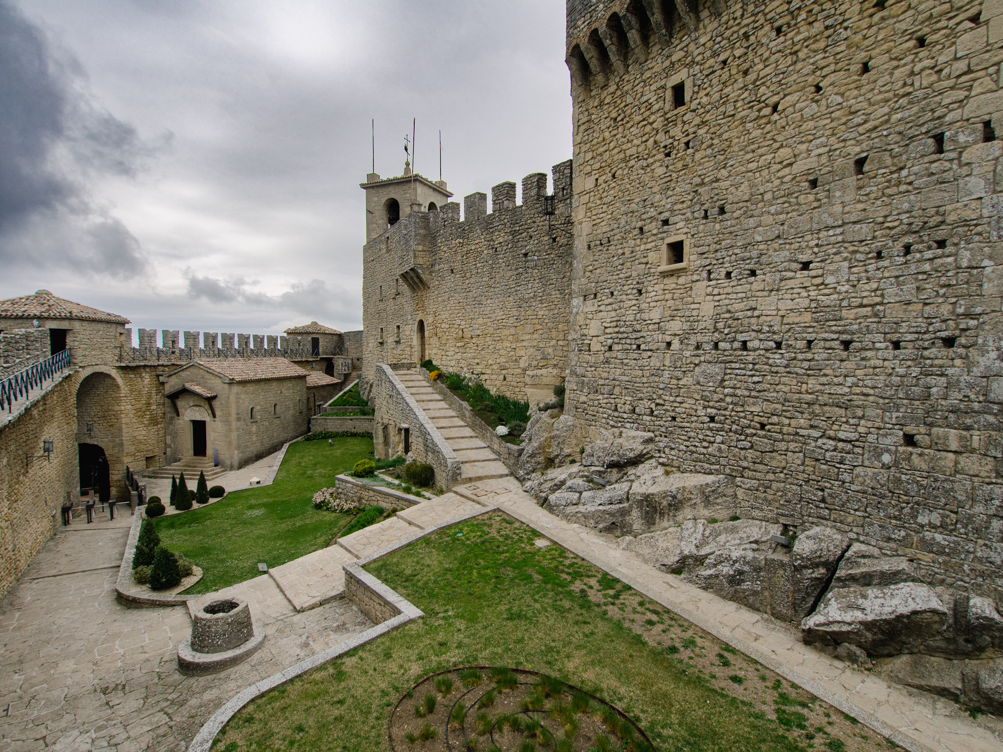 La ville est très bien défendable avec son environnement naturel escarpé, et les faces de la ville plus accessibles sont fermées par des hautes murailles qui sont toujours accessibles. Le pays n’a jamais été soumis dans toute son histoire et cela doit en partie à la position stratégique tout en haut du mont Titano et aux grandes murailles et tours de défenses. La forteresse de Guaita a une position quasi imprenable. D’ailleurs, Napoléon qui était un grand admirateur de l’esprit de défense de Saint Marin et de ses idéaux avait ordonné à ses troupes de ne pas attaquer ce pays. L’esprit de fin tacticien des gouverneurs de Saint Marin qui ont su bien ménager les différentes puissances lors du tumulte qui a suivi la chute de Napoléon a aussi permis la sauvegarde de leur liberté.