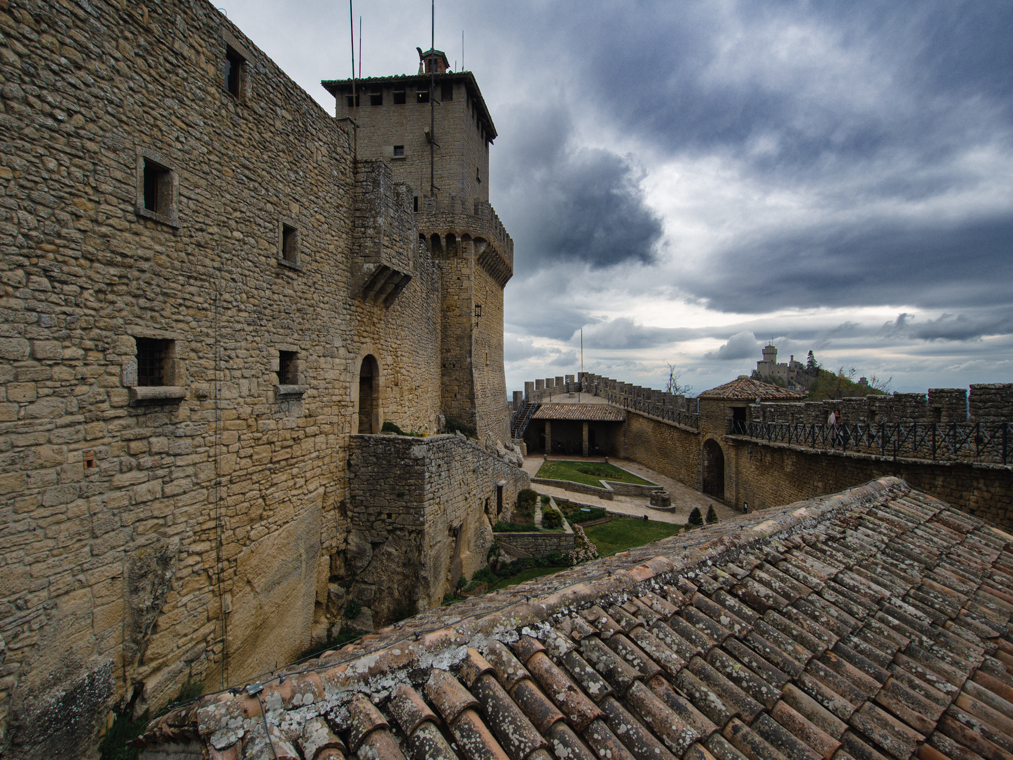 La forteresse de Guaita qui est la principale de Saint Marin est complété par un système défensif de deux autres tours qui suivent le relief du Mont Titano.