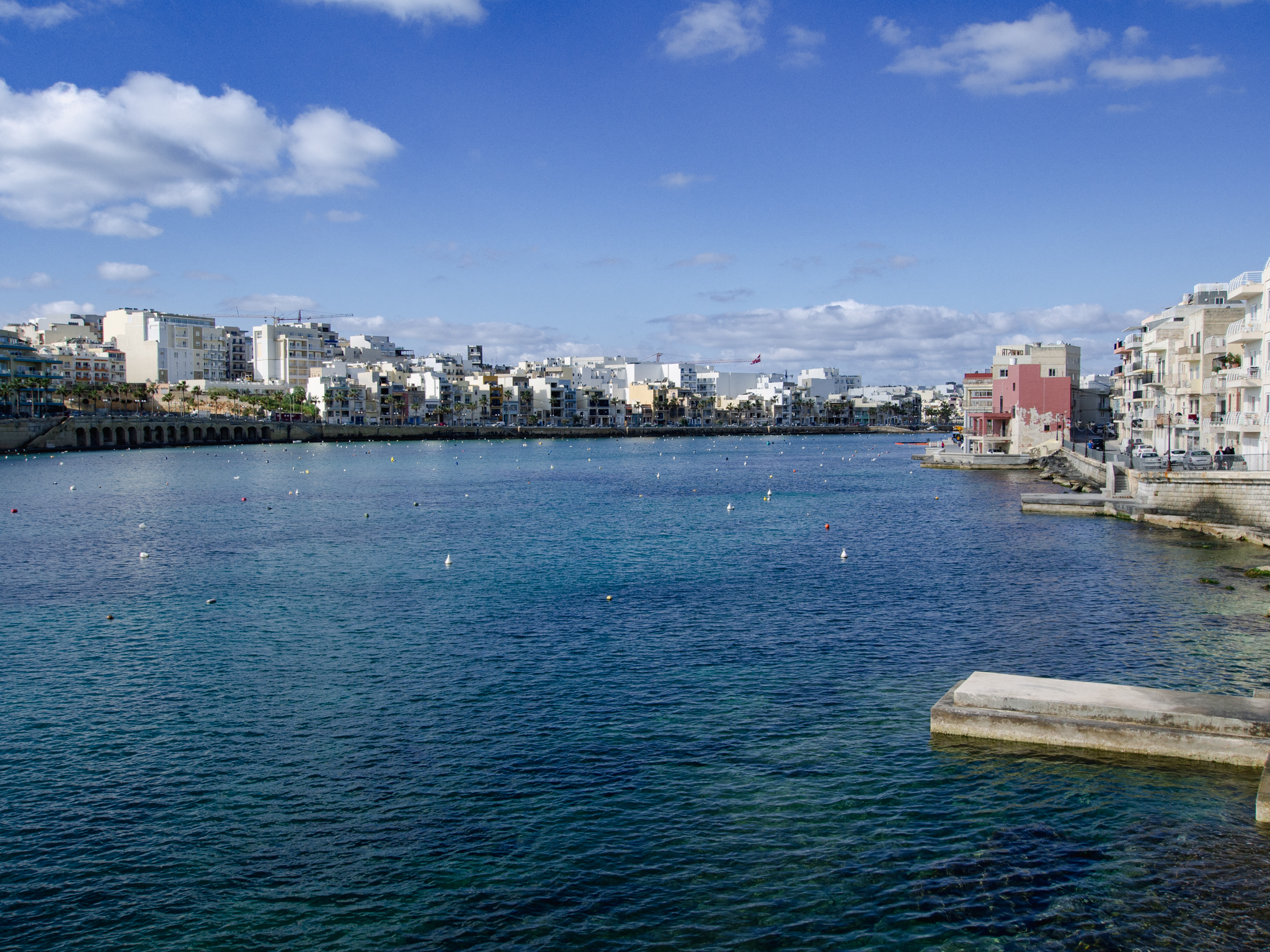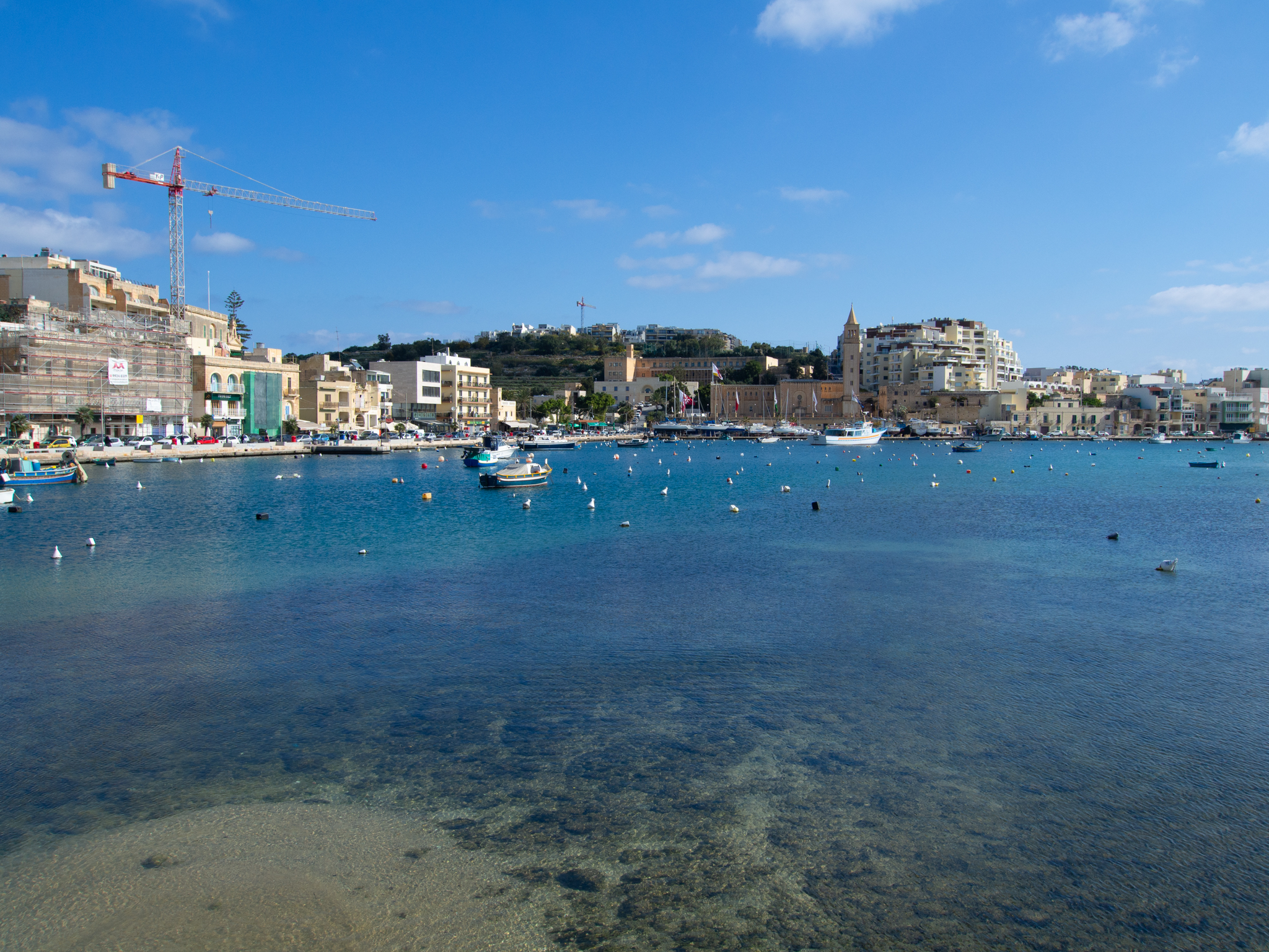 Pour la totalité du séjour à Malte, nous avons loué un appartement dans le village de Marsaskala, On est plutôt bien, le logement se trouve à une rue du port du village, c’est en retrait de la rue principale, mais pas loin de tout. Le seul bémol est de trouver une place le soir dans la rue, pas simple car il n’y en a pas beaucoup, mais finalement on a toujours eu de la chance. En descendant vers la mer au matin, on longe la baie bien construite de part et d’autre.