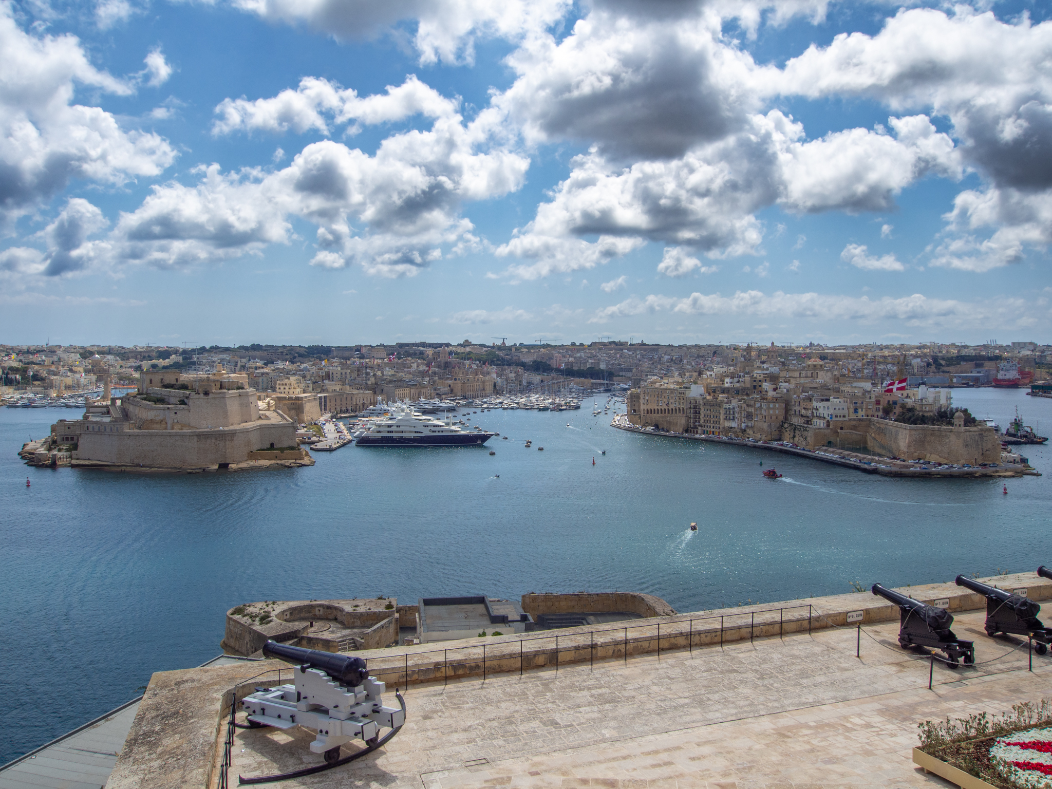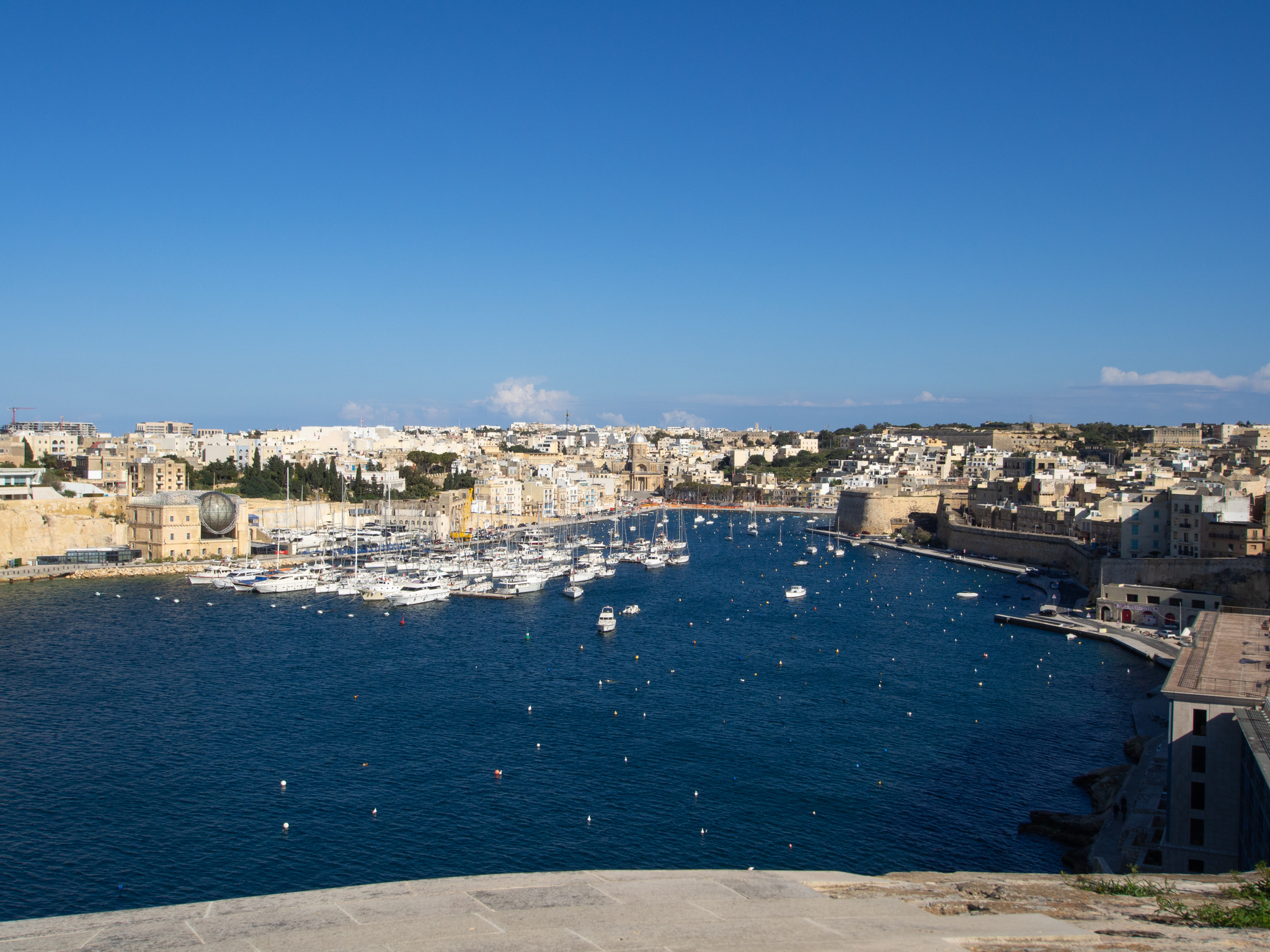 La vue sur les villes de Birgu et Isla est impressionnante pour la densité d’immeubles construits à perte de vue.