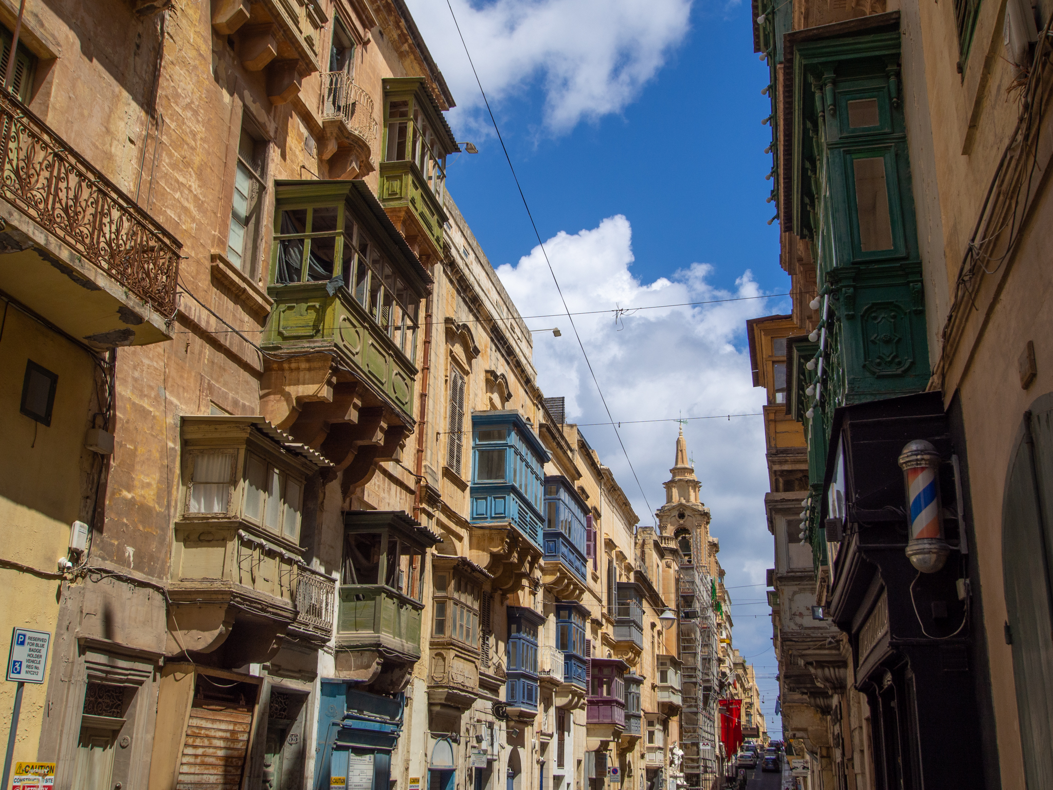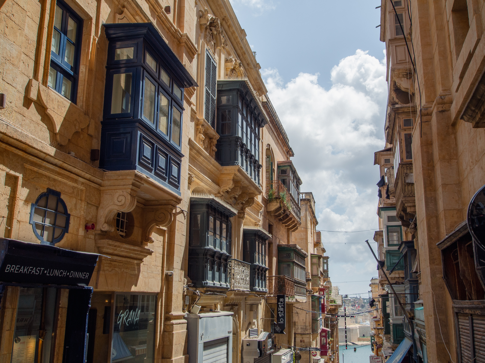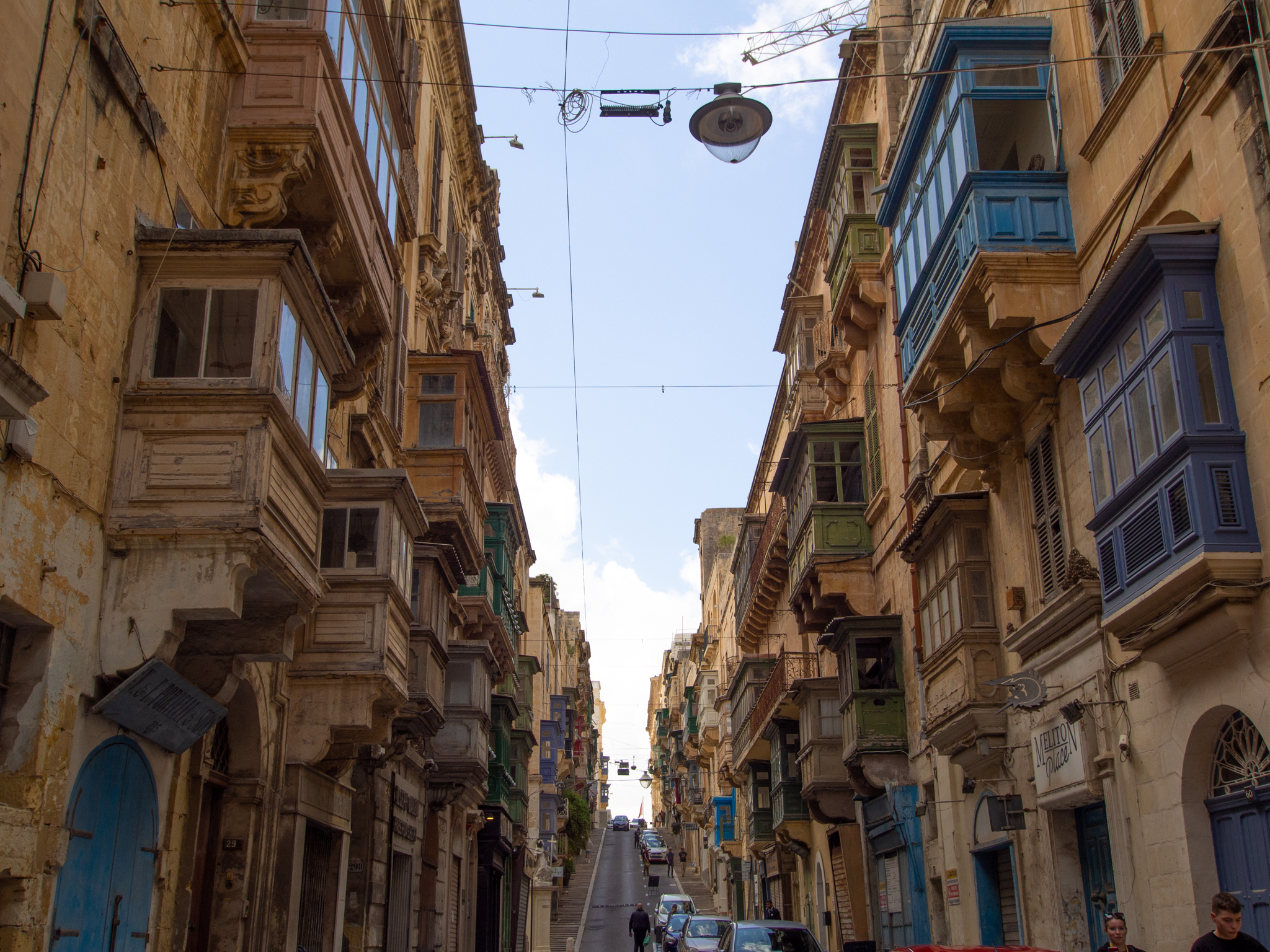 On est frappé par le nombre d’appartements qui ont des balcons couverts, souvent peints avec de belles couleurs. Il y en a un nombre incroyable dans les rues de La Valette.