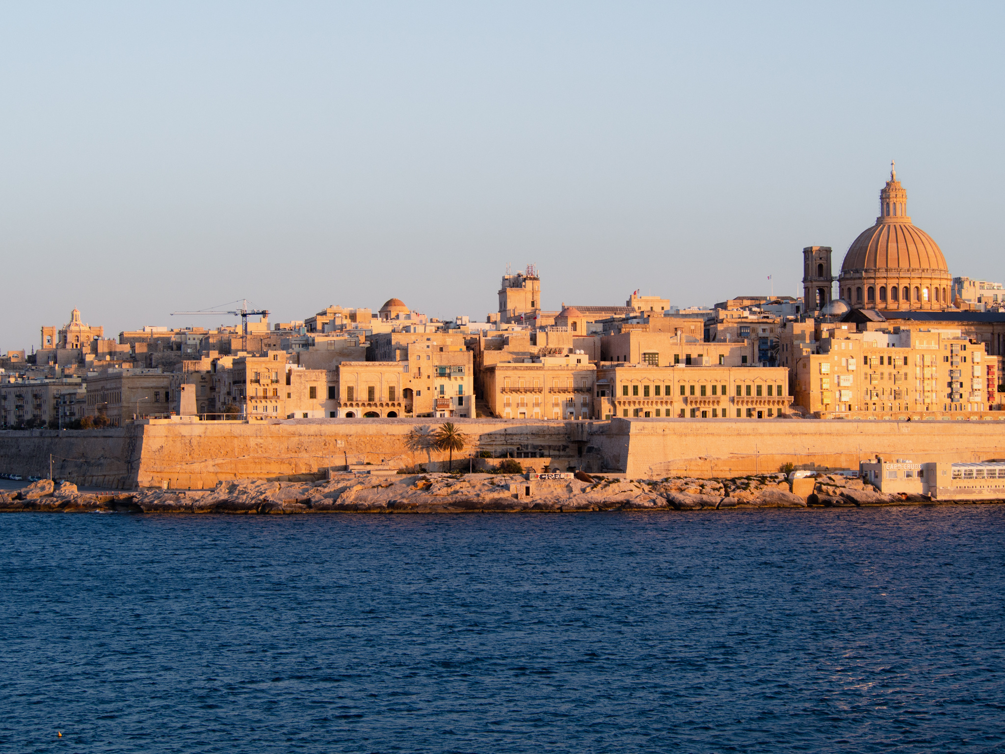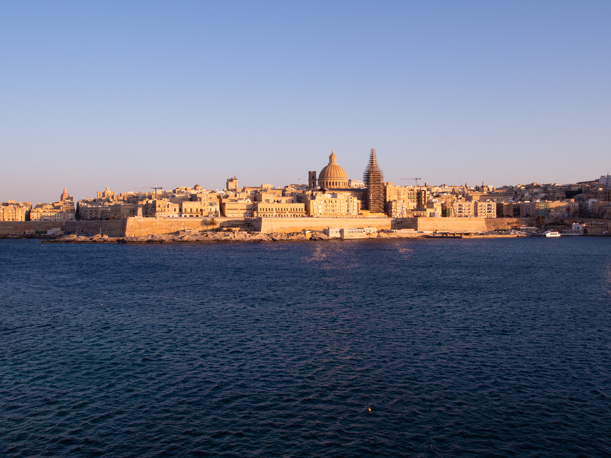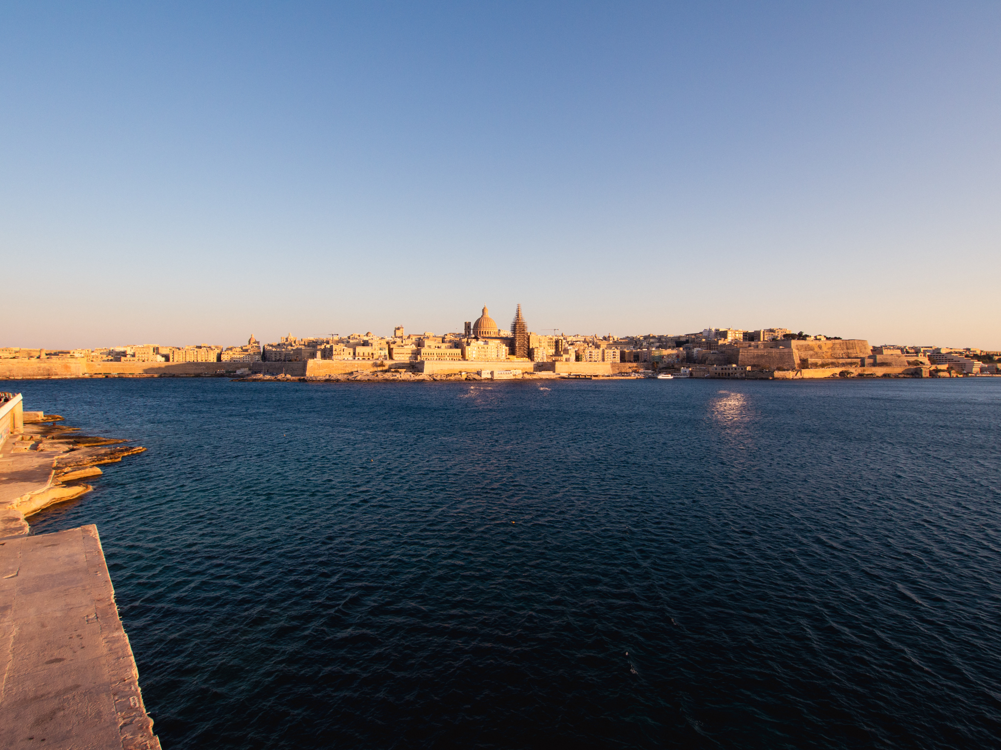 Alors que le soleil se couche de l’autre côté de la baie, cela reste quand même un bel endroit pour s’installer le soir. Étonnamment on est seul à descendre sur la jetée pour faire quelques photos pour admirer la magnifique capitale Maltaise depuis son angle le plus classique.