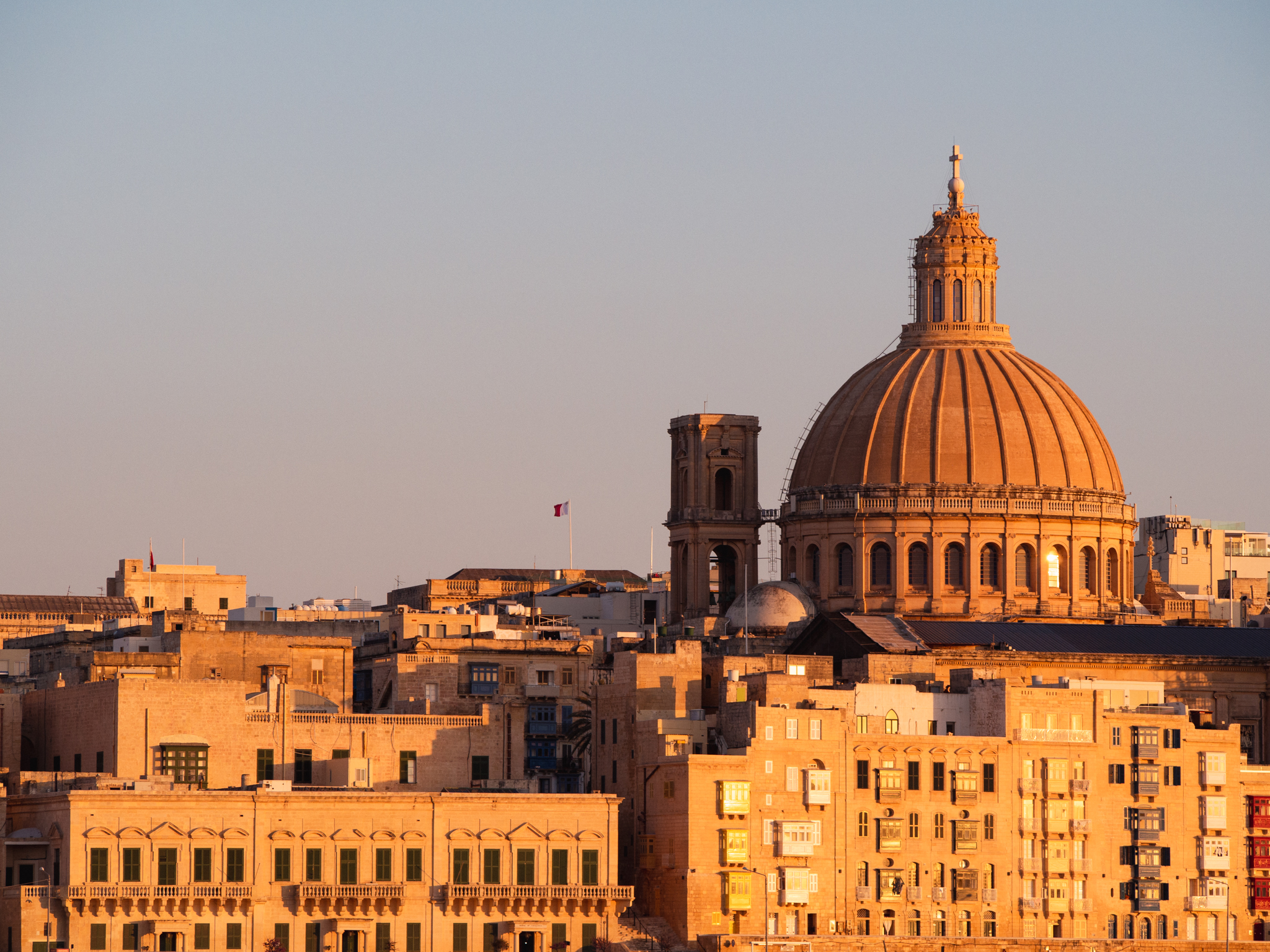 L’imposant dôme de la Basilique Notre-Dame-du-Mont-Carmel de La Valette domine l’horizon.