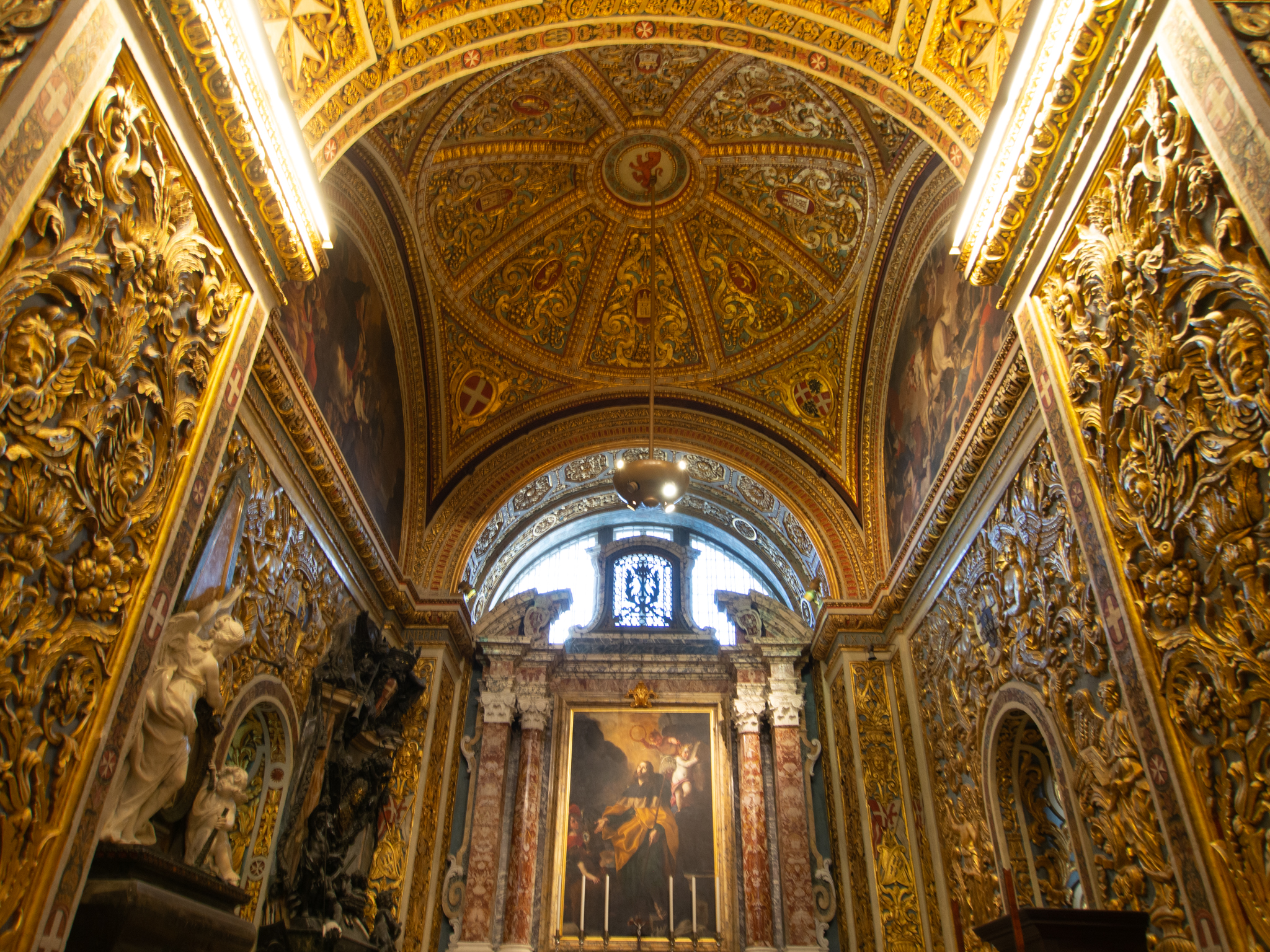 Sur les côtés de la cathédrale, on trouve 8 chapelles dédiées aux langages des membres de l’ordre des Chevaliers, dont les Français ou les Italiens, les Allemands, etc.