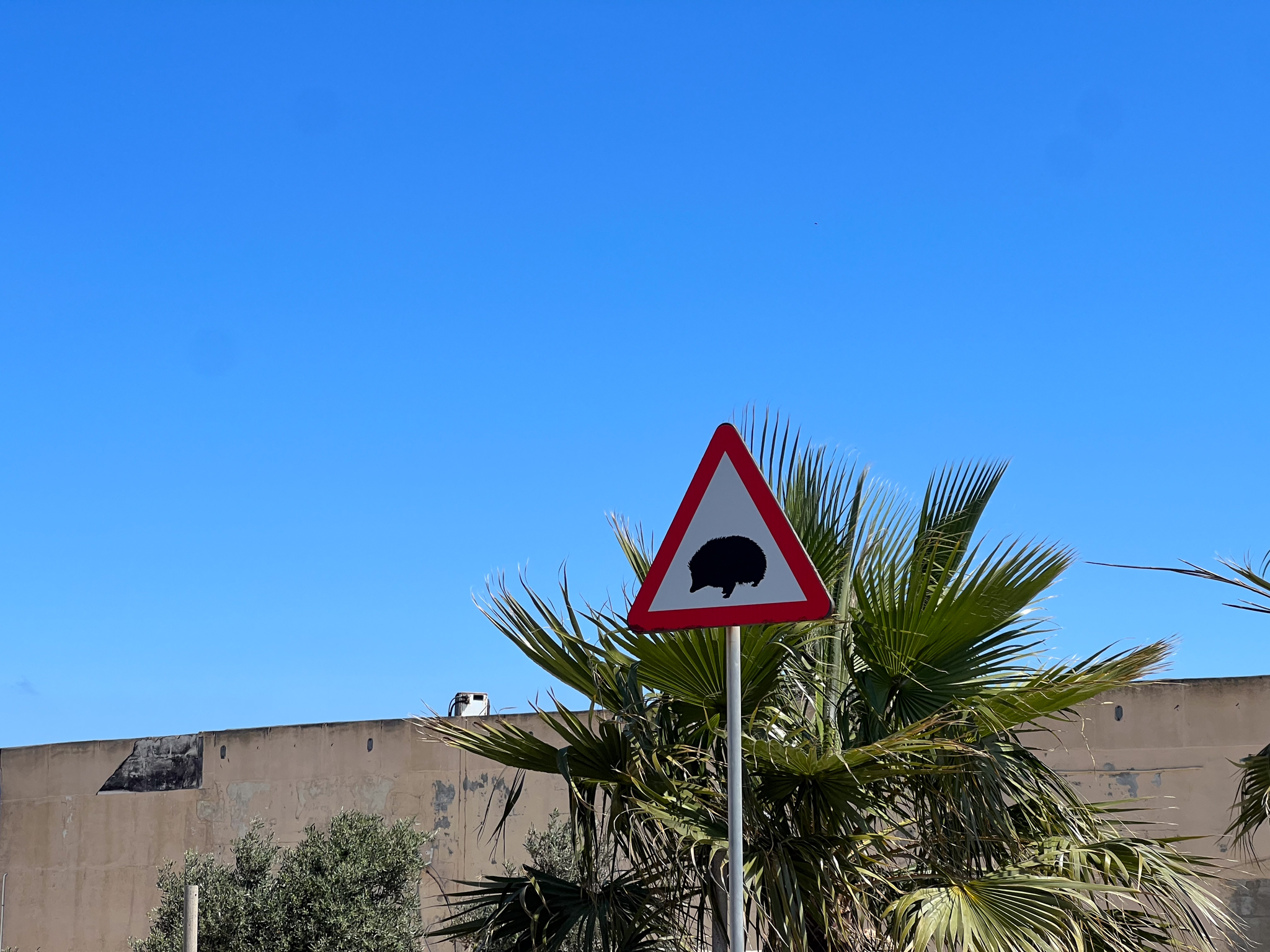 Amusant ici les panneaux d’avertissement de danger pour animaux sauvages sont différents de ce que l’on a l’habitude de voir par chez nous, ici attention aux chats et aux hérissons.