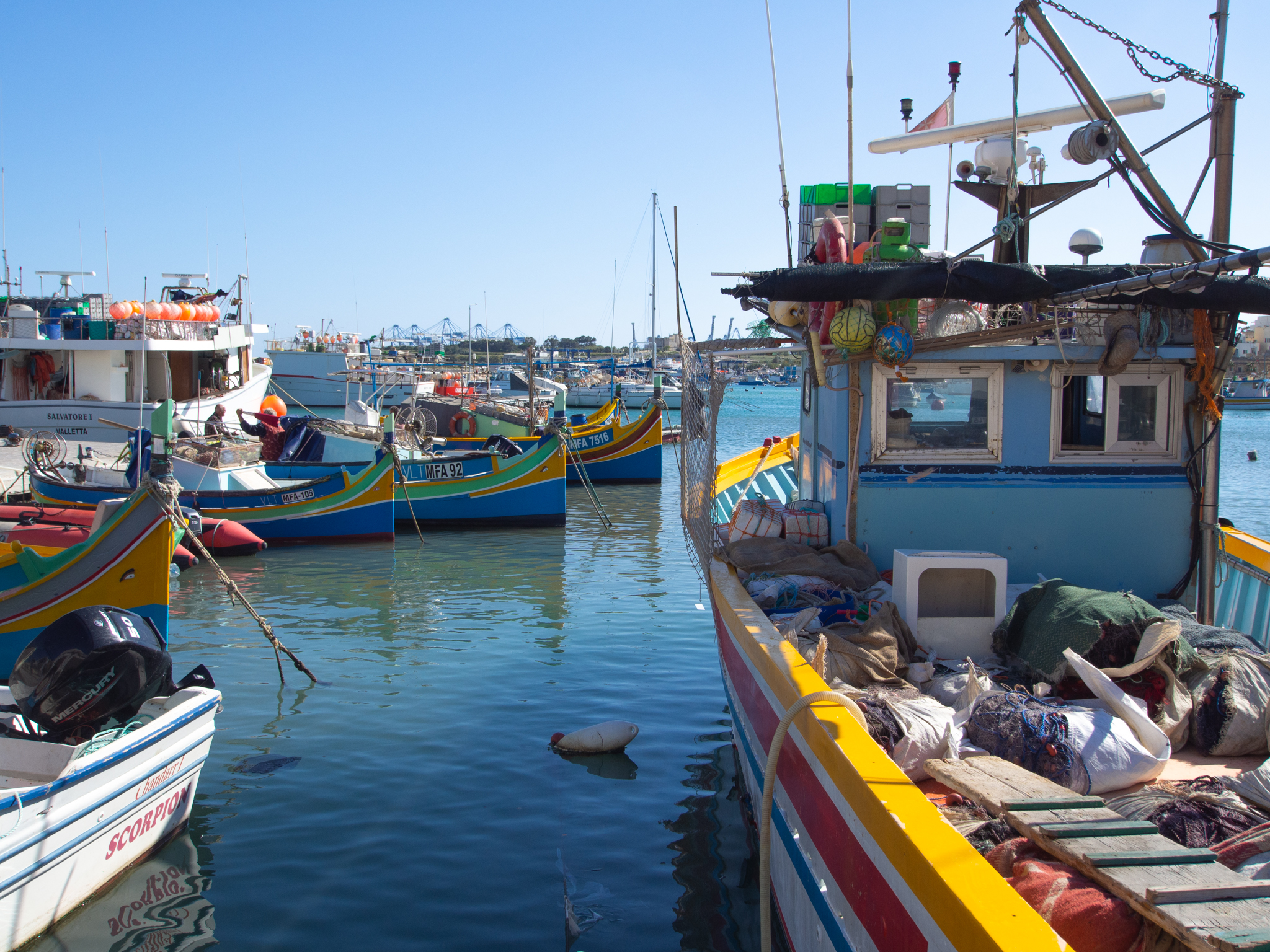 Le port est vivant, il y a énormément de bateaux. Ces bateaux typiques maltais s’appellent les Luzzu.