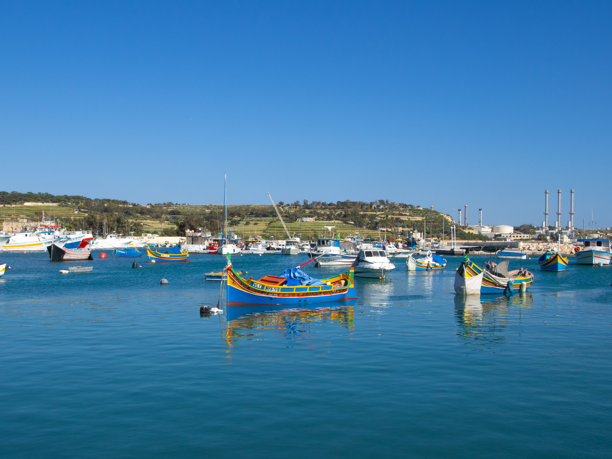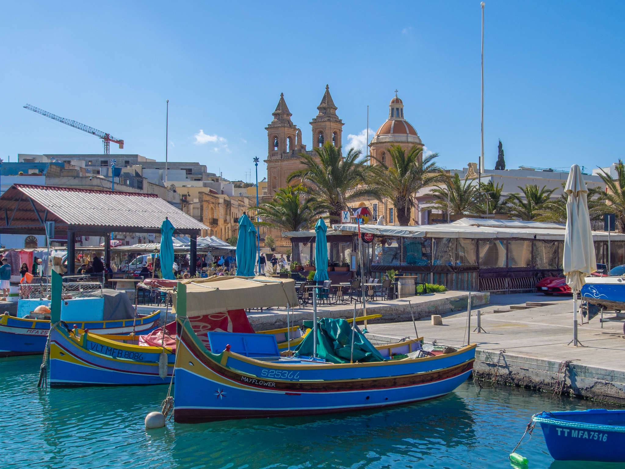 Les Luzzu de pêcheurs du village sont encore peints avec des couleurs traditionnelles, du bleu, du jaune et du rouge, un des symboles de Malte.
