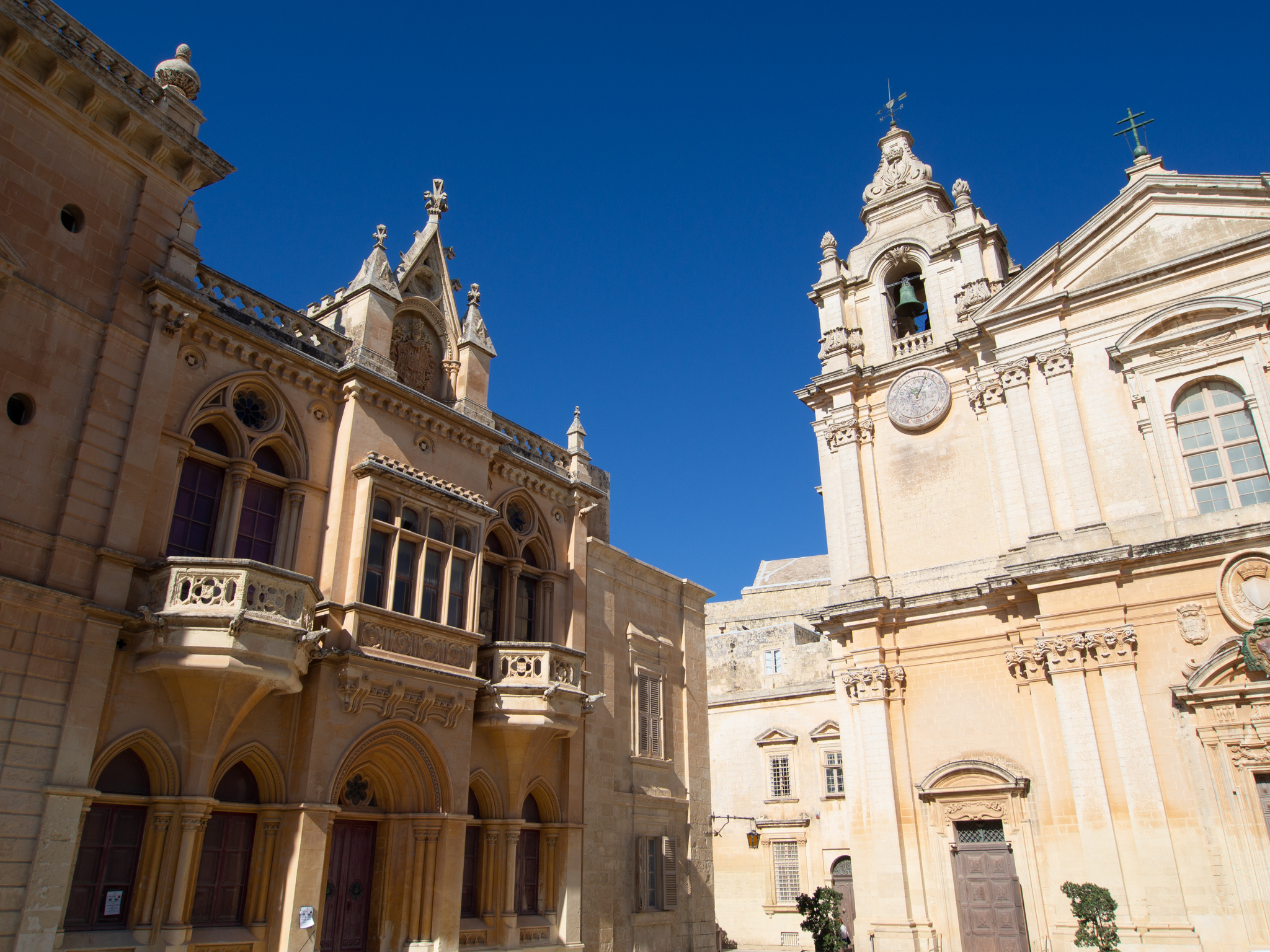 La plus grande d’entre toutes est la Cathédrale Saint-Pierre-et-Saint-Paul de Mdina. Elle partage le siège de l’archidiocèse de Malte avec la Co-cathédrale de Saint Jean à La Valette, d’où l’usage du « co ». Cette église aurait été construite à l’endroit même où le gouverneur de la province romaine de Malte aurait rencontré Saint Paul après son naufrage.