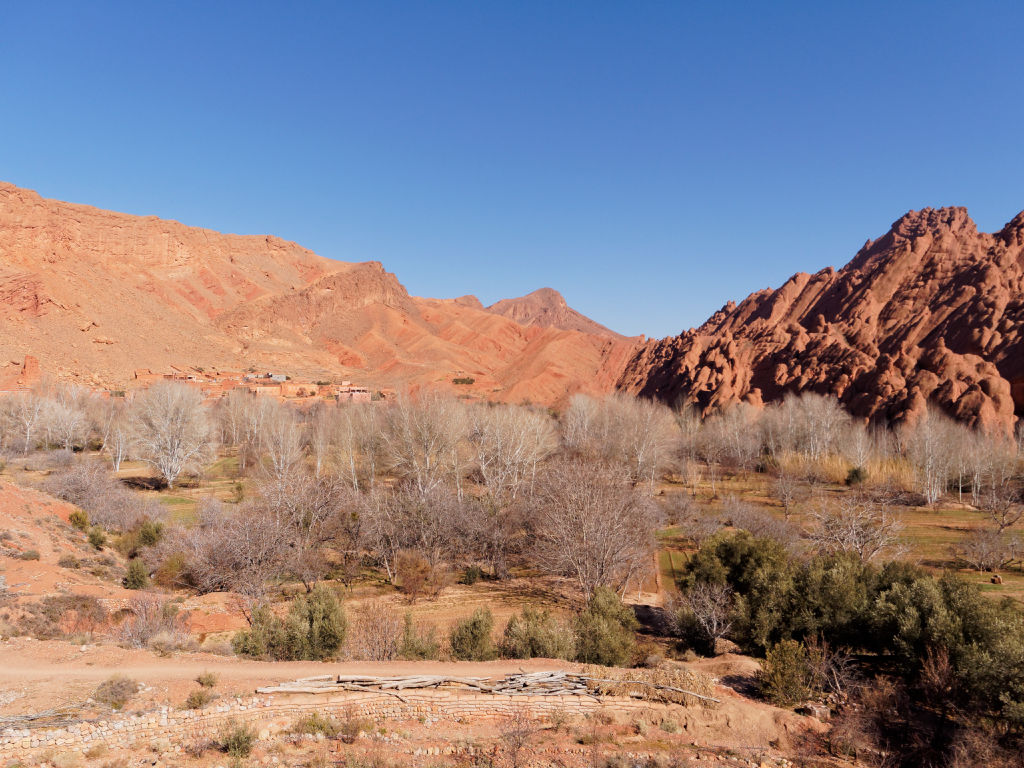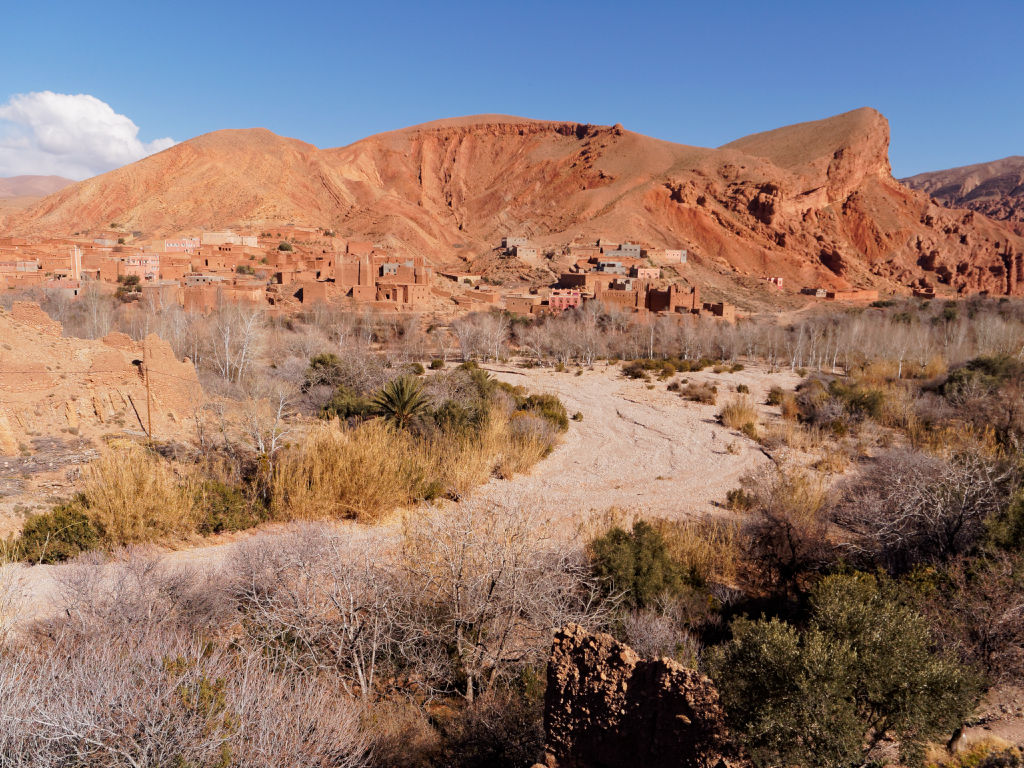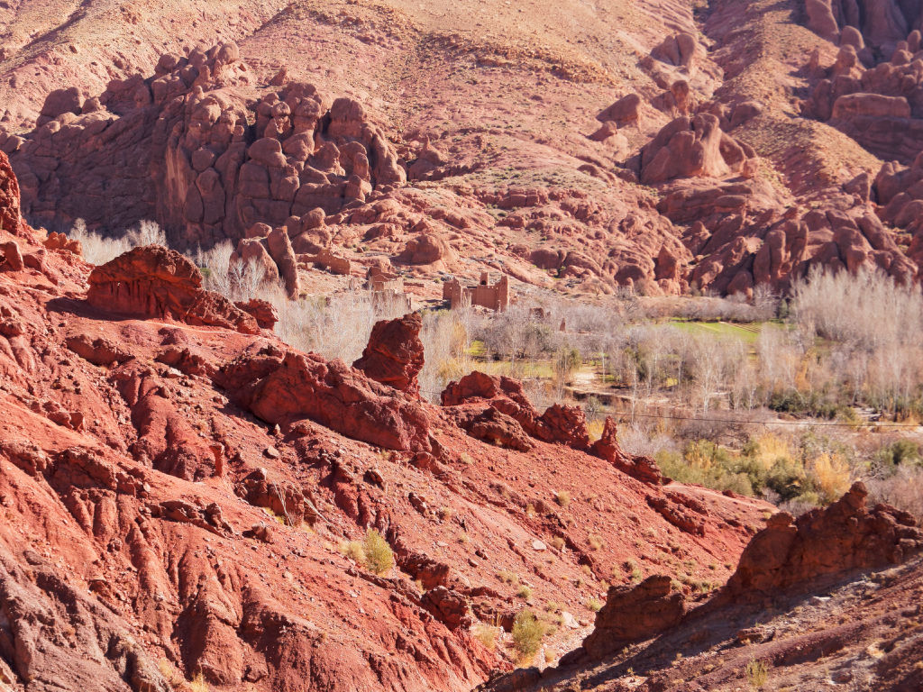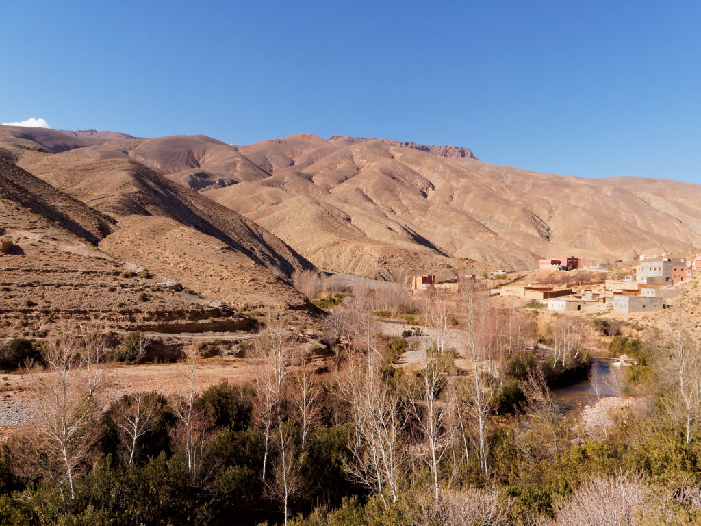 Les montagnes ressembleraient à ce qu’on imagine de l’Ouest américain, et les villages sont très jolis. Le Dades s’écoule en faisant de grandes courbes.