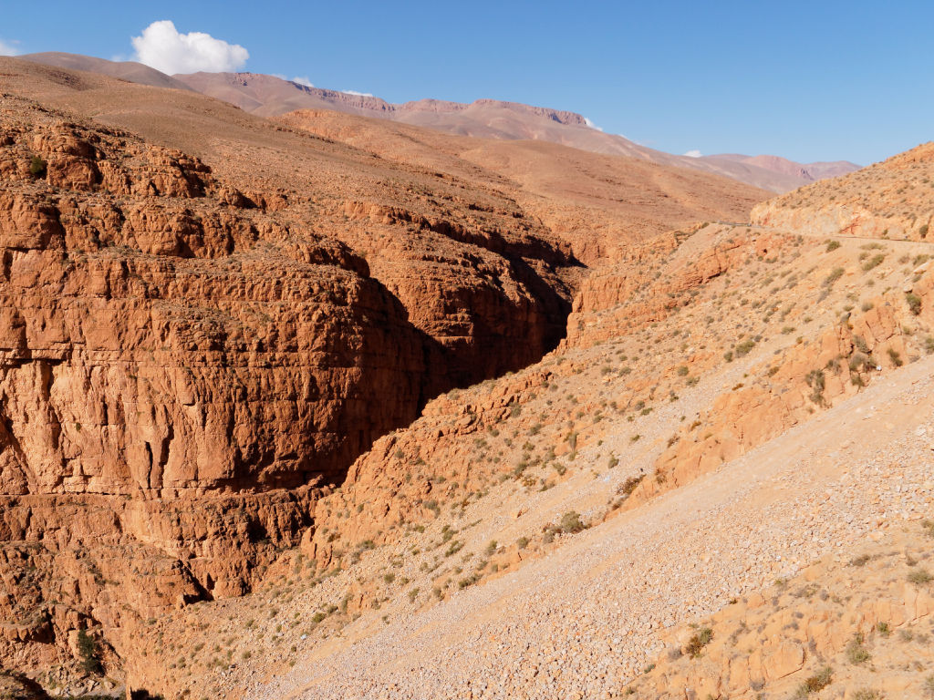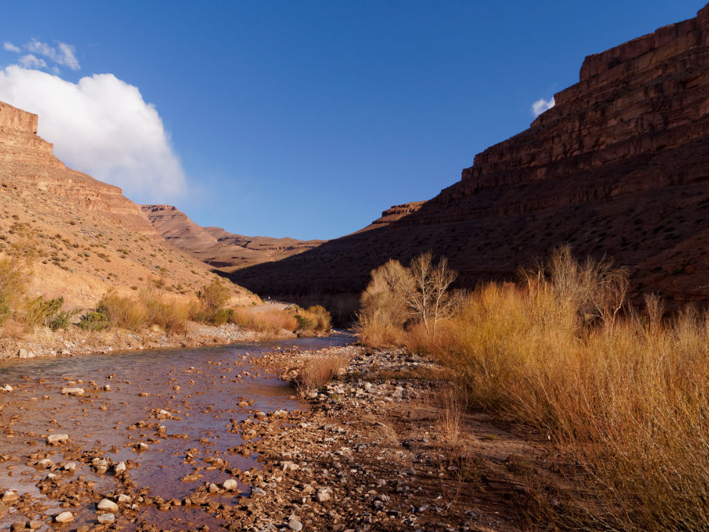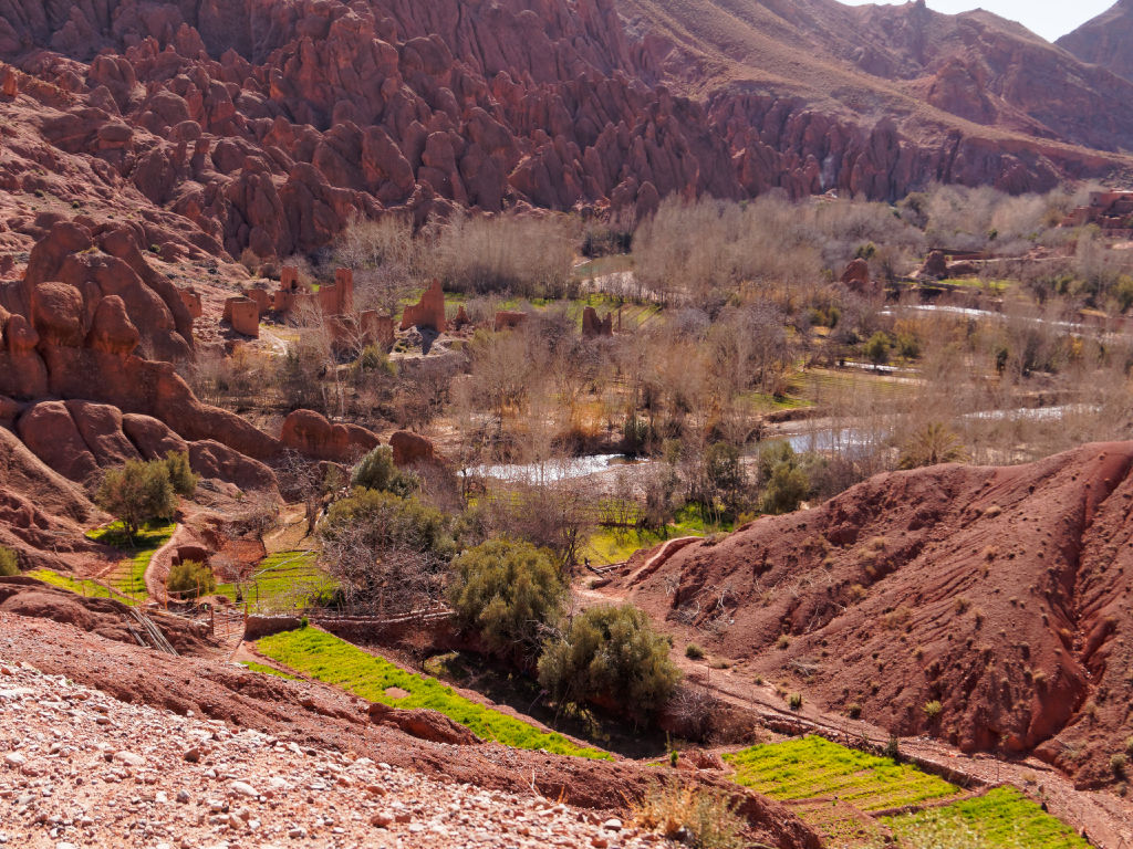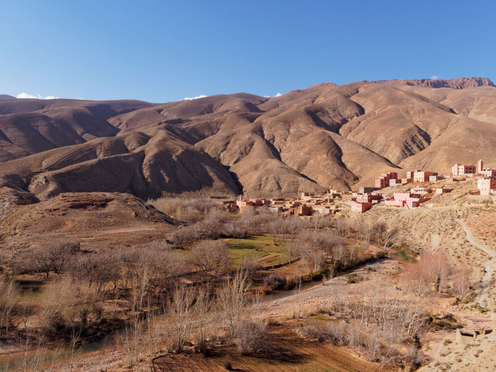 Les montagnes ressembleraient à ce qu’on imagine de l’Ouest américain, et les villages sont très jolis. Le Dades s’écoule en faisant de grandes courbes.
