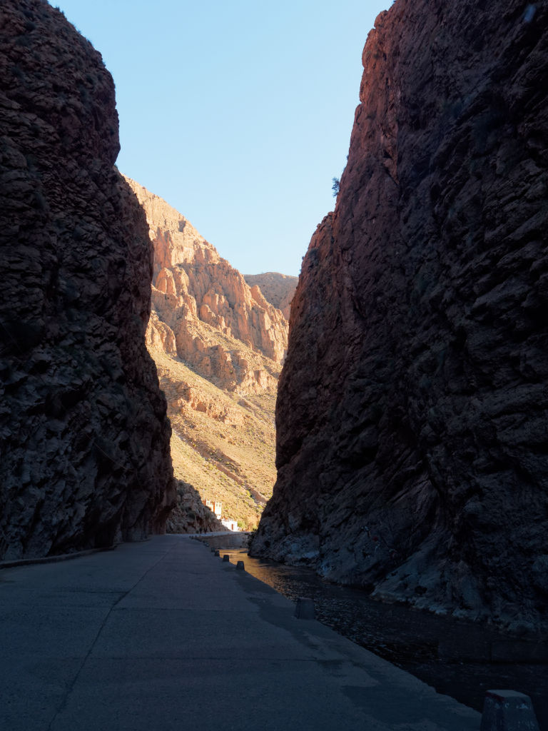 Ensuite les gorges se resserrent et on grimpe en lacets jusqu’à un belvédère pour la photo classique de cette route touristique du Maroc.