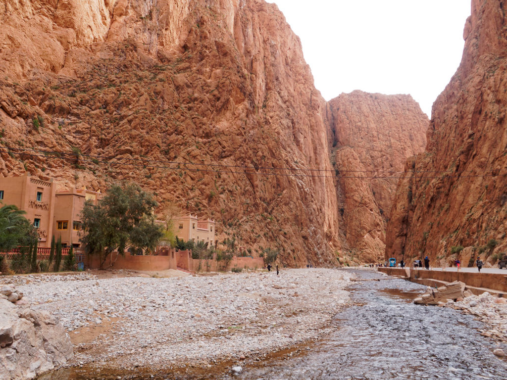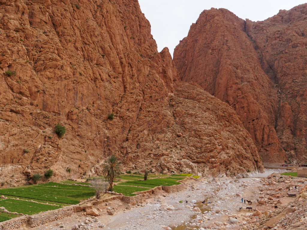 L’Oued a ici creusé profondément dans la roche pour se frayer un chemin tout en courbe, au point le plus profond, il y a 300m de falaise que les passionnés d’escalade ont trouvé comme terrain de jeu exigeant (un villageois m'a dit qu'un français a ouvert au village devant les gorges un magasin de matériel d'escalade).