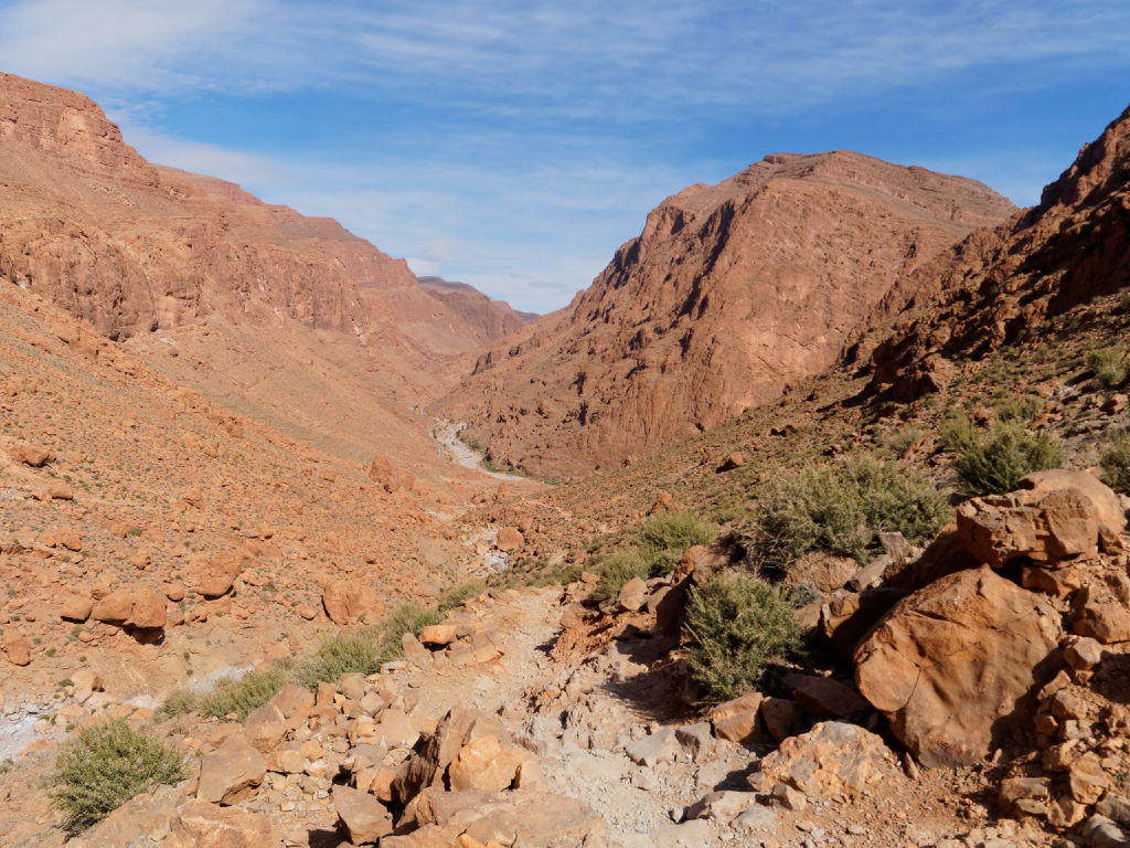 J’ai emporté avec moi une vieille édition du Lonely Planet Maroc, et dedans il y a une suggestion de balade autour de la gorge. Je me gare après la gorge principale en face de la zone où se trouvent les grimpeurs.