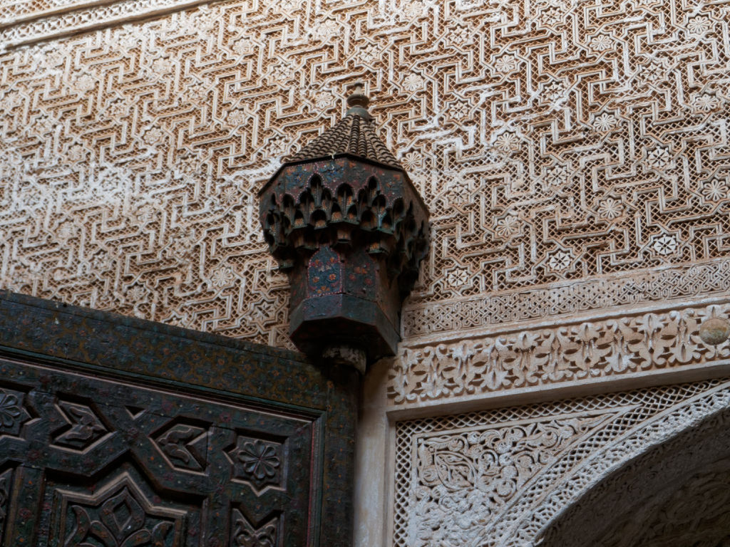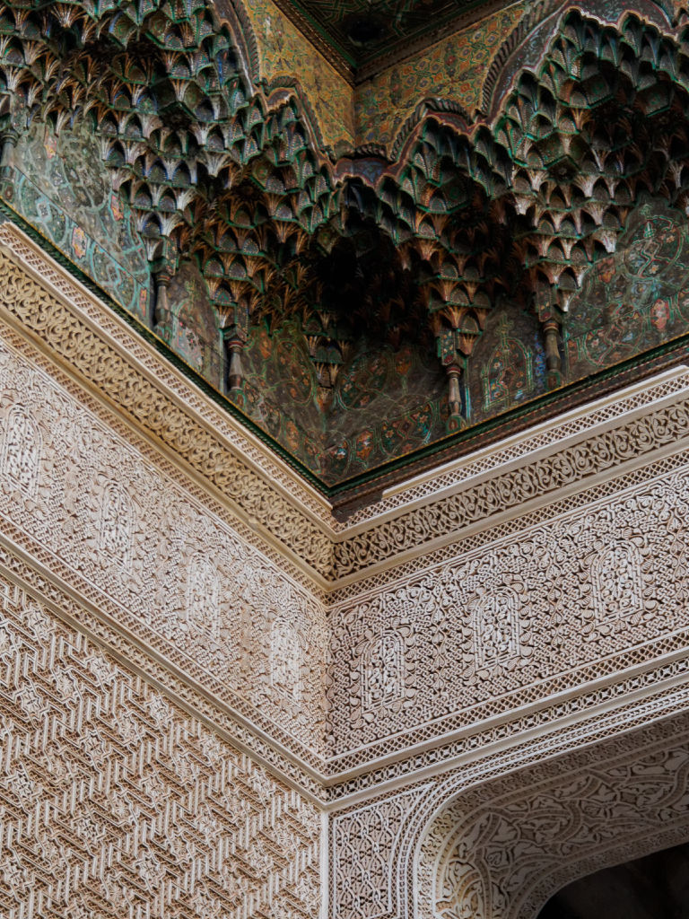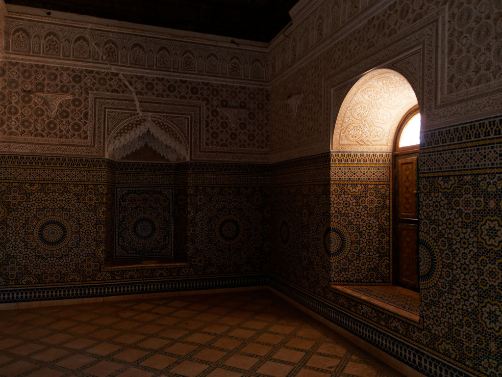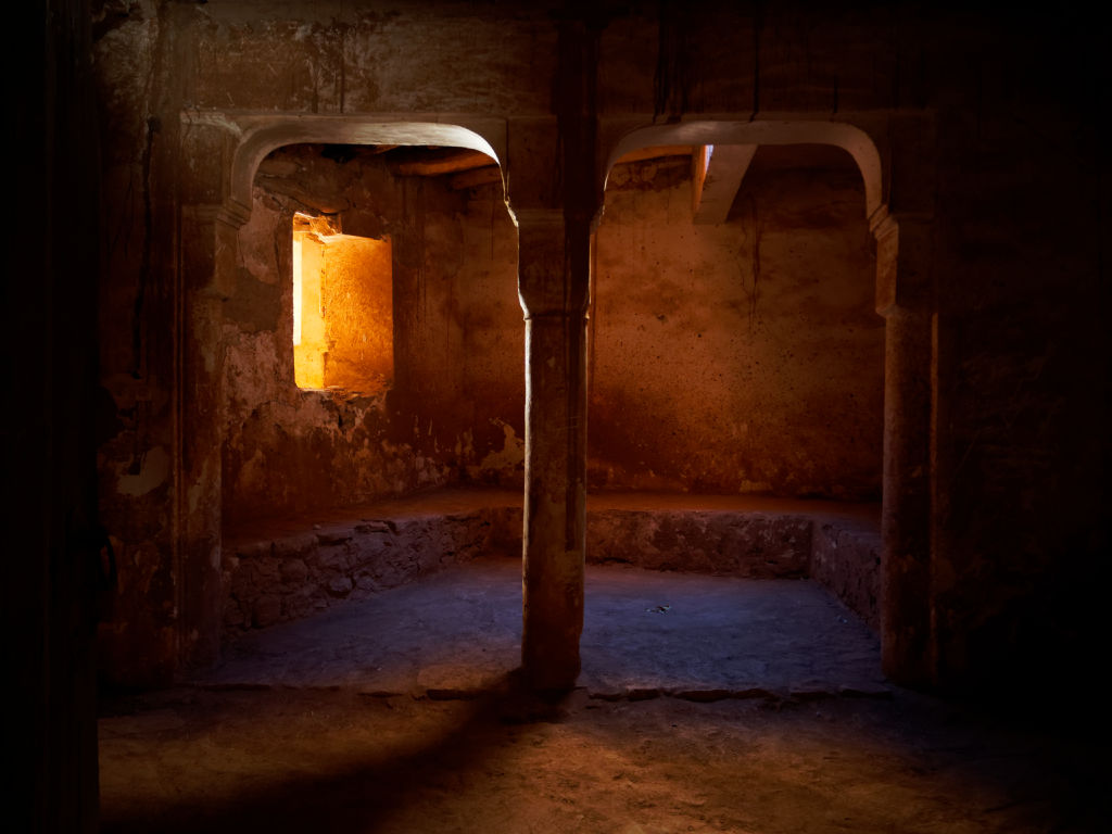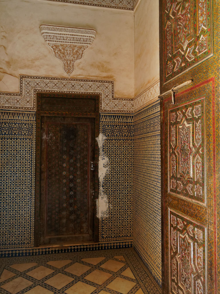 Pourtant, une fois à l’intérieur à l’étage, derrière les premiers couloirs obscurs en pisé, on tombe sur une partie restaurée et c’est vraiment impressionnant, tant de finesse dans la décoration !