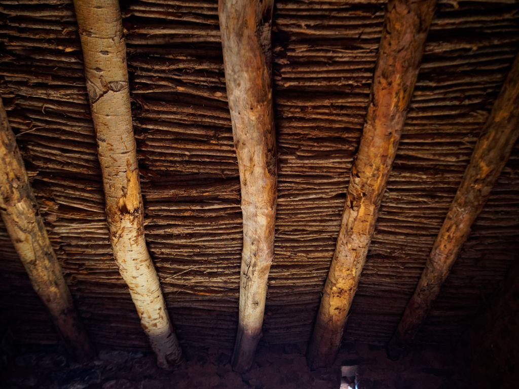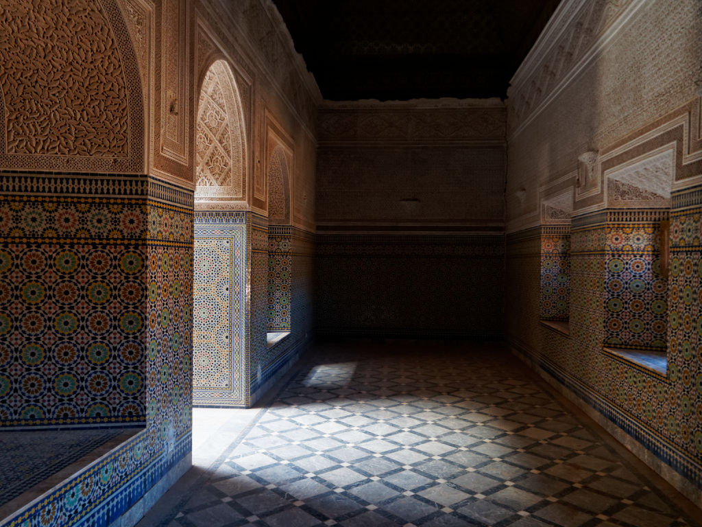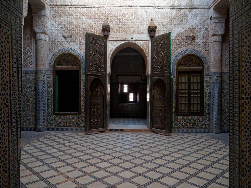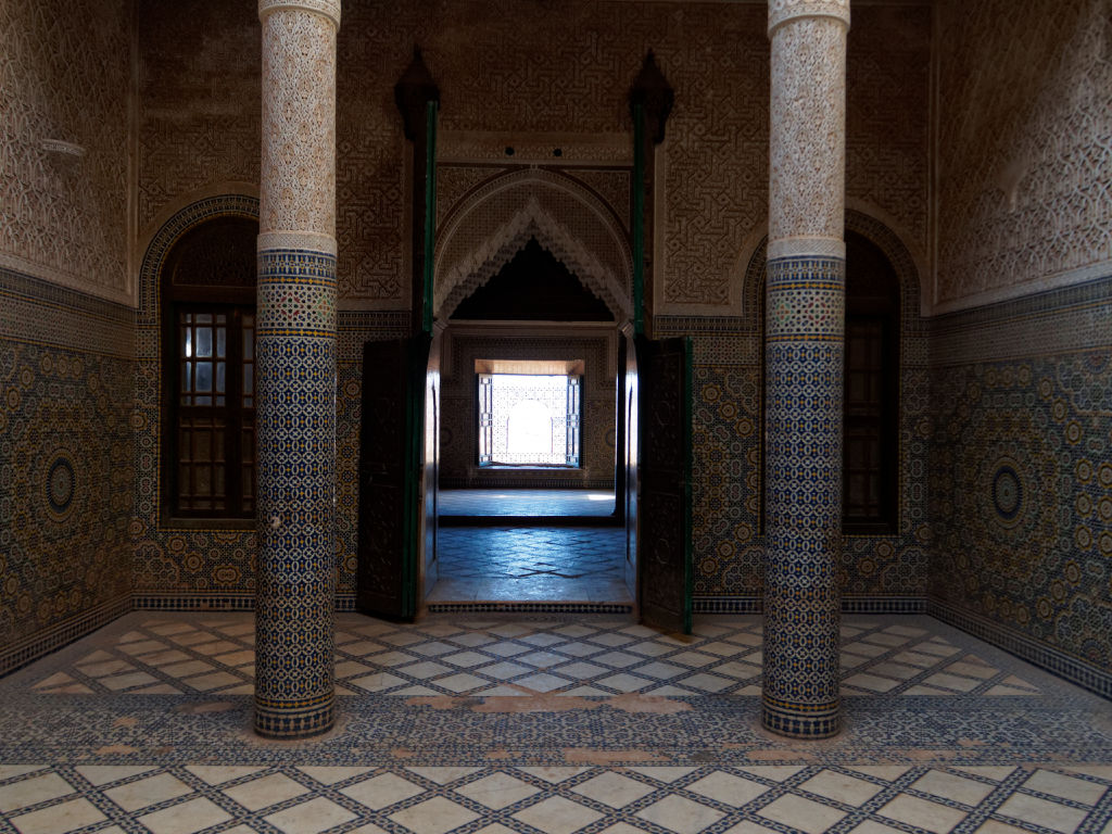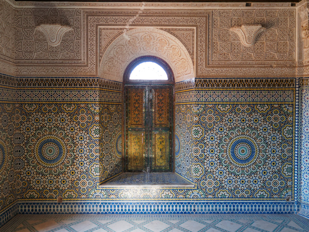 Pourtant, une fois à l’intérieur à l’étage, derrière les premiers couloirs obscurs en pisé, on tombe sur une partie restaurée et c’est vraiment impressionnant, tant de finesse dans la décoration !