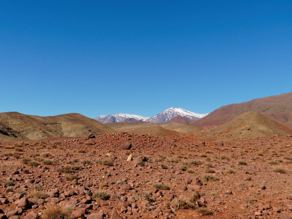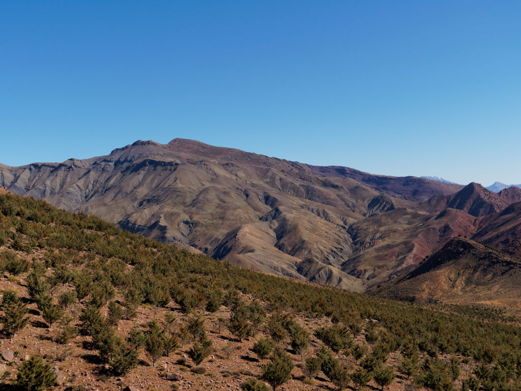 Vue sur les sommets de l'Atlas, on est déjà à 2000 mètres.