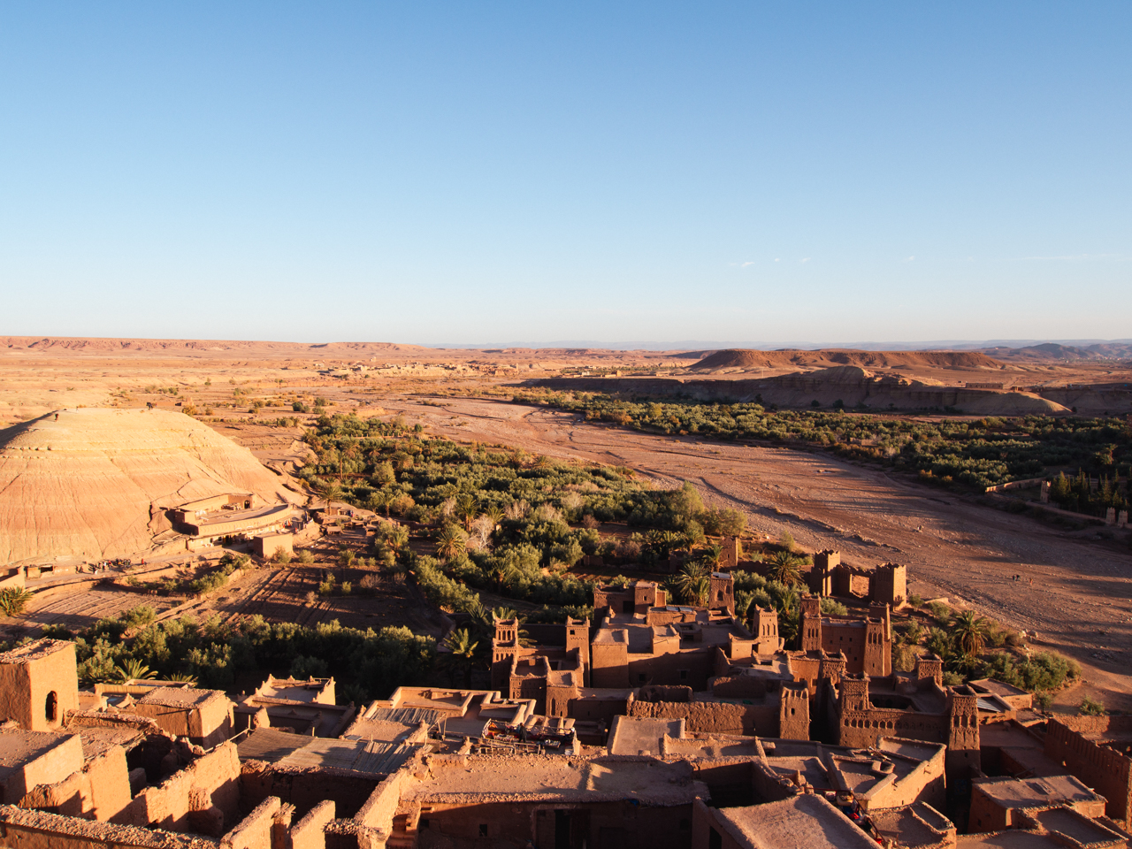 Depuis Foum Zguid, nous remontons la route de Ouarzazate jusqu’à la plus belle kasbah du pays, celle d’Ait Benhaddou. Un édifice architectural unique et monumental, installé au bord d’une rivière qui fait partie des lieux touristiques les plus visités du Sud du pays.